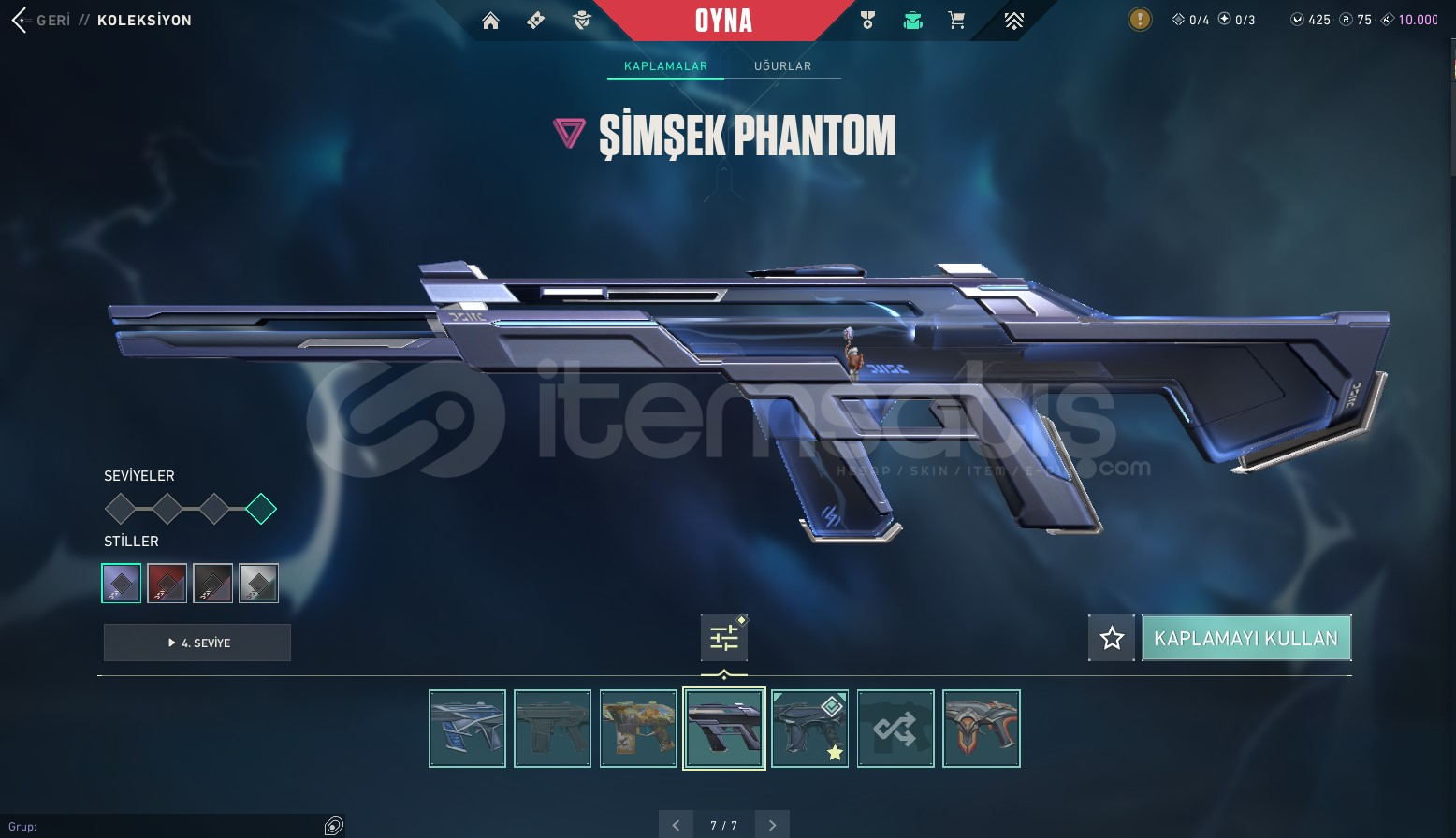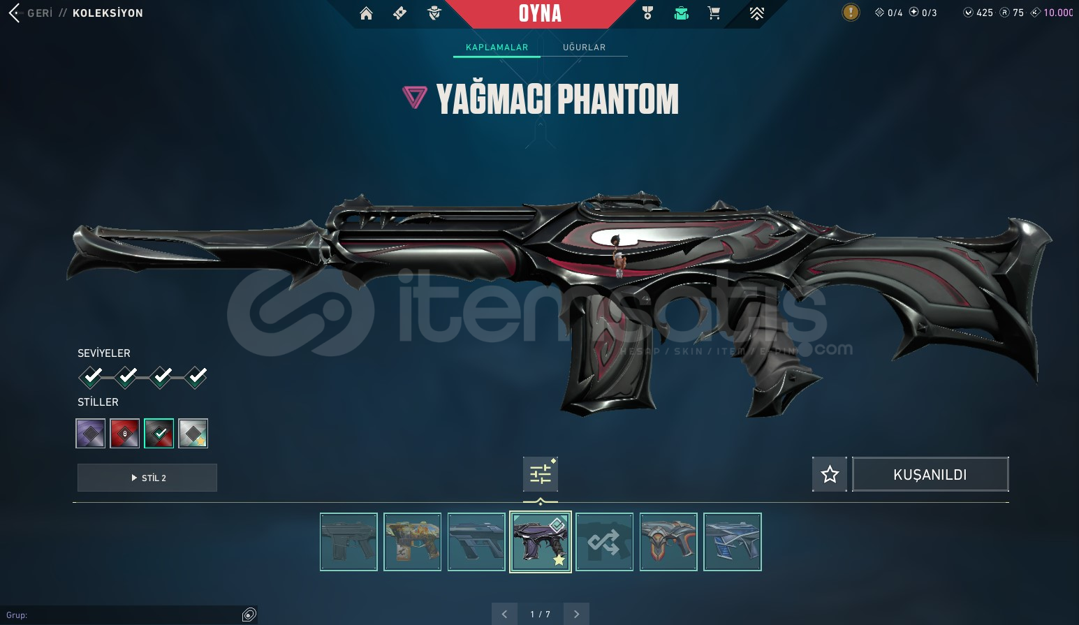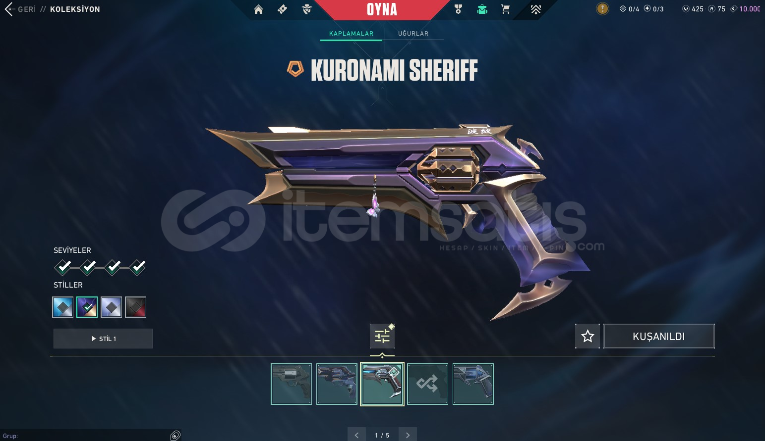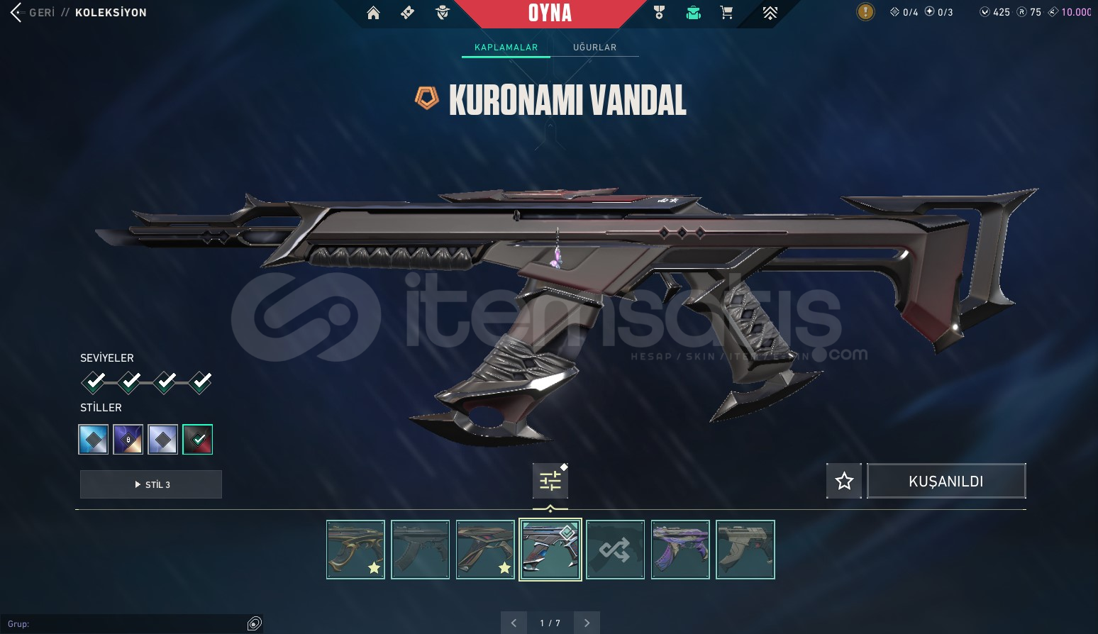 • Kuronami Vandal + Ulupençe Vandal + Cesur Yürek Vandal + Yağmacı Phantom + Şimşek Phantom + Yağmacı Op + Kuronami Sheriff + Kuronami no Yaiba / toplam 49 skin.