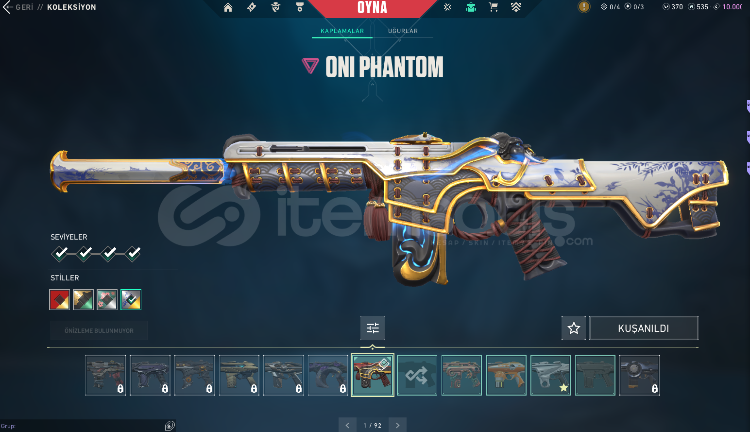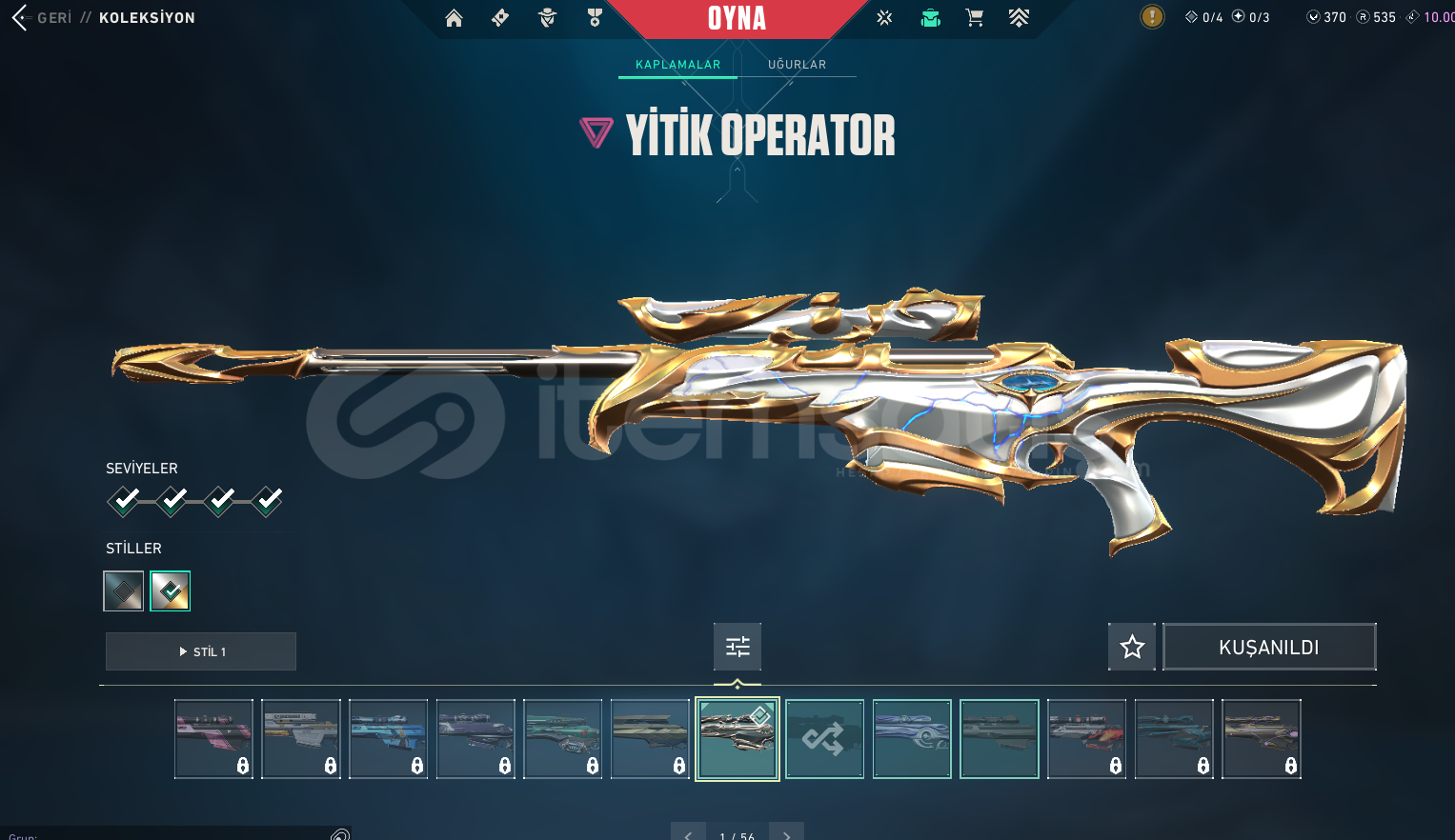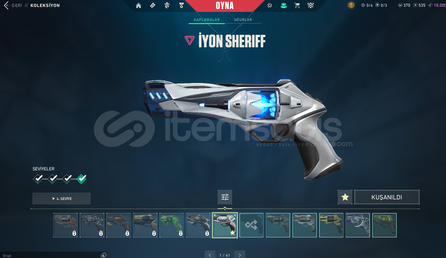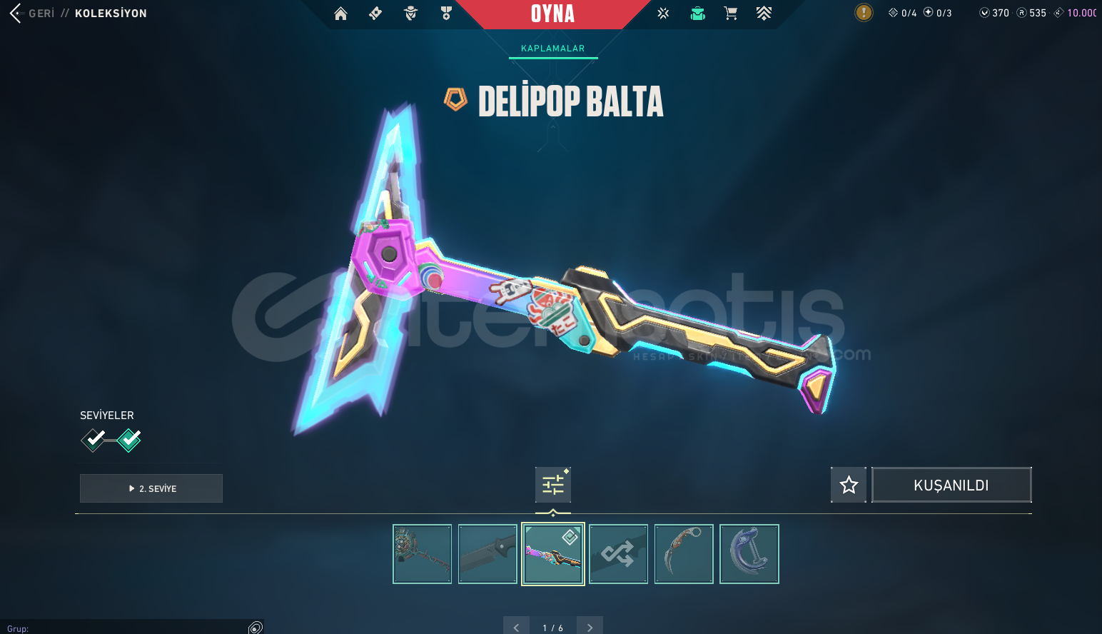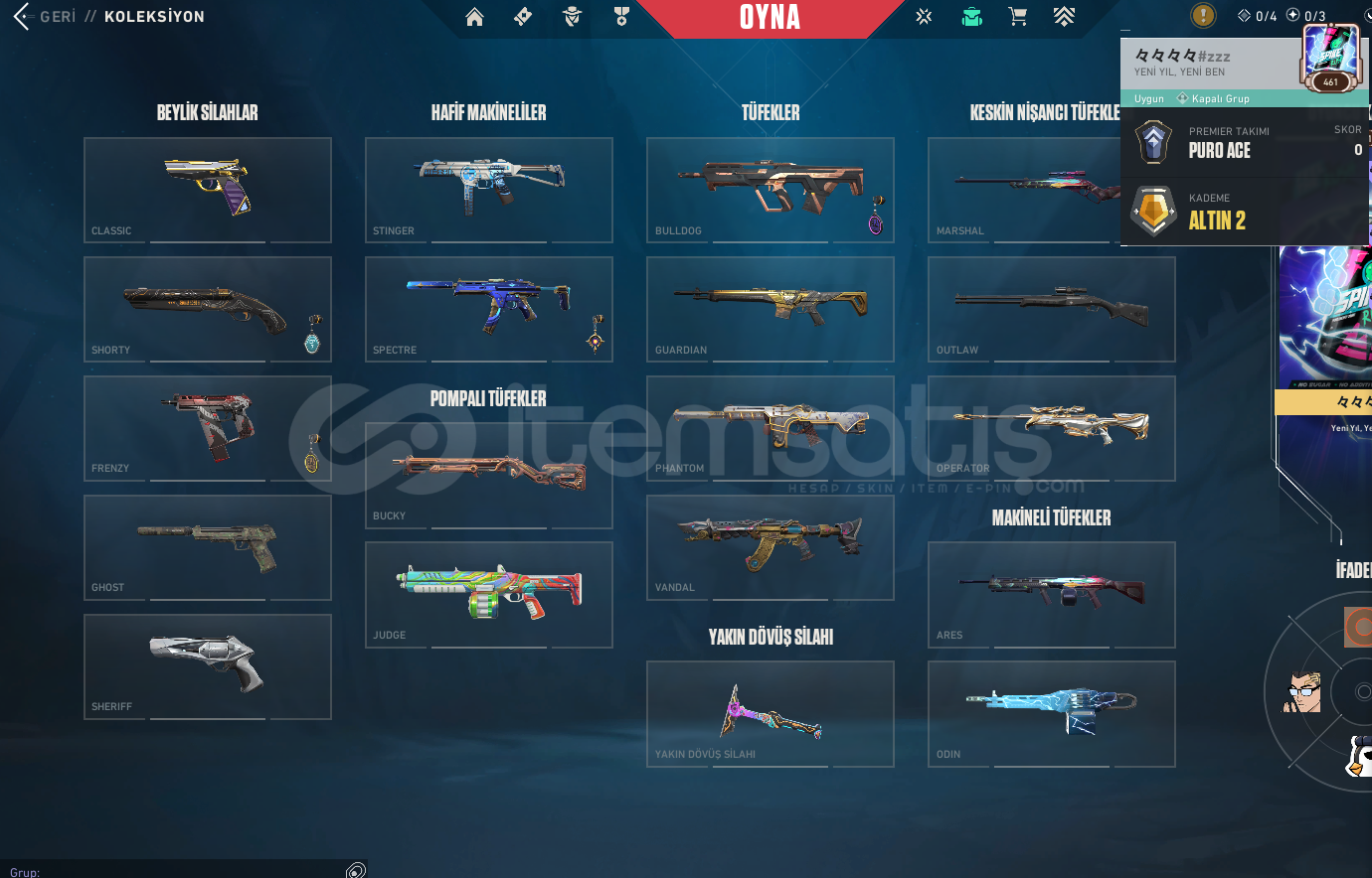 #Fırsat HesabıHesap Hakkında Bilgi;Mail Teslim |Arcane Vandal + Kuronami Vandal + Gaia Vandal + İyon Vandal + Köken Vandal + Yıldız Belası Vandal + Yağmacı Vandal + Asil Vandal + Oni Phantom + İyon Phantom + Yitik Op + Asil Classic + İyon Sheriff + Seri Tetik Sheriff + RGX Sheriff + Özel Harekat Ghost + Delipop Balta olmak üzere toplamda 81 Skin var.Hesap Altın 2Hesap 461 LevelHesapta 535 Radiant Puan&...