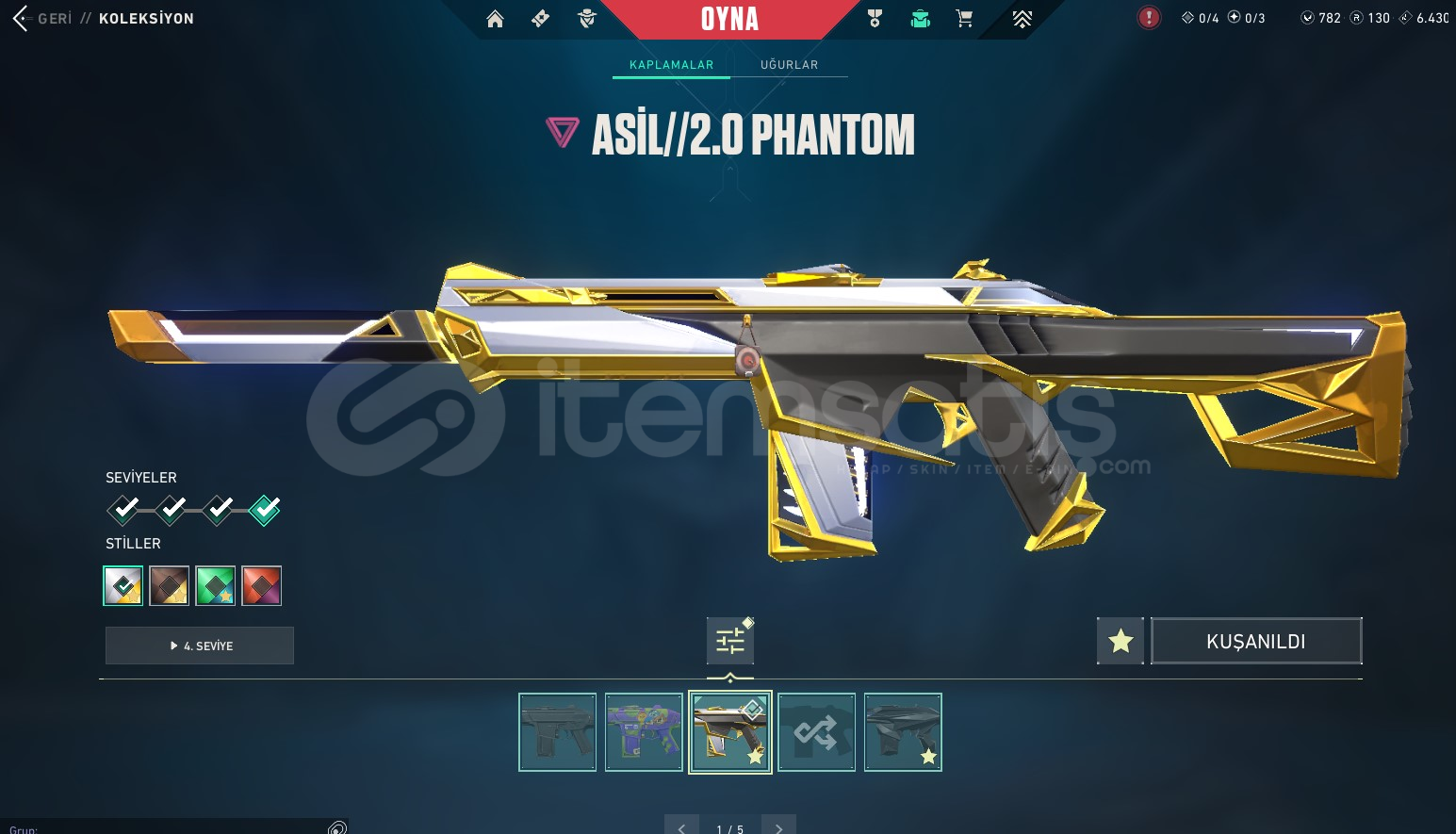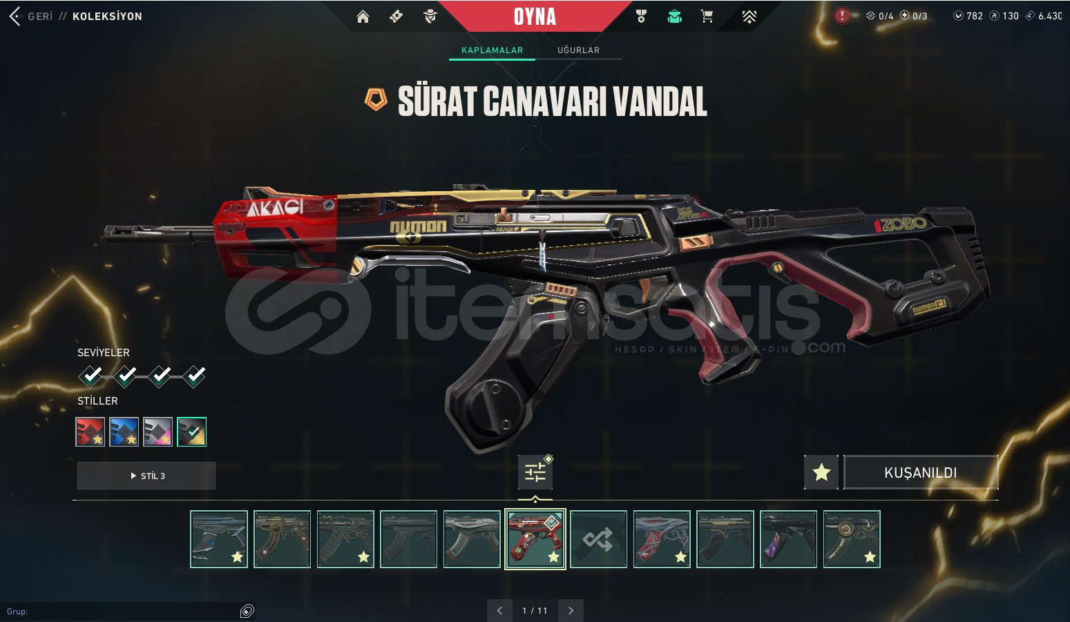 • Kuronami Set + Sürat Vandal + Gaia Vandal + Köken Vandal + Sihirpunk Vandal + Asil 2.0 Phantom + Anomali Phantom + Kaos OP + Afet Ghost + Özel Harekat Kelebek + Yağmacı Bıçak / toplamda 67 Skin var