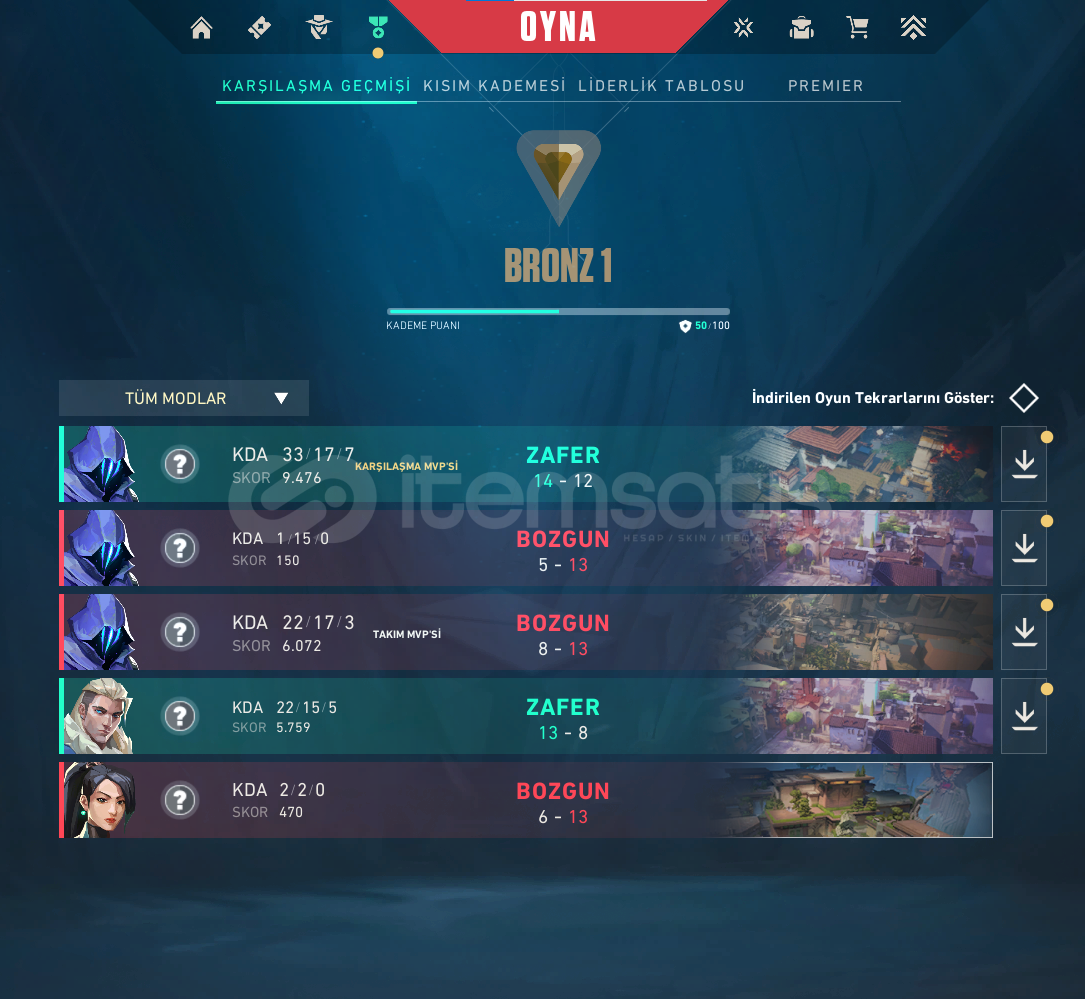 ⭐MAİLLİ⭐ BRONZ 1 HESAP %100 TR
