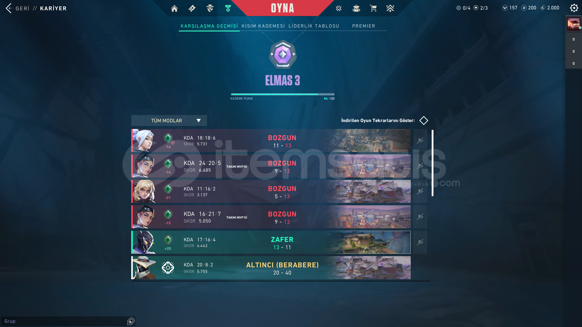 ÖNCELİKLE SELAMIN ALEYKÜM ARKADAŞLAR HESAP EFSANEDİR HARBOR HARİÇ TÜM KARAKTERLER AÇIKTIR ŞUANKİ RANKI ELMAS 3 TÜR 4 5 KERE YÜCELİK GÖRMÜŞTÜR HESAPTA AYRİYETEN 157 VP VE 200 RP VARDIR İÇERİSİNDEKİLER FOTOĞRAFLARDA YER ALIYOR AMA BEN YİNEDE SÖYLEYEYİM VCT 2025 KARAMBİT KAOS VANDAL EJDERİN BUYRUĞU VANDAL FATİH PHANTOM YİTİK ...