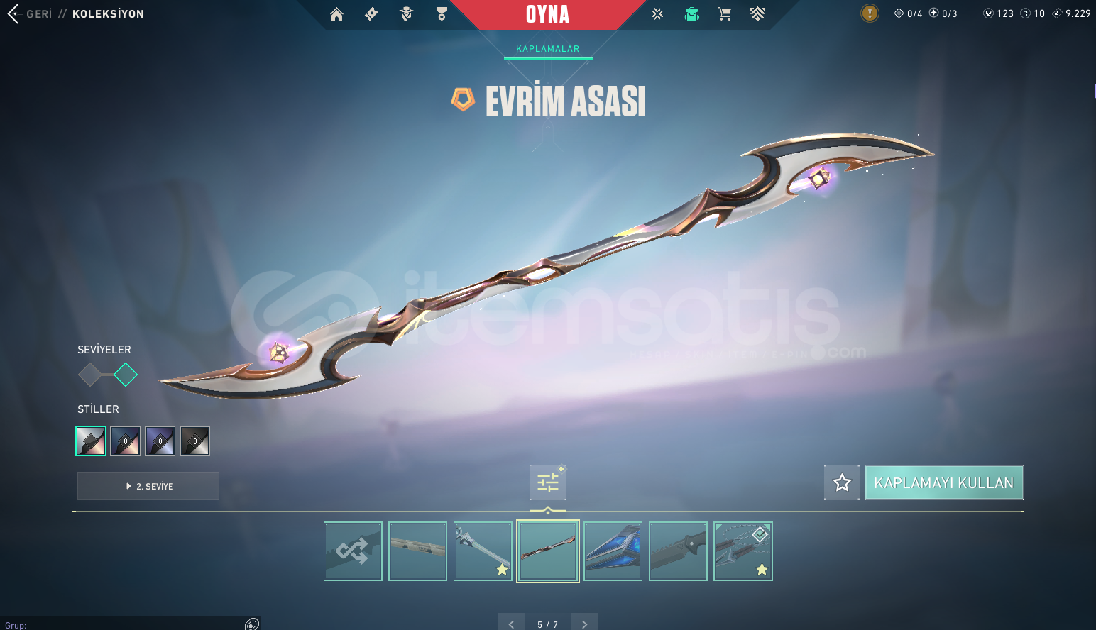 • Evrim Seti + EX.O Vandal + Işık Muhafızı Vandal + Yitik Vandal + Oni Phantom + Sırçiçeği Sheriff + Anomali Sheriff + Evori Rüyakanatları Ghost + Cyrax Guardian + Evorinin Büyülü Asası + Kuronami no Yaiba