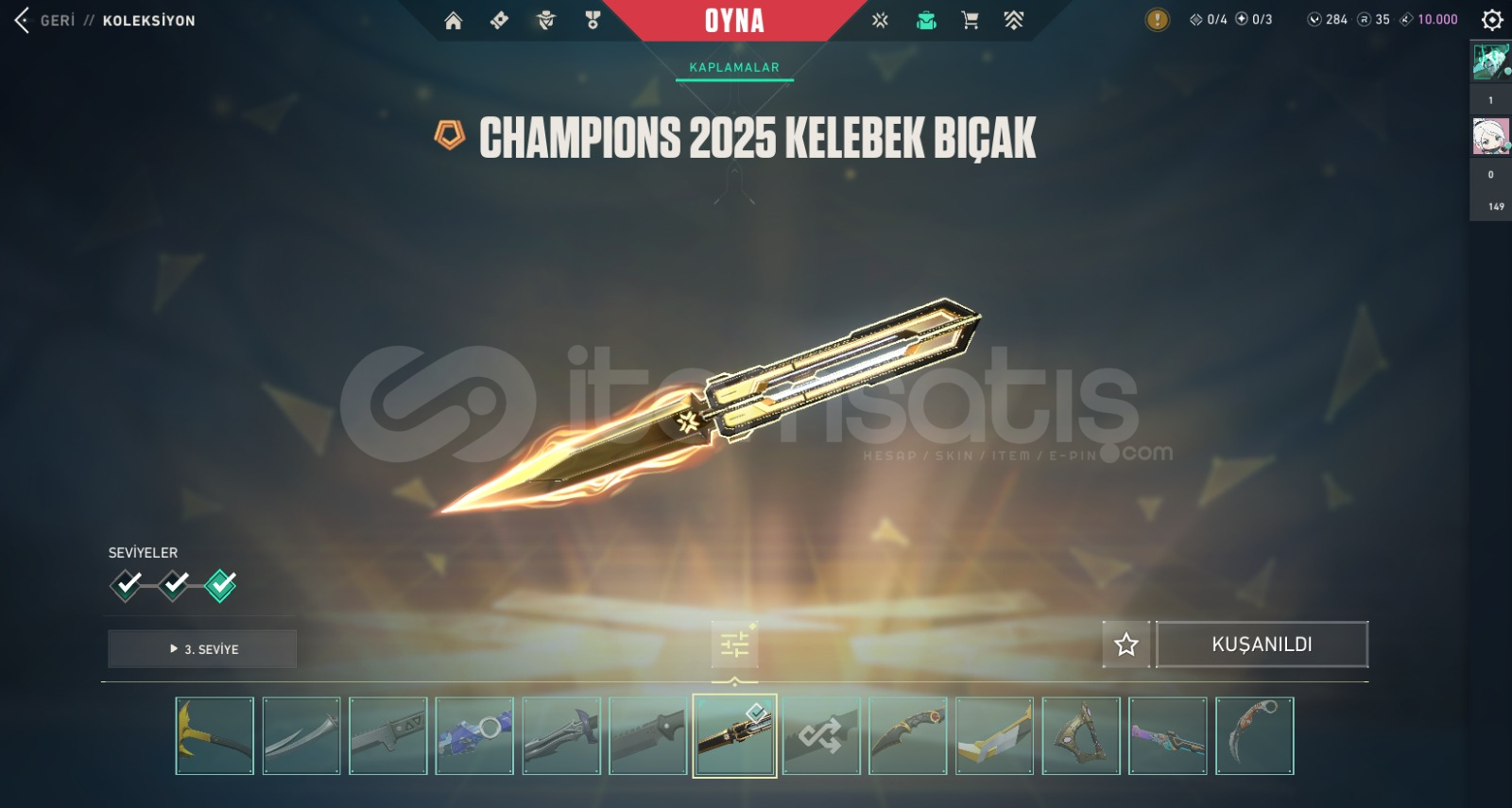 Champions 2025 Kelebek, Asil 2.0 Karambit, Delipop Balta, İyon Karambit, Köken Hilal Bıçak, Özel Harekat Kelebek, Valorant GO! 1. Bıçak, Yağmacı Bıçak + BP'ler