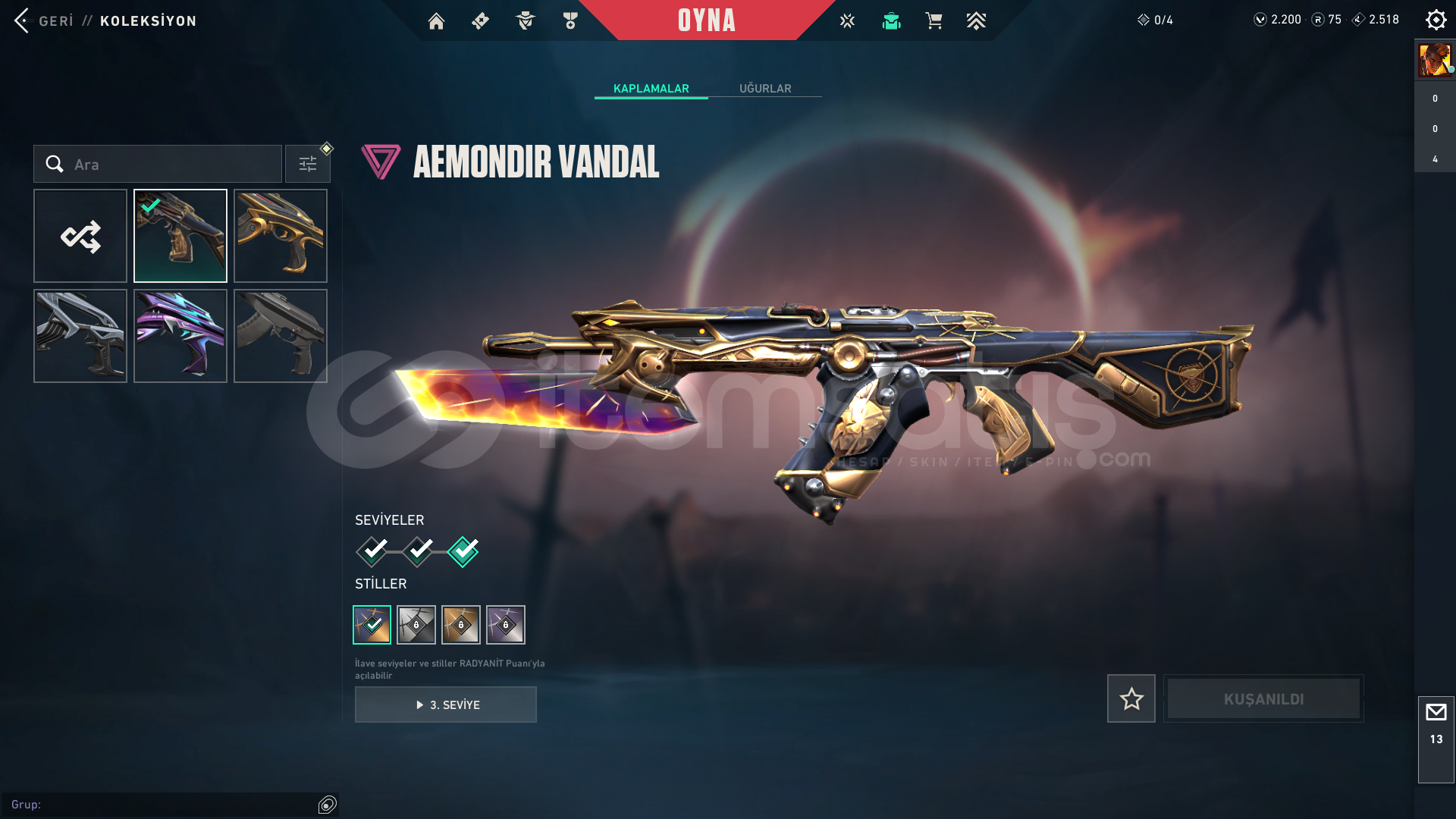 hesap 50 lvldir 2200 VP 75 radyanit vardır.