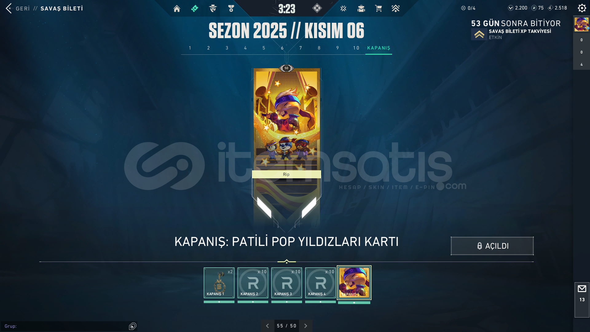 eski maini sattığım gibi bu hesabımı da satıyorum.SKİNLEROPERATOR YAĞMACIGHOST GAIA'NIN İNTİKAMIVANDAL CESUR YÜREK, AEMONDIR, CYRAXhesap 50 lvldir 2200 VP 75 radyanit vardır.bu sezonun savaş bileti alınıp fullenmiştir.ilk mail vardır her şeyim ona bağlı olduğu için hesap kendi mailinizin üzerine yapılacaktır.nick değiştirme 17.11.205 tarihinde yapılabilece...