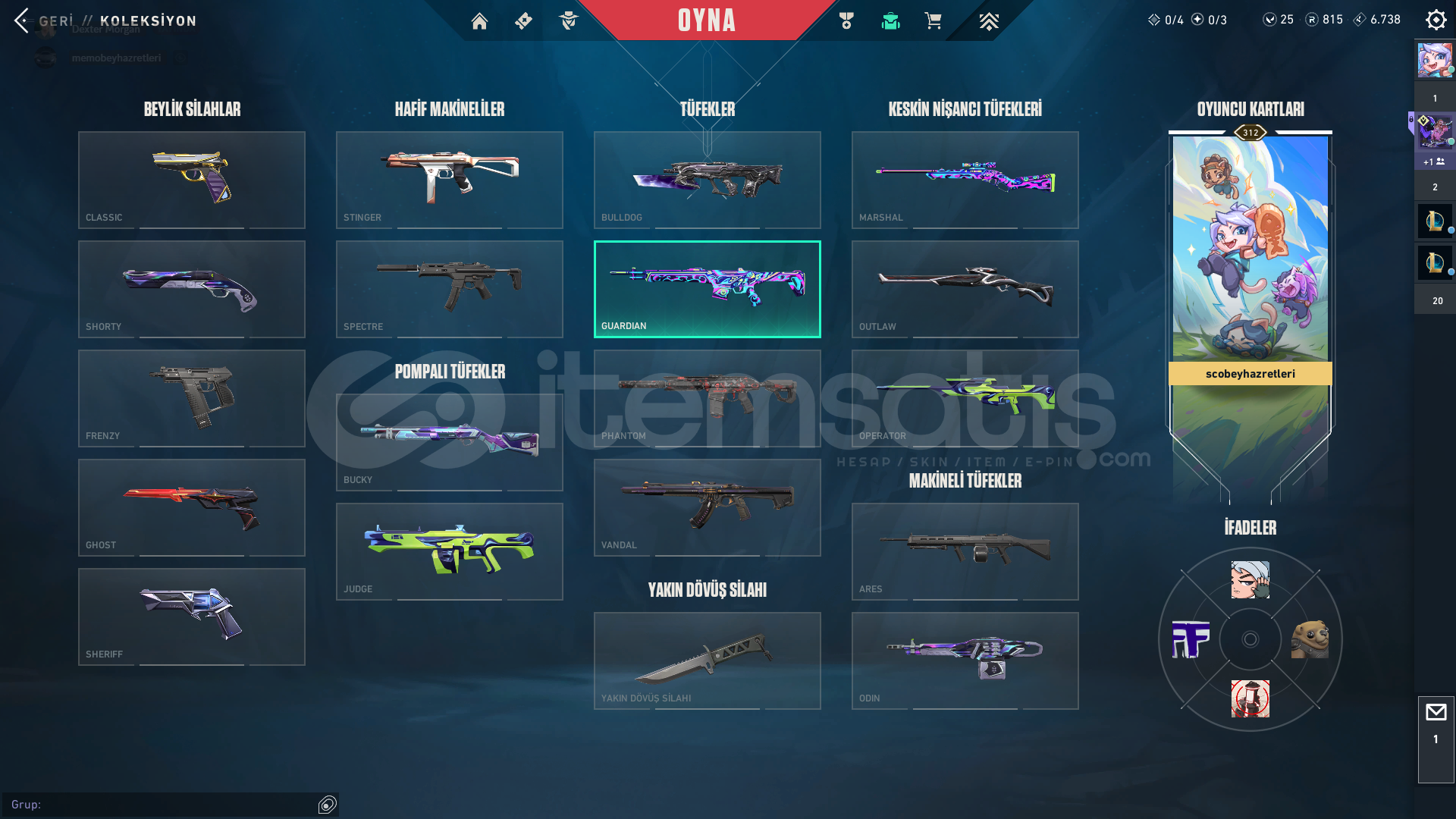 --- 312 SEVİYE ------ YÜCELİK 1 --------SKİNLER------Kaosun Başlangıcı Vandal-Uzaylı Avcısı Bıçağı-Aemondır Bulldog-Asil Classic-Özel Harekat Phantom-2 Tane Full BattlePass-----------------------------25 VP-815 RP-6738 KPHesap İsmini 27.12.2025 tarihinde değiştirebilirsin.