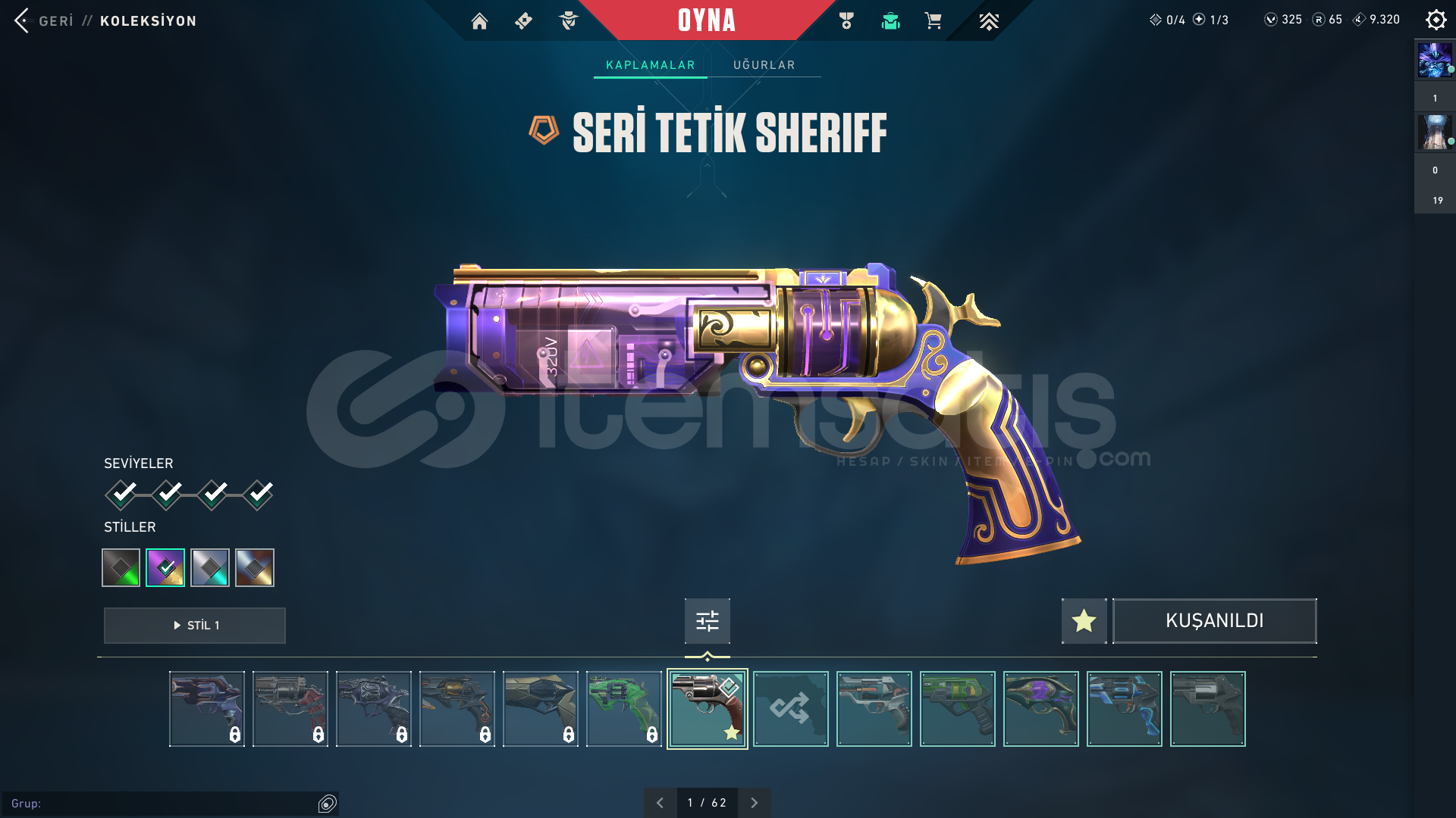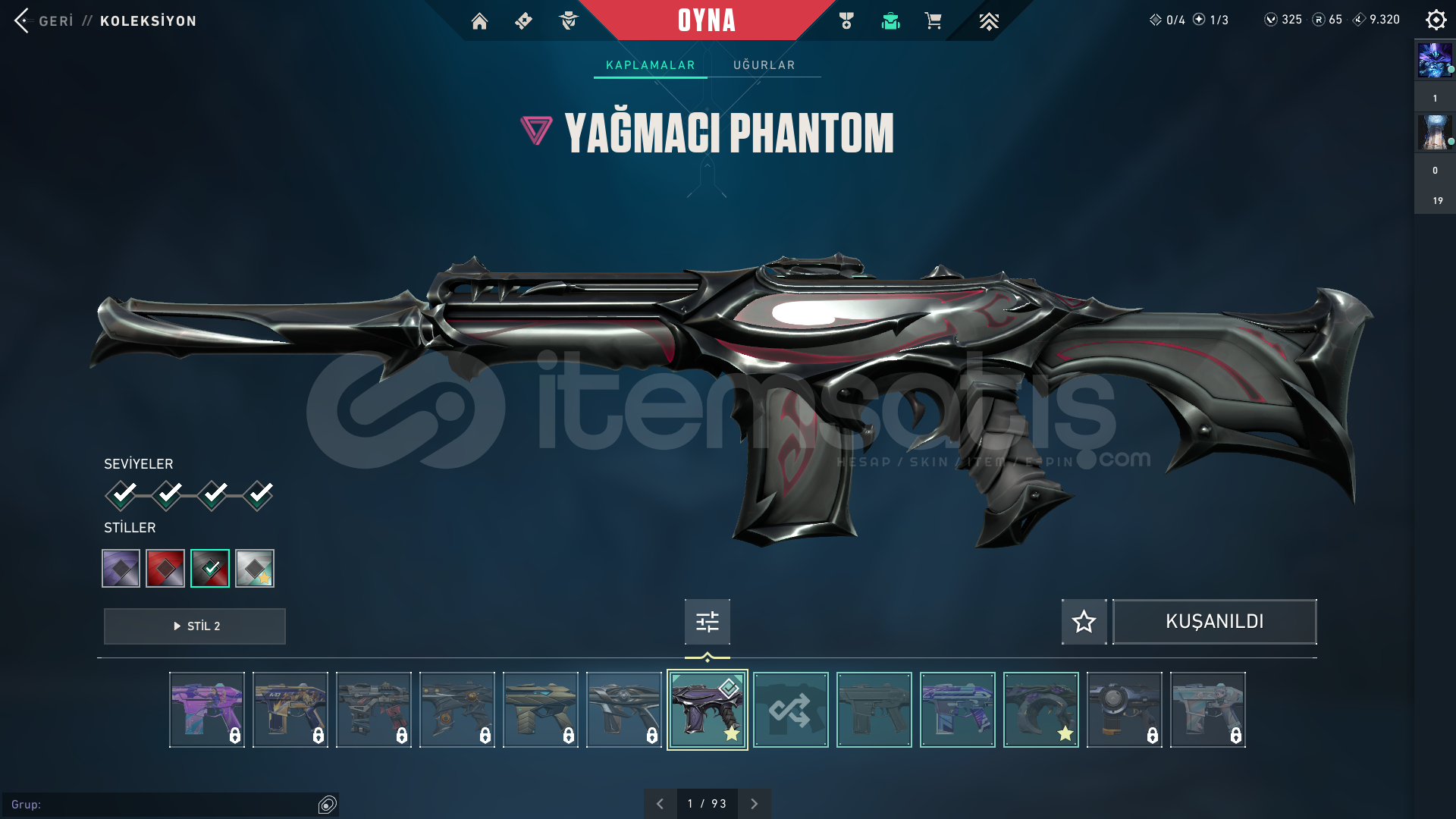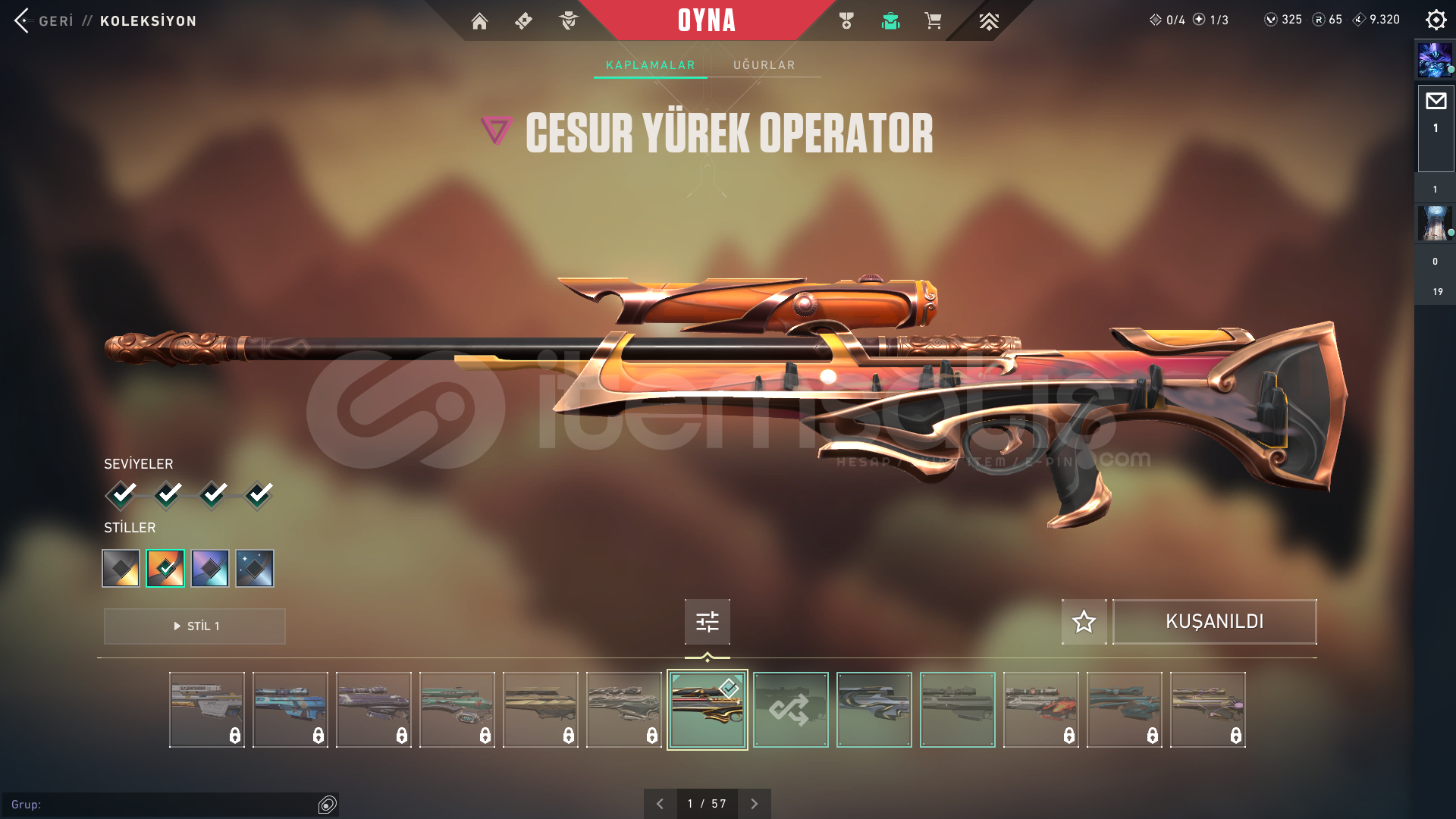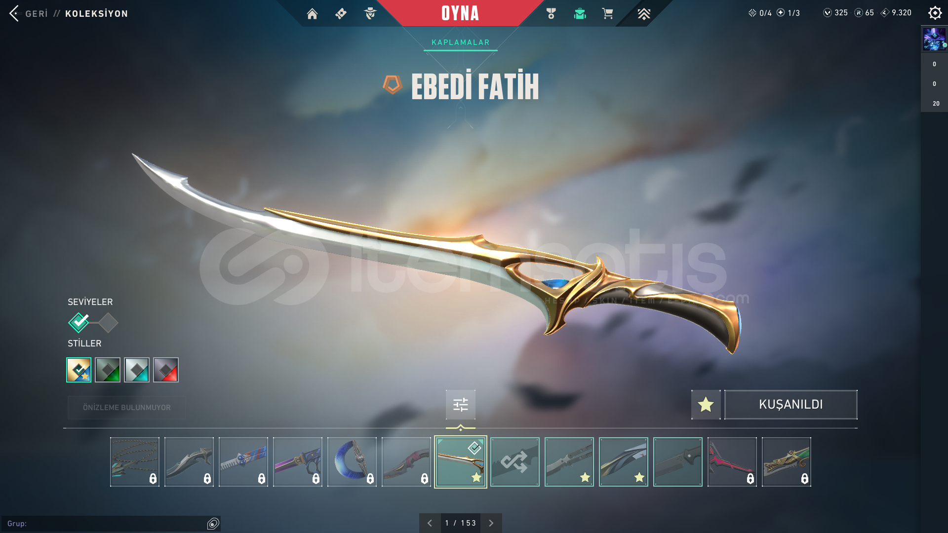 Classic-EvrimFrenzy-İyonGhost-Özel HarekatSheriff-Seri Tetik, Zamanın ÖtesiSpectre-AsilBucky-GaiaGuardian-YağmacıPhantom-Zifiri, YağmacıVandal-Yitik, Kaos, AsilBıçak-Fatih 2.0+Karaborsa kelebek+Operator-Cesur YürekOdin-Yağmacı