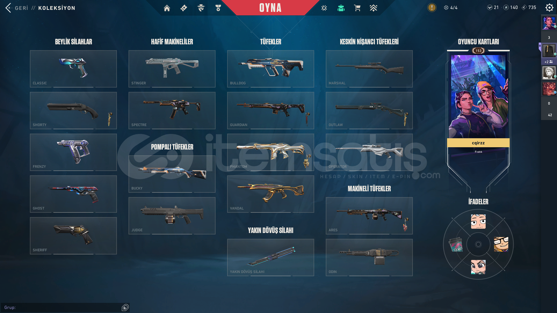 uzun zamandır oynadığım hesabımı satıyorum artık valorant oynamak istemiyorumhesap içersinde 2 adet battlepass açılmıştırCesur yürek vandalYağmacı VandalKöken VandalFatih phantomFlash phantomRgx pro kelebekİyon oparatör2 battle pass bıçağı 30/10/2025 tarihinde nick değişikliği yapılabilir