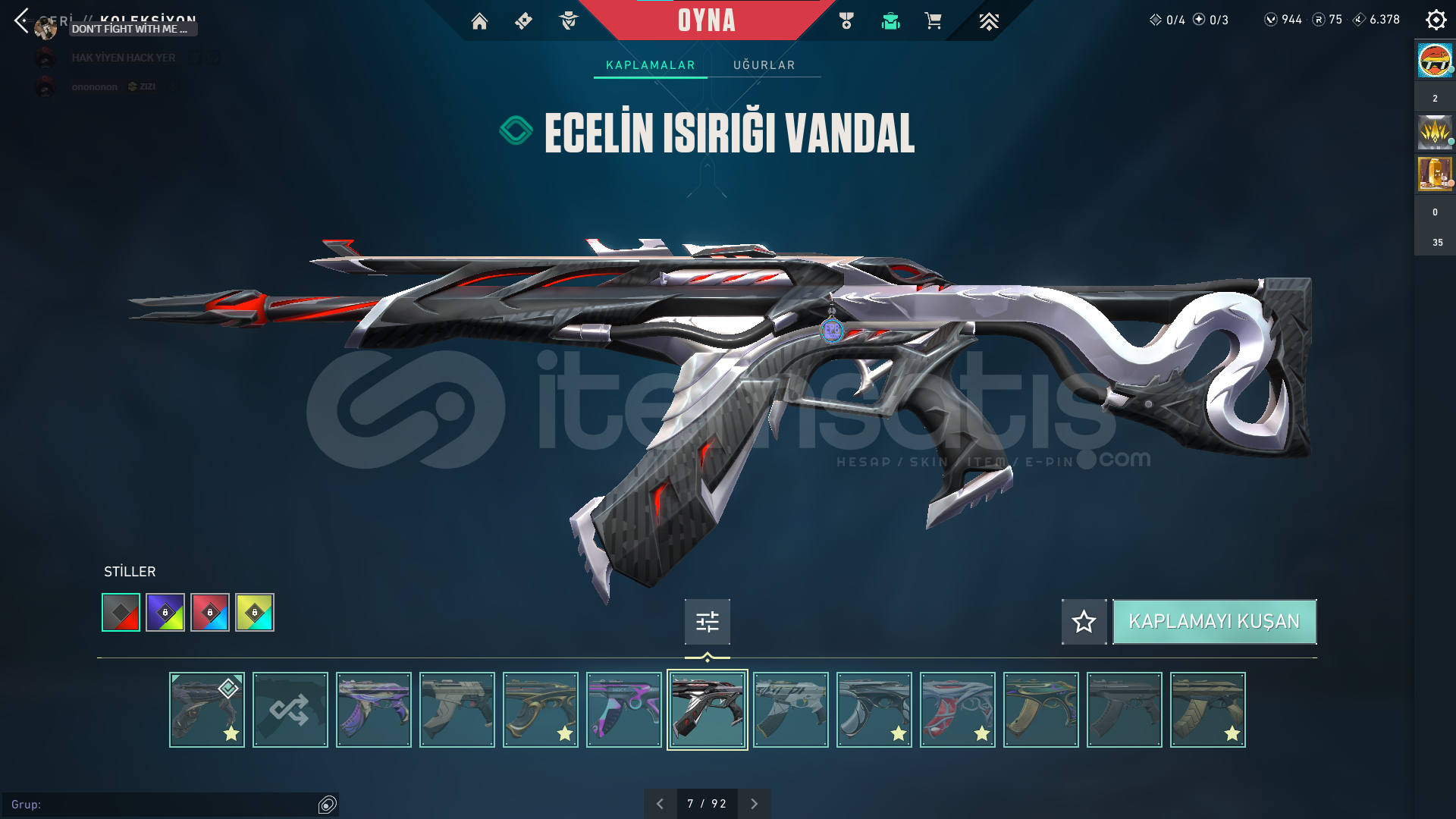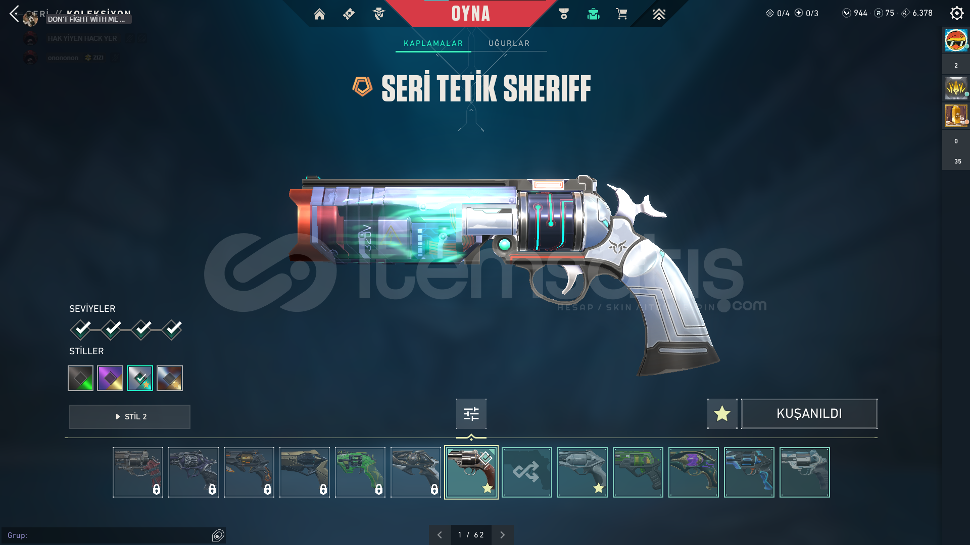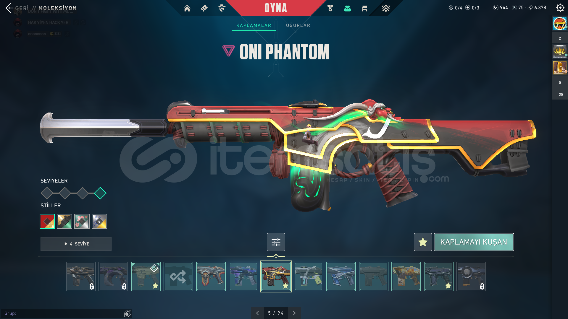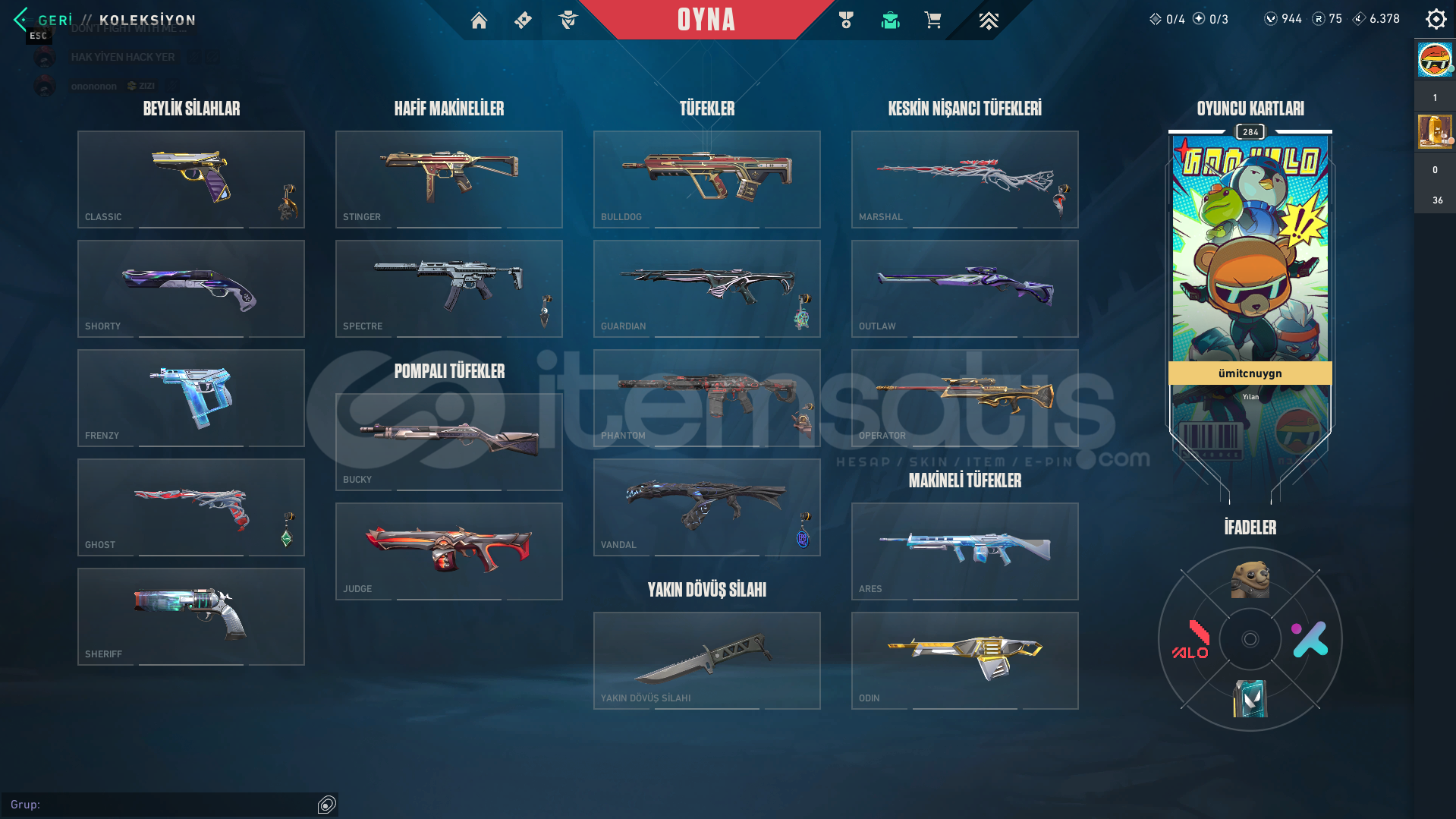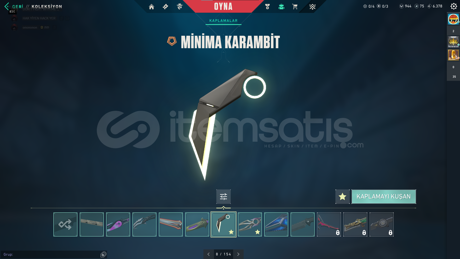 Gold 1Uzaylı Avcısı BıçağıSır Çiçeği KunaiMinima Karambit6 BattlepassYıldız Belası VandalGaia VandalEjder VandalCesur Yürek VandalEgo VandalEvrim VandalOni PhantomYağmacı PhantomÖzel Harekat PhantomRadyant Krizi SpectreEvori GhostGaia GhostSeri Tetik Sherrifİyon SherrifAsil ClassicGaia MarshalCesur Yürek OperatörFatih Guardian Asil OdinYücelik Uğurluğu