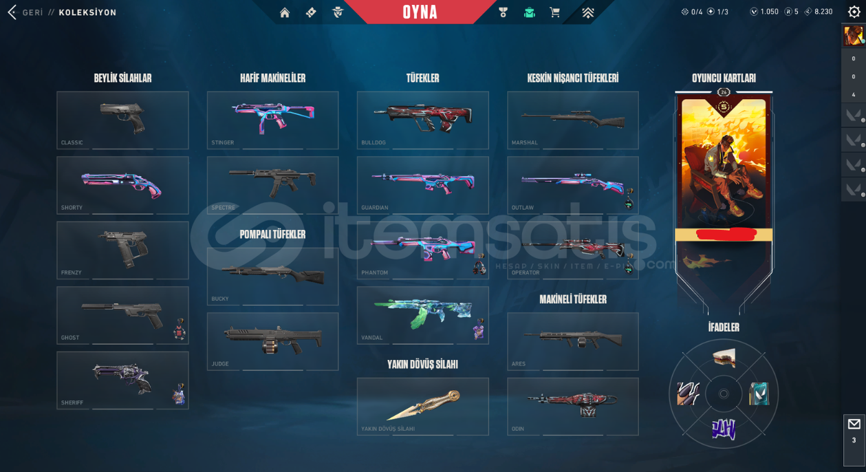 Hesapda 1.050 RP BulunmaktadırHesapda BP açıktırHesapda şu skinler vardır:Dolmirin İntikamı VandalYağmacı VandalYağmacı ŞerifSihirçakıGÜMÜŞ 2 Hesaptır26 SeviyedirCİDDİ ALICILAR YAZSIN FİYATTA AZ ÇOK YARDIMCI OLUNUR PAZARLIK SÜNNETTİR