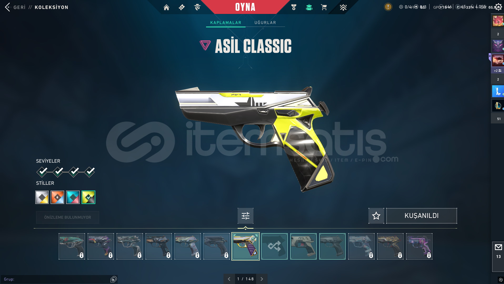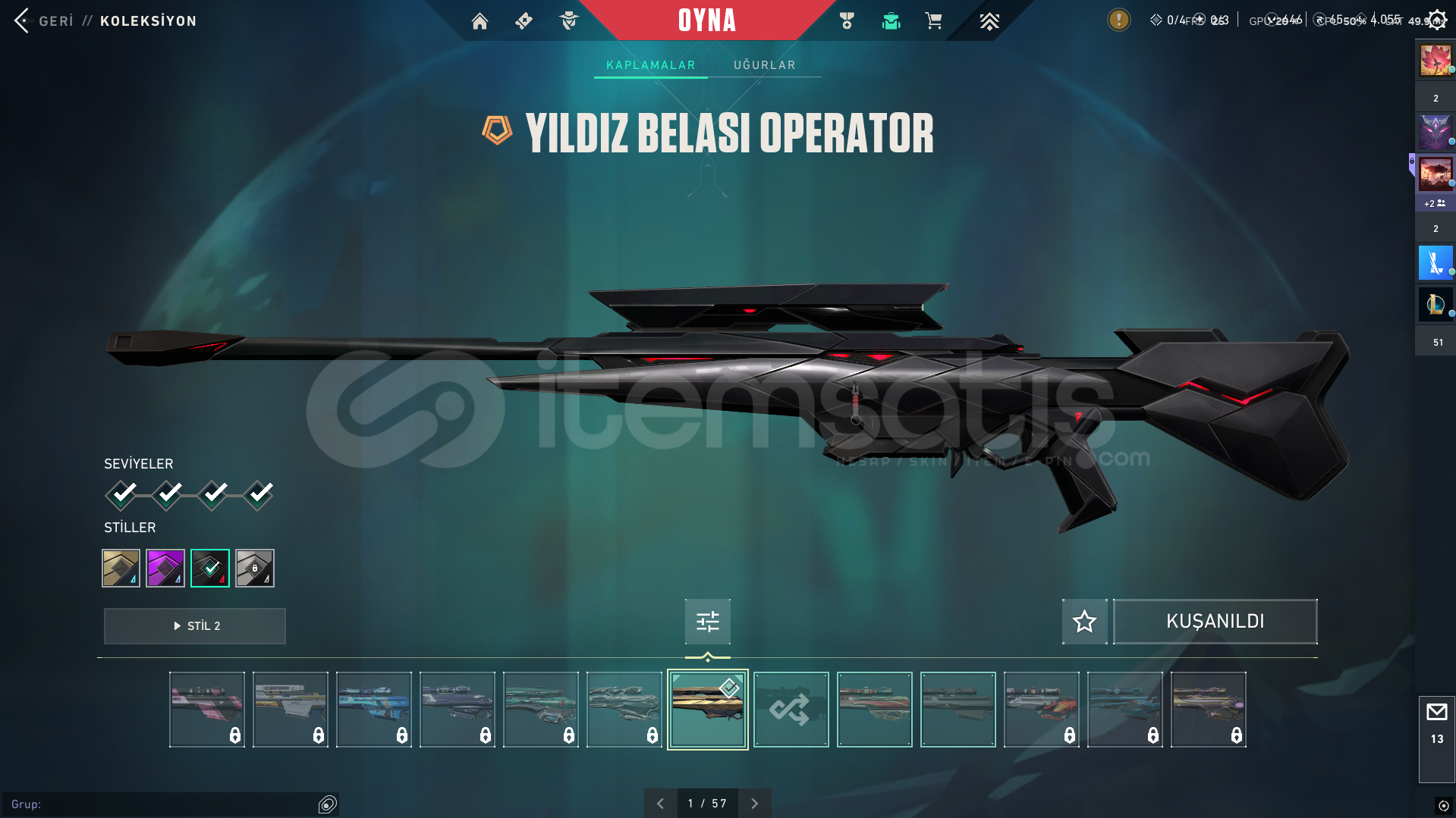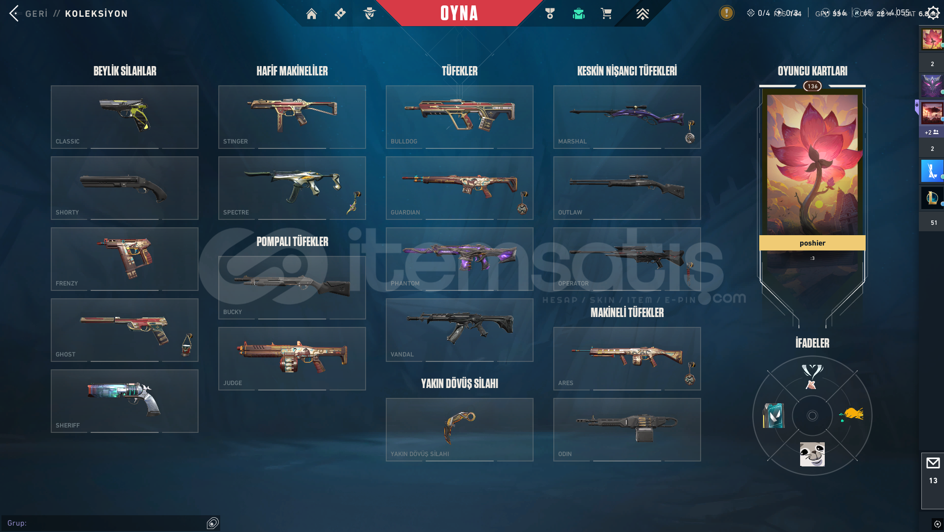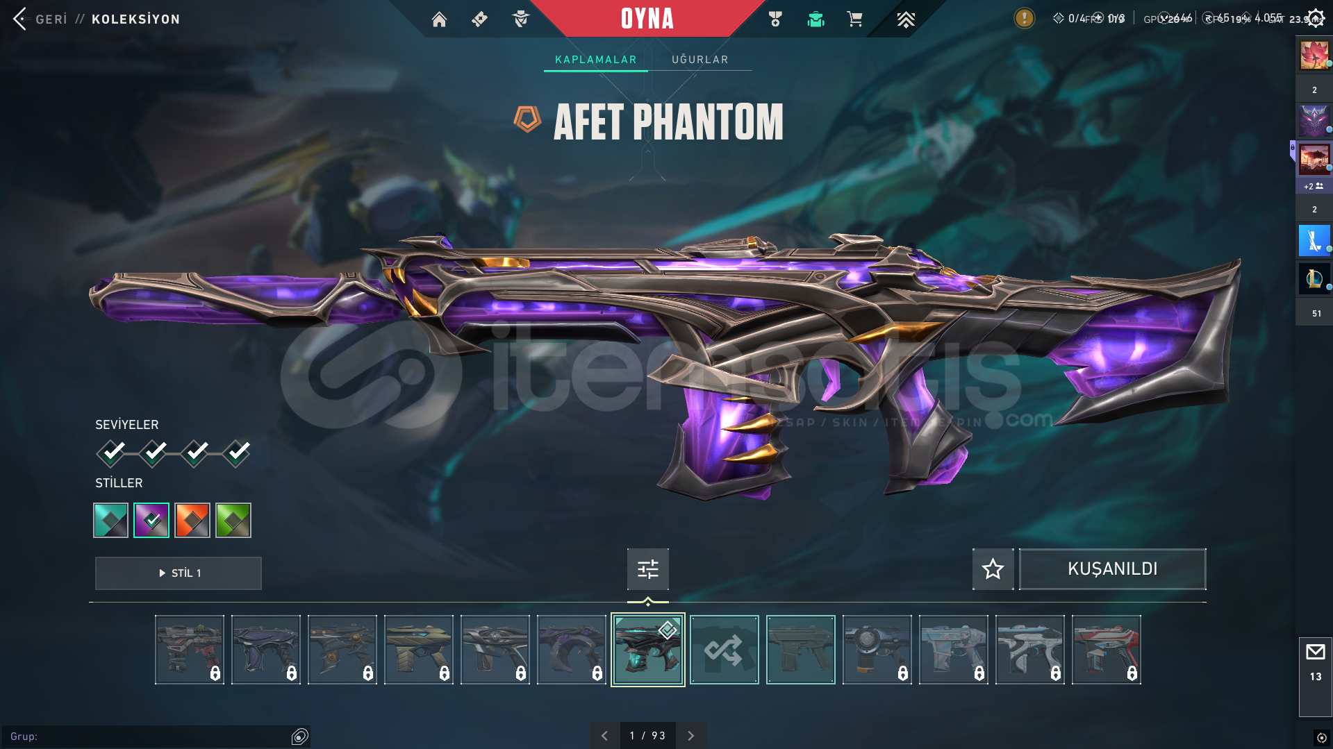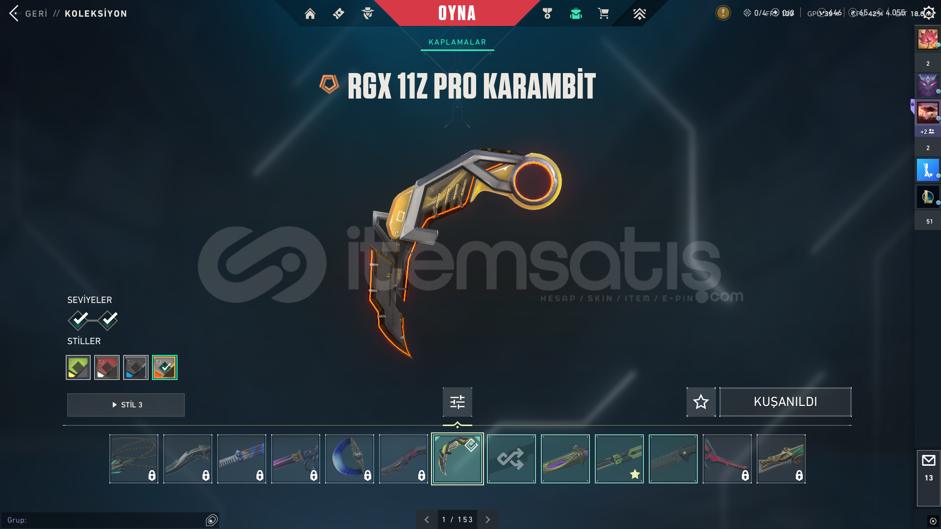 SKİNLERAsil Classic,Seri Tetik SherrifGaia Vandal,Yıldız Belası Vandal,Yağmacı VandalAfet PhantomYıldız Belası OperatörBIÇAKLARRGX KarambitRGX KelebekHESAPTA EKSTRA OLARAK 440VP BULUNMAKTADIR!!!