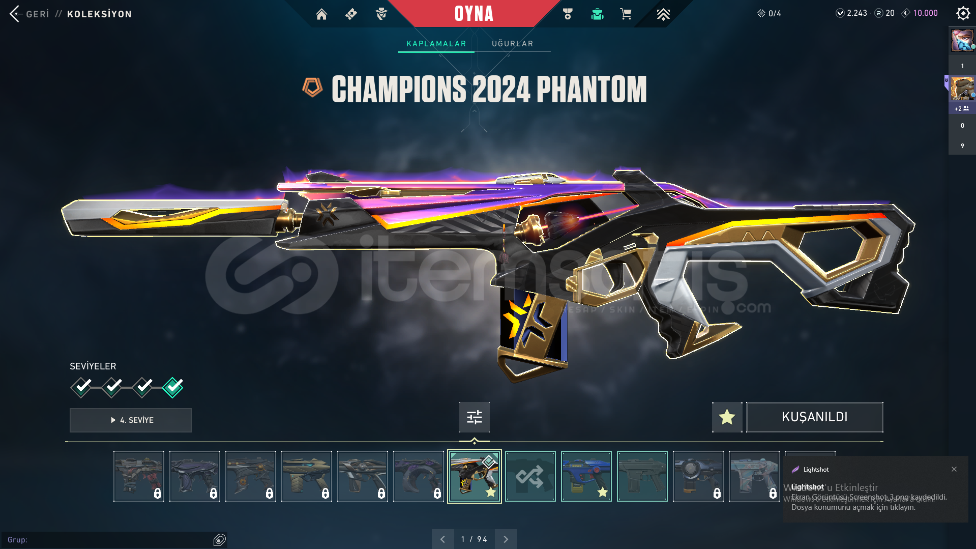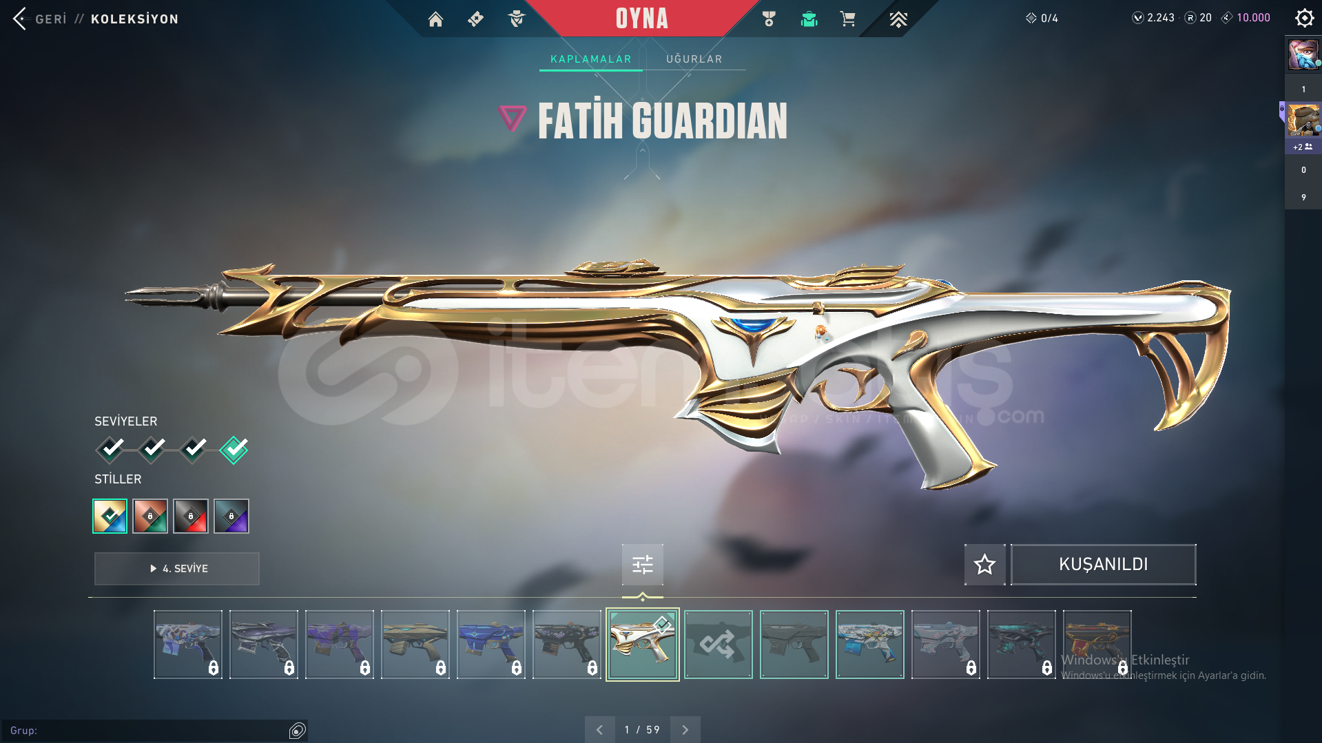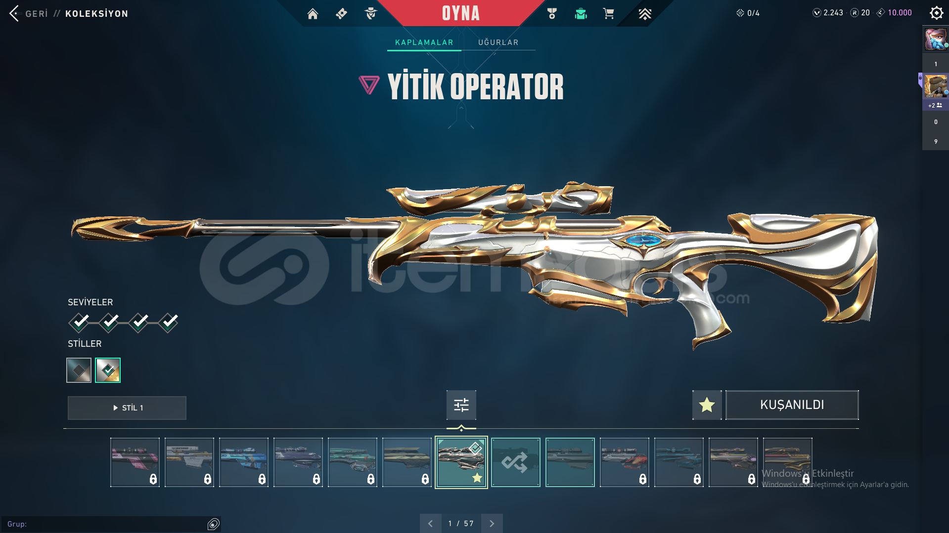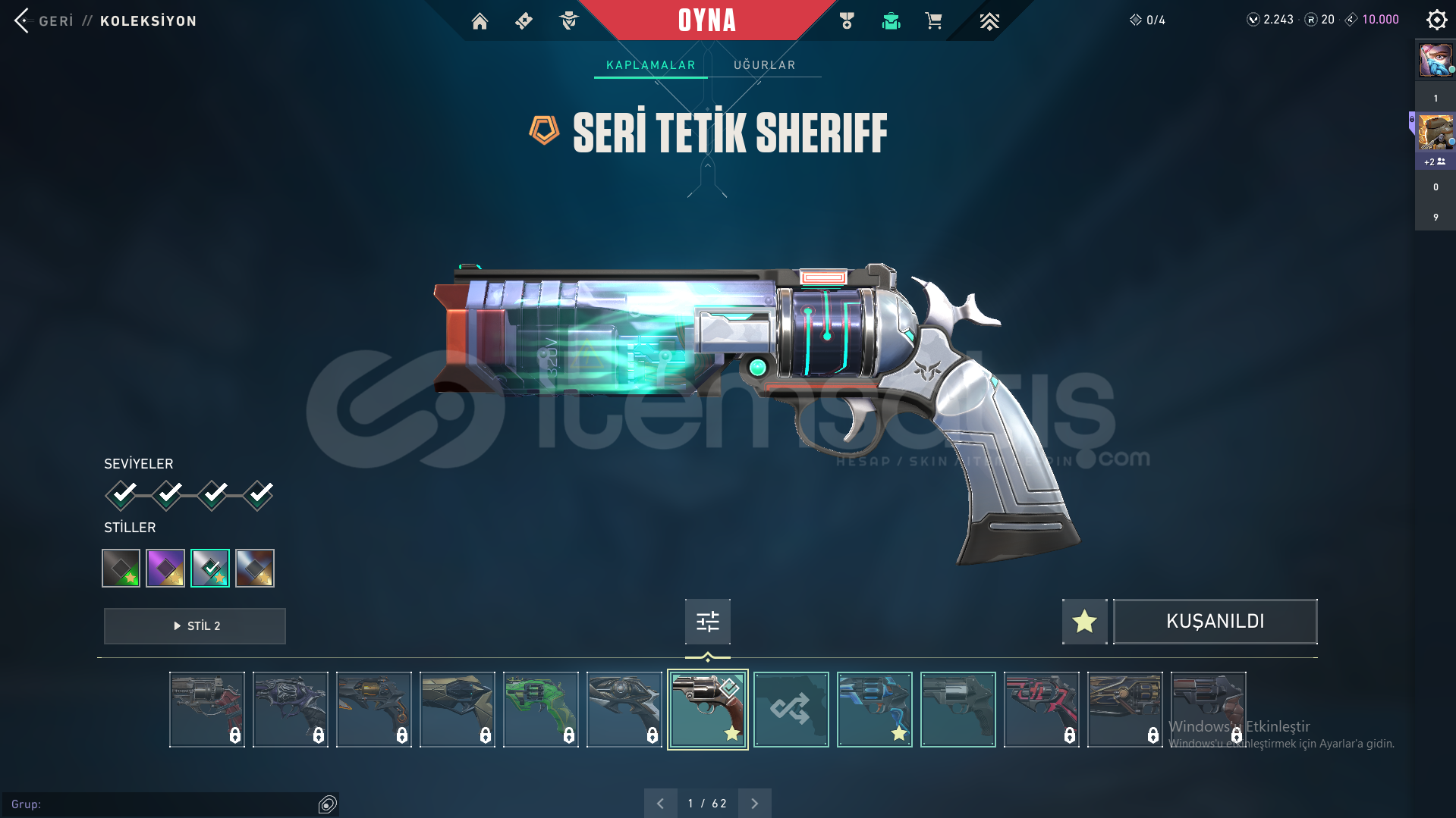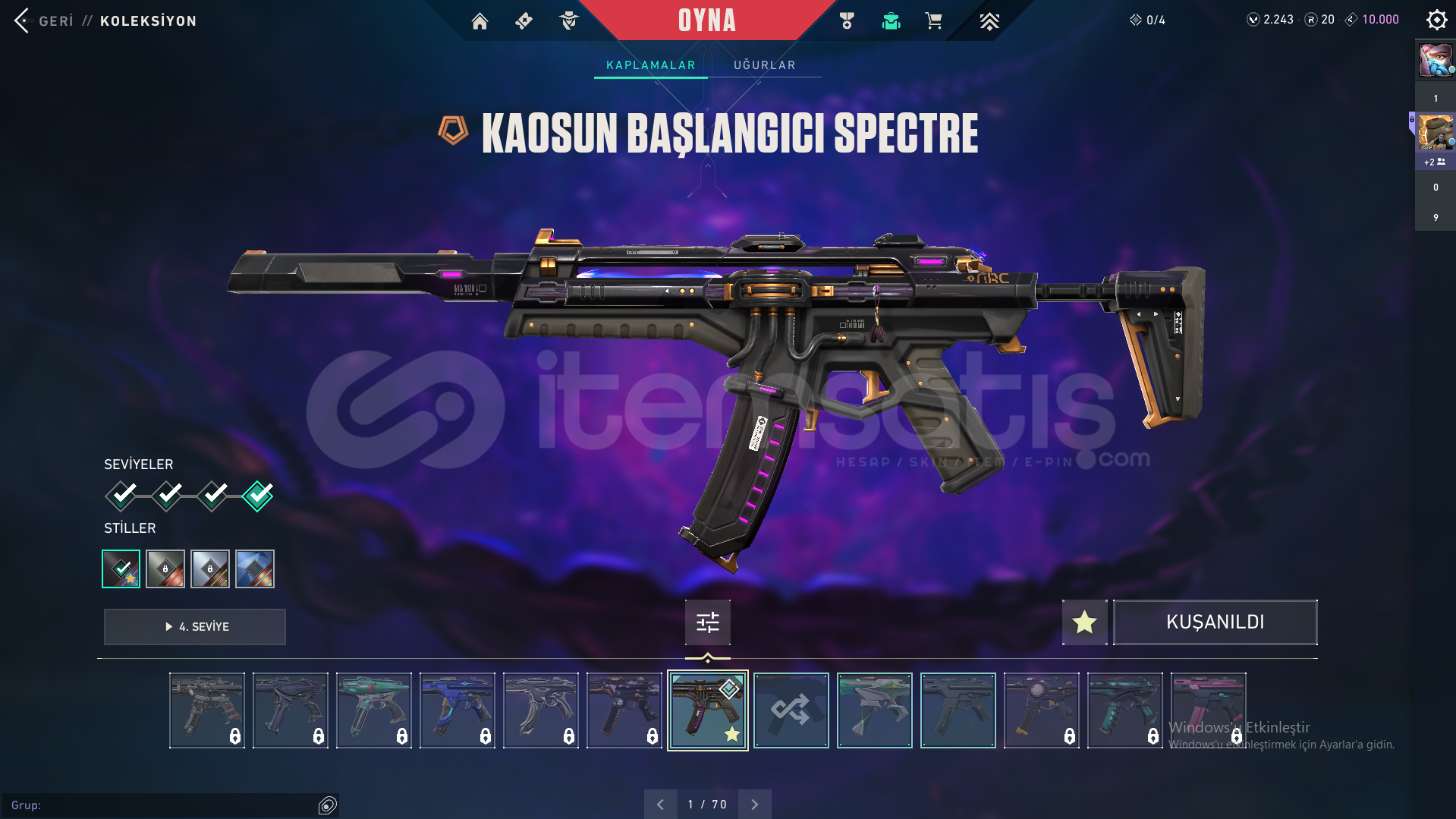 -RESİMLERE SIĞMADIGI İÇİN TÜM SKİNLER ASSAĞIDA YAZIYOR!-128 seviye-Aktif 2243 vp bulunmakta-Uzaylı Avcısı bıcak-Champions 2024 kılıç-Gaia vandal-Kuronami vandal-Cesur Yürek vandal-Champions 2024 phantom-Radiant Entertainment System phantom-Kaos spectre-Fatih guardian-Seri Tetik şerif-Anamoli ghost-Vct Kc classic-Kuronami marshall-Yitik operator-3 battle pass-İlk maili kayıp eski hesap-Tüm kara...