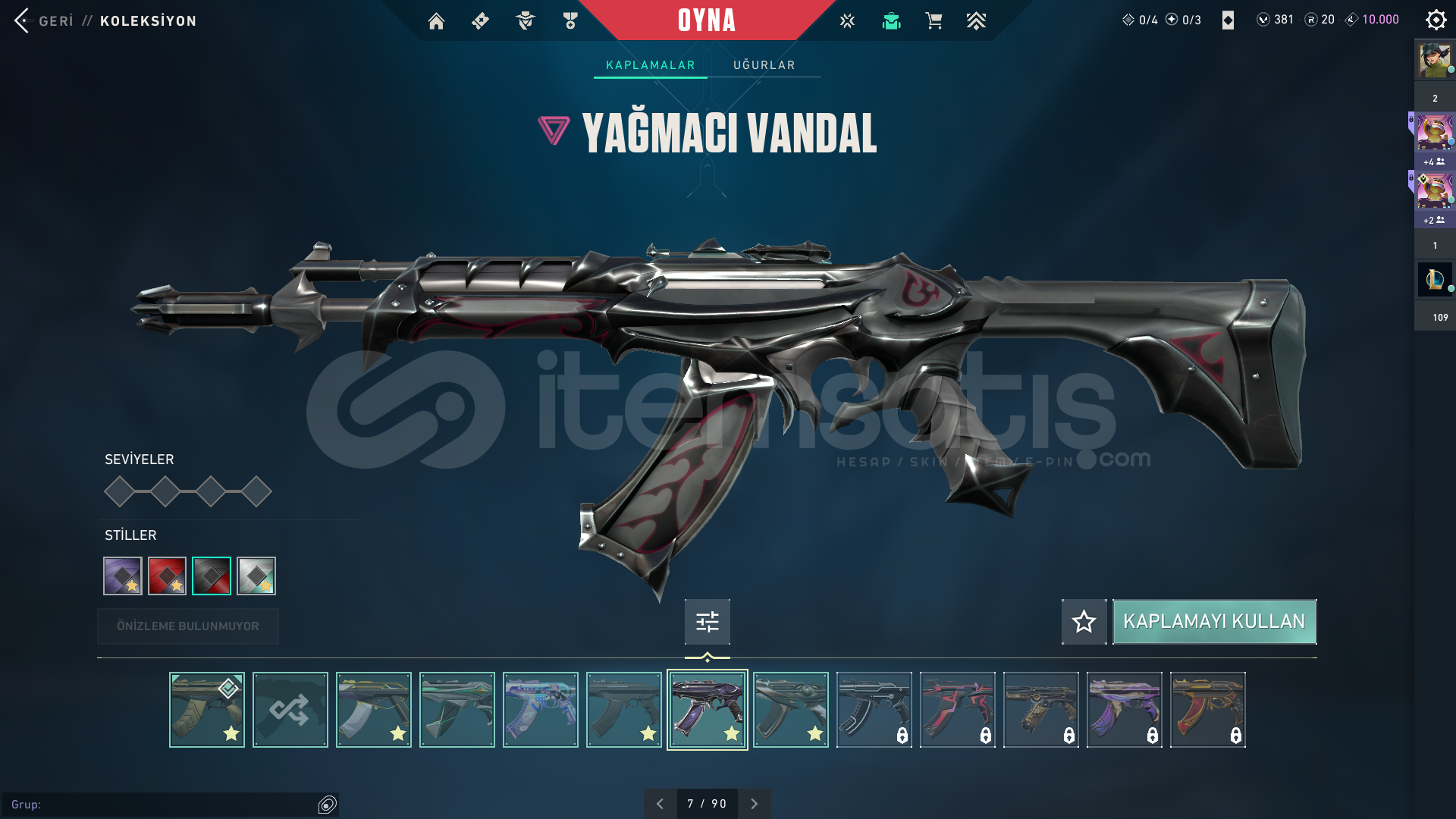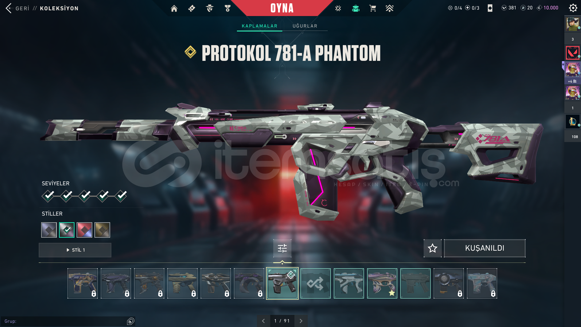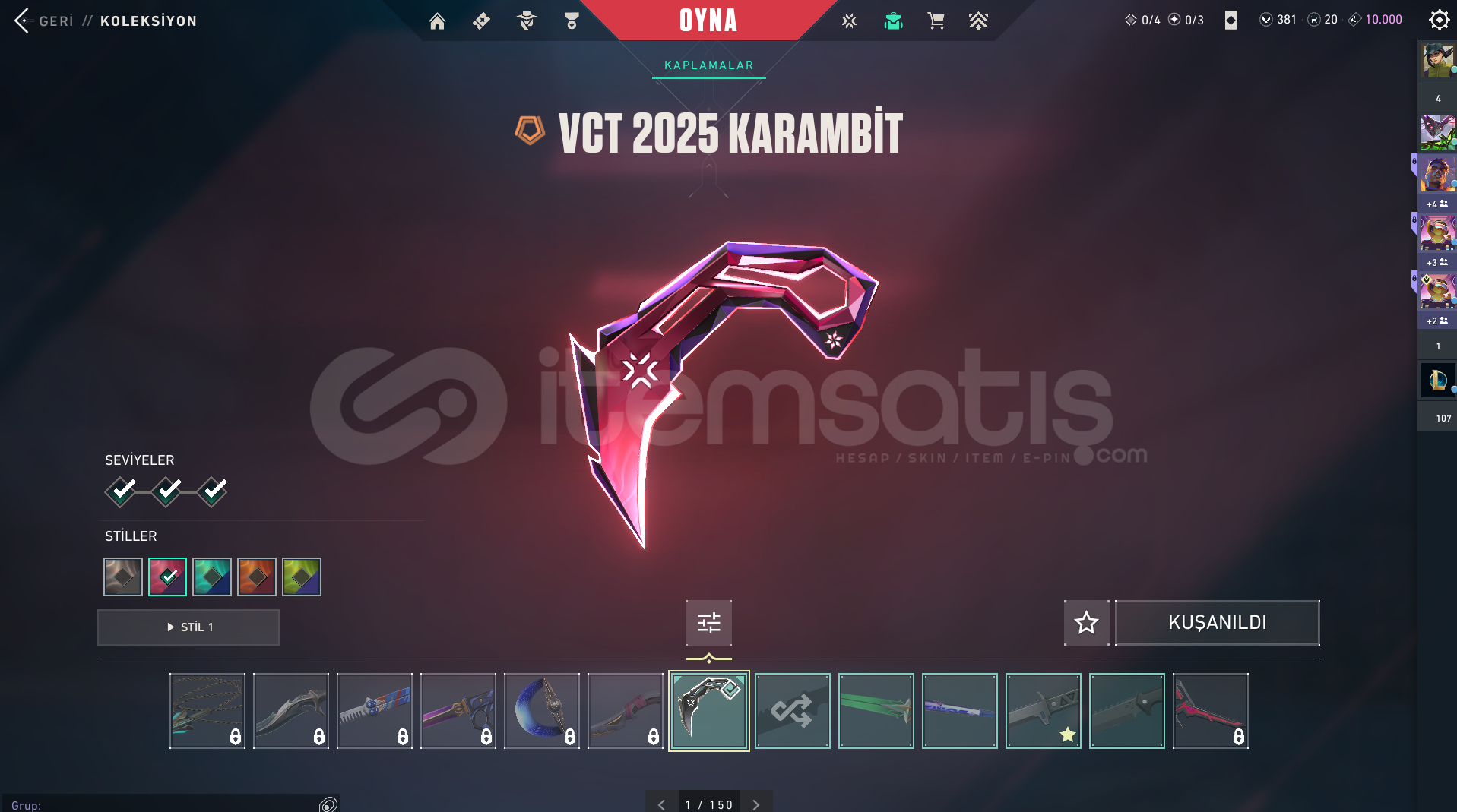 6 vandal skinli3 phantom skinli hesapvct 2025 karambit ve uzaylı avcısı bıçak varPlat 2 hesap276 seviyehesabın içinde 381 vp varHesapta 2 adet battle pas var ve ikiside fullenmiştirhelozon koleksiyonunun donatısı mevcutturPazarlığa açıktır (:Şimdiden Hayırlı Olsun⭐