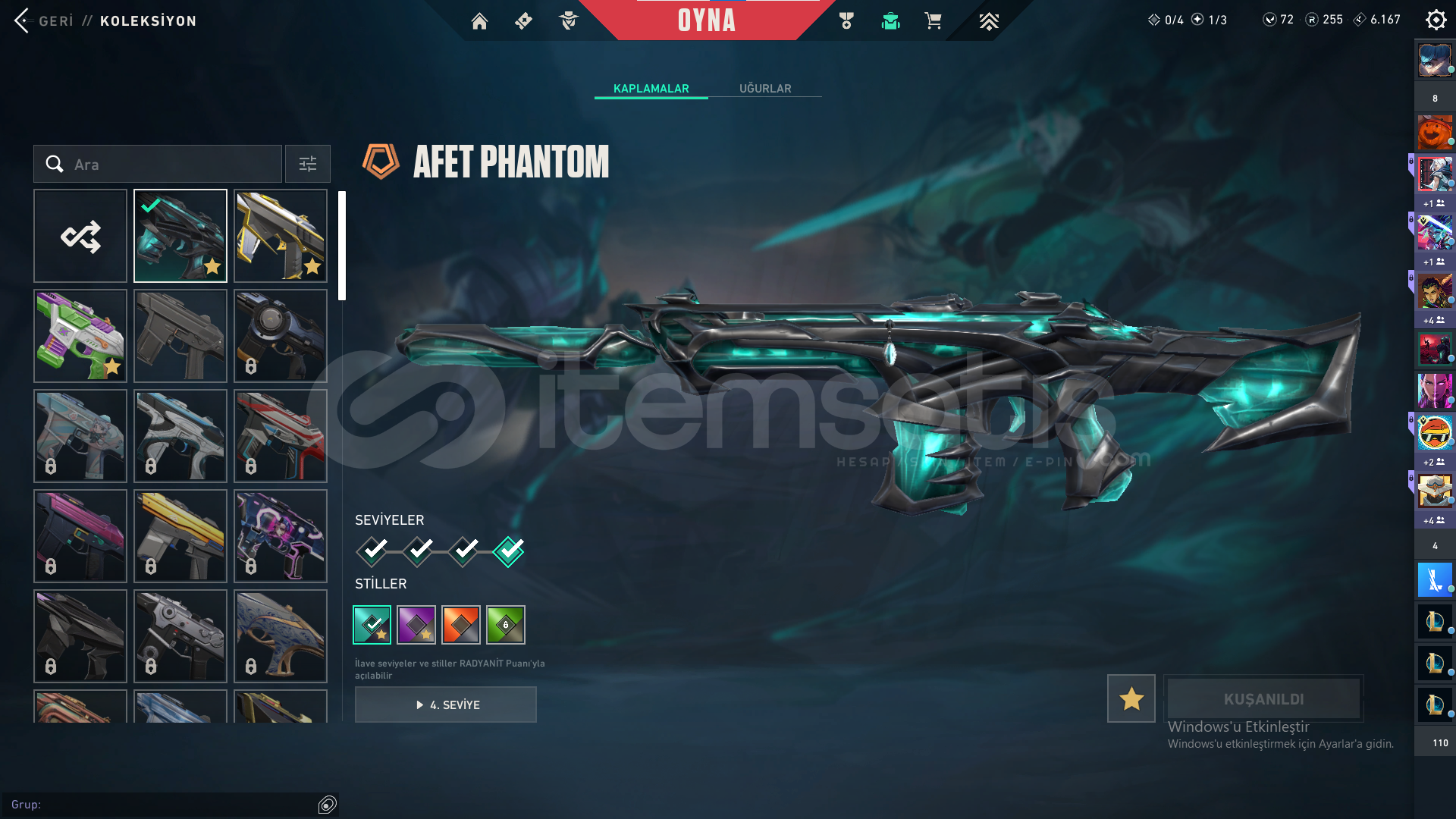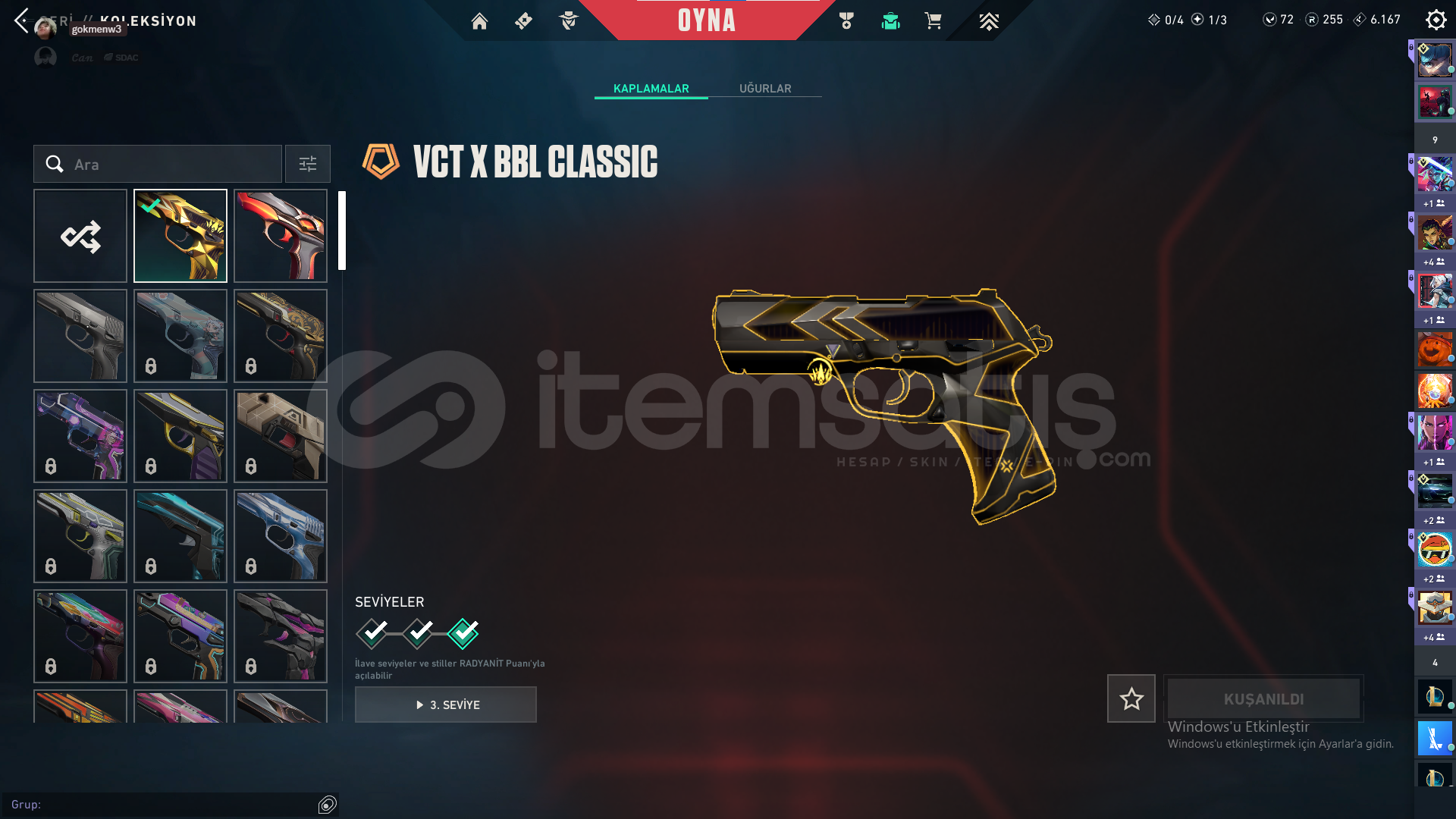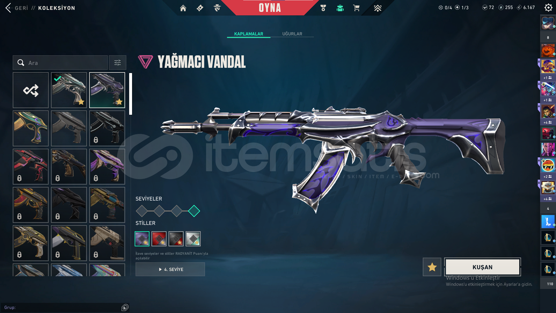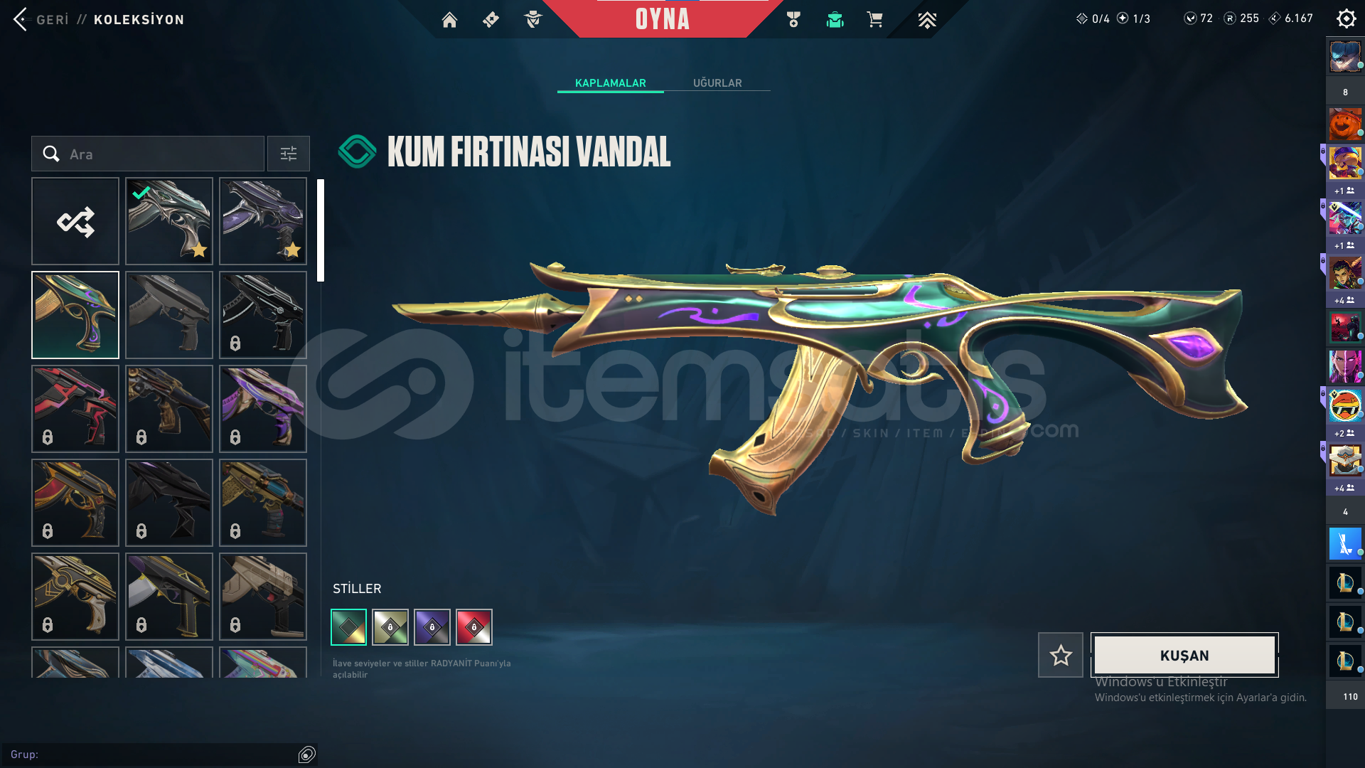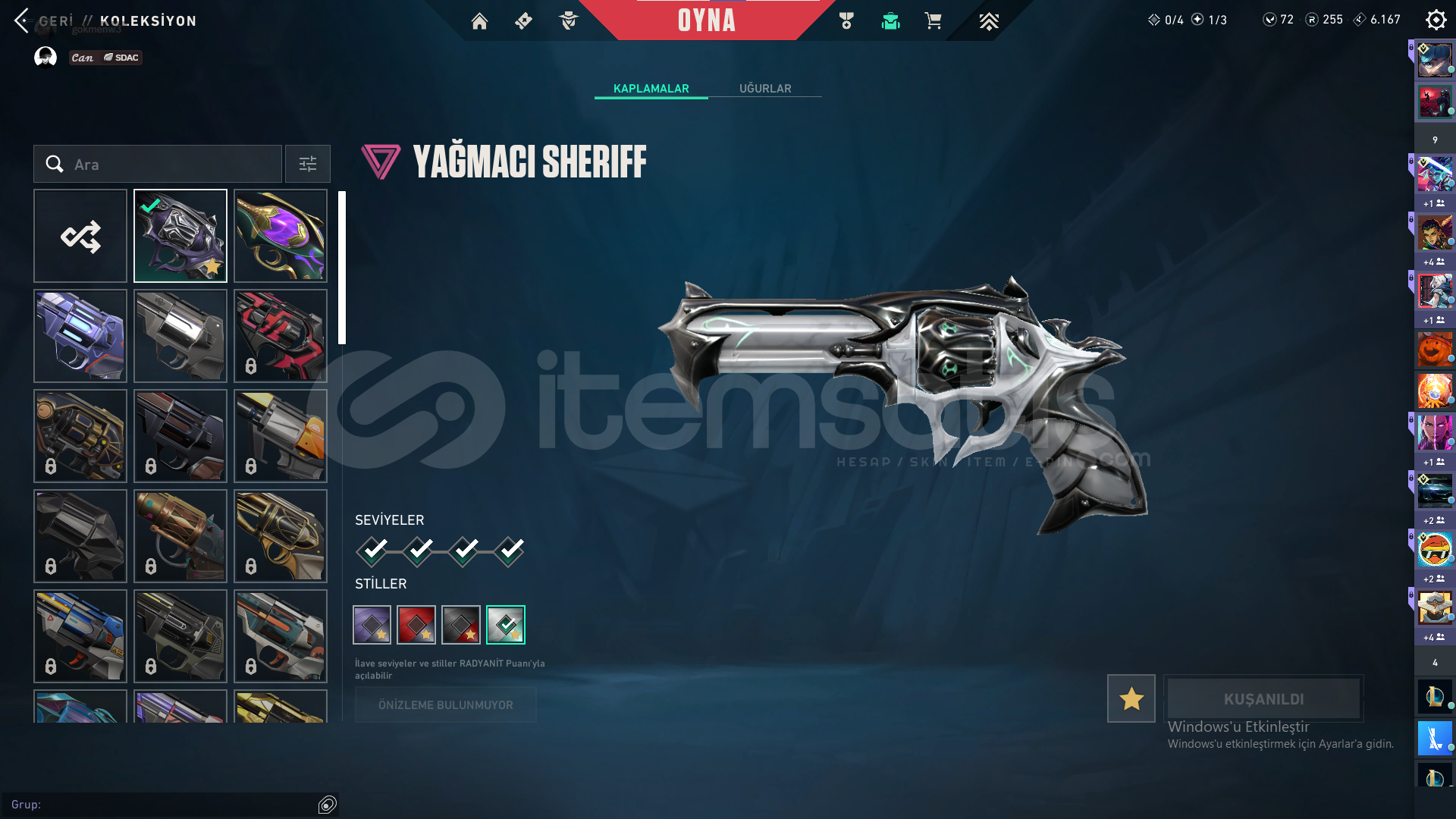 Bıçak: Yorunun kelebeği,Kum Fırtınası hançeriVandal: Yağmacı,Yitik,Kum FırtınasıPhantom: Afet,Asil,BlastxSheriff: Yağmacı,Kum Fırtınası,Son DilekOperator: İyon,FındıkkıranClassic:BBL 2024