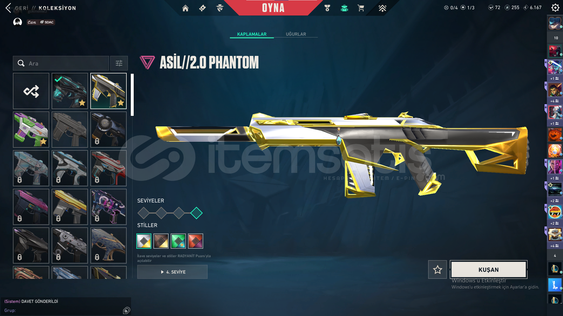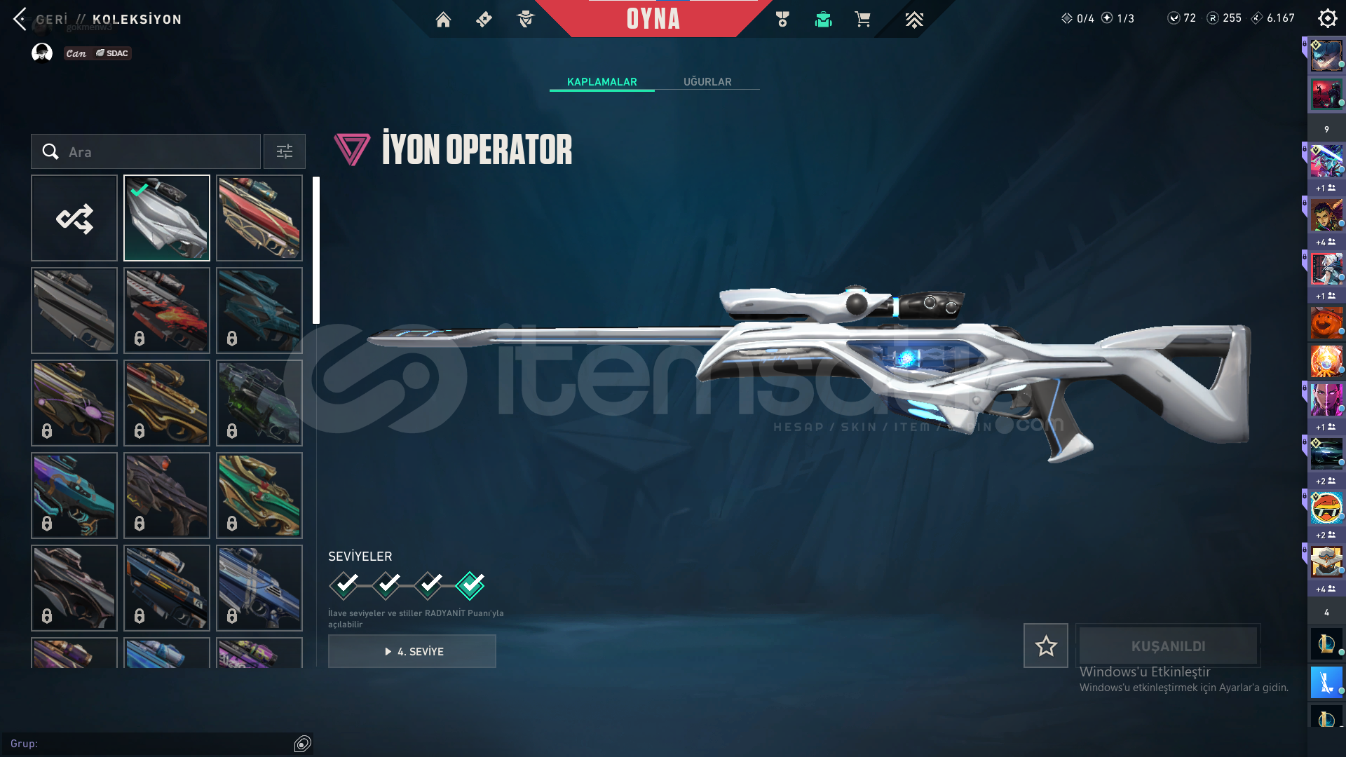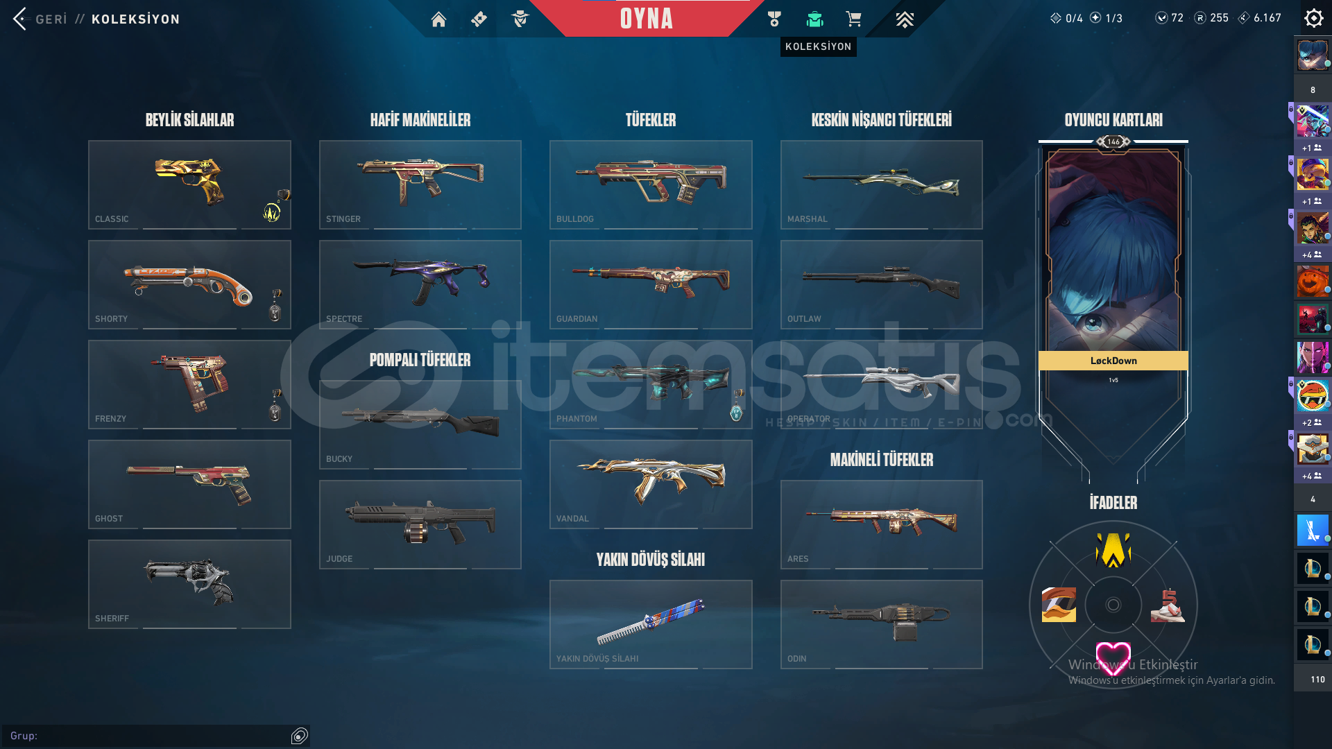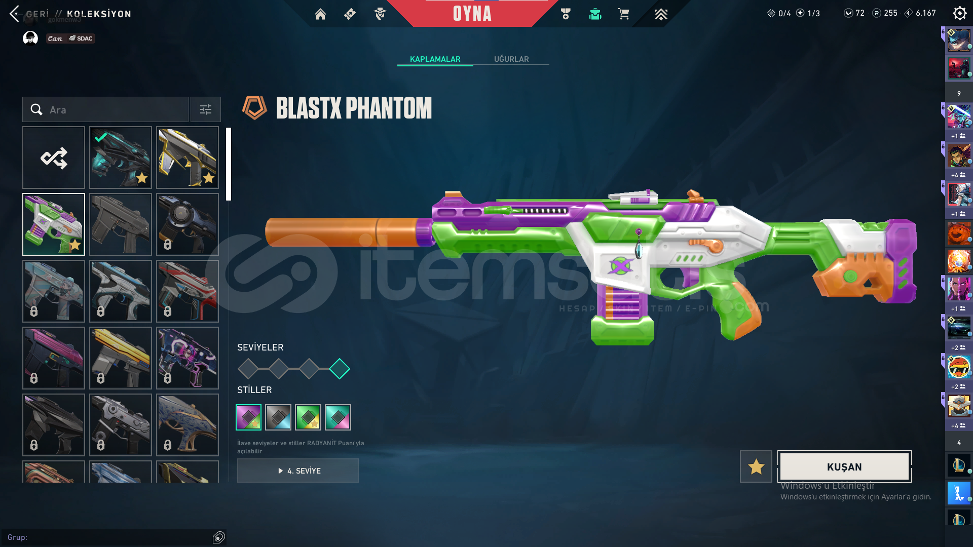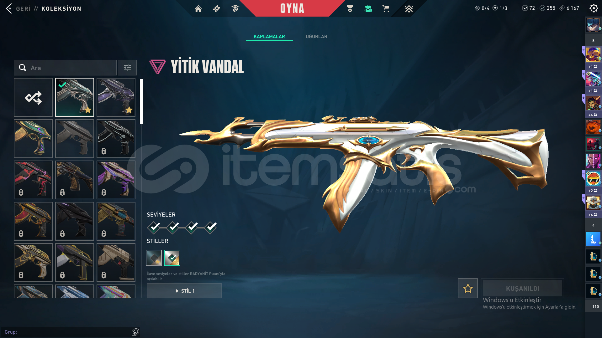 Bıçak: Yorunun kelebeği,Kum Fırtınası hançeriVandal: Yağmacı,Yitik,Kum FırtınasıPhantom: Afet,Asil,BlastxSheriff: Yağmacı,Kum Fırtınası,Son DilekOperator: İyon,FındıkkıranClassic:BBL 2024