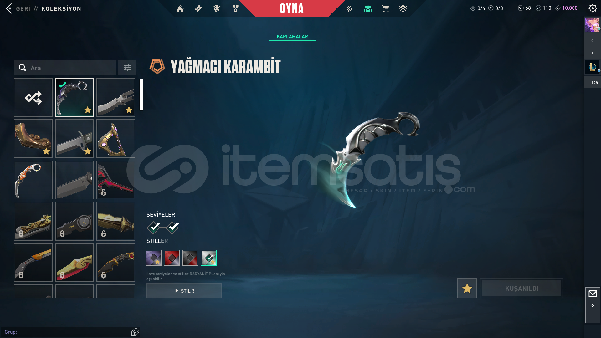 Bıçak: yağmacı karambit , uzay avcısı , karaborsa kelebek , semavi yelpaze
