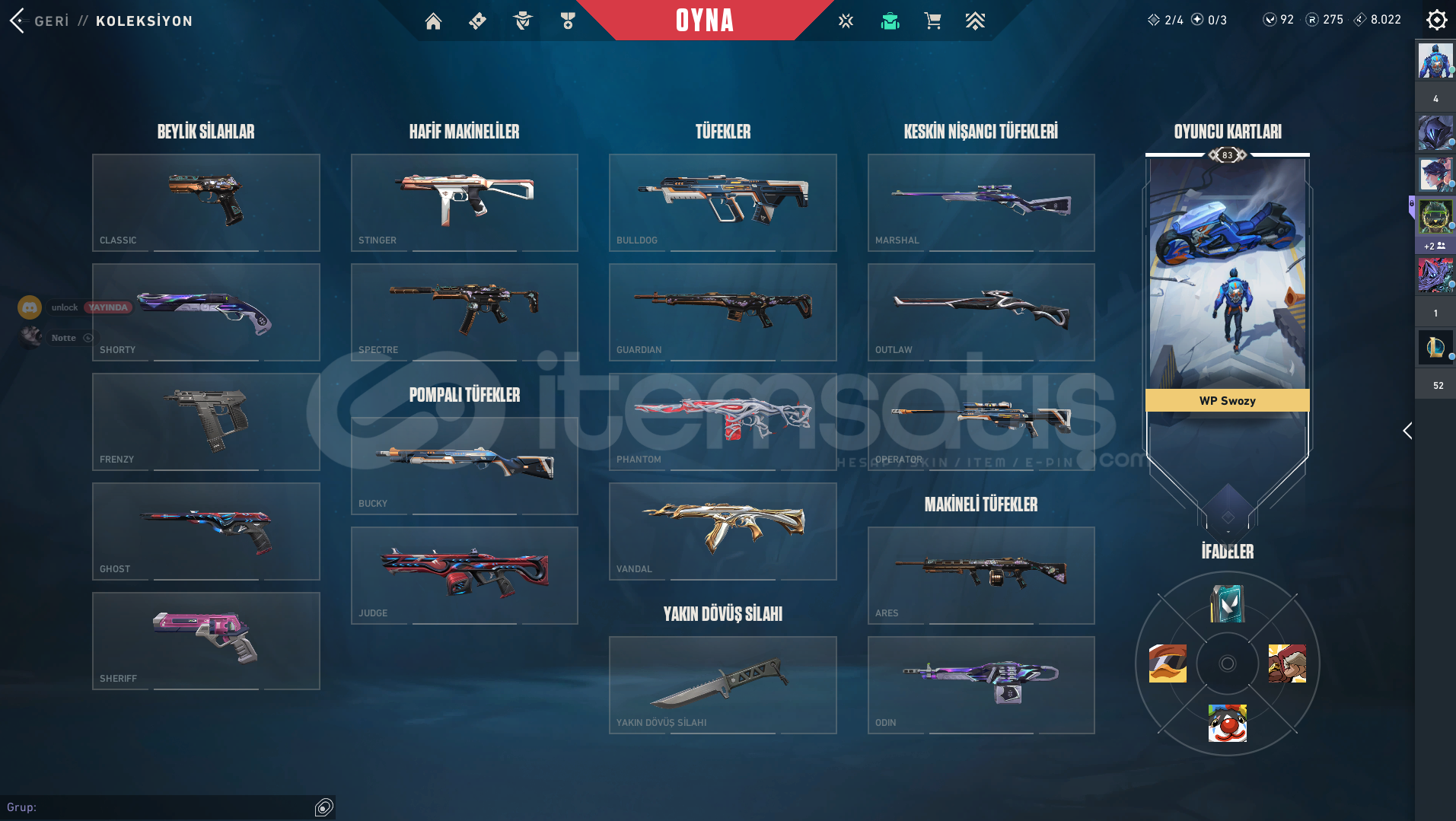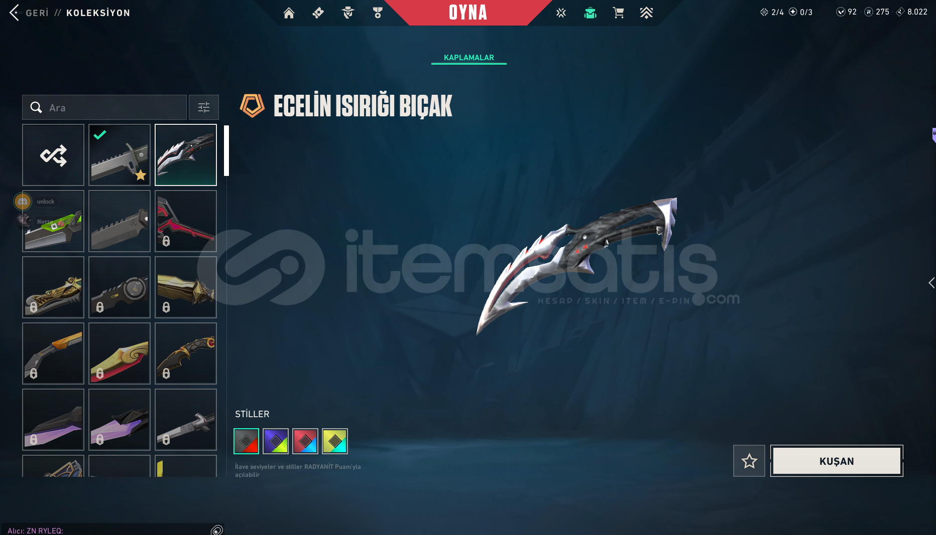 HesapdakiSkinler 2 adet BattlepasEcelin buyruğu battlepas'iKartuş Battlepas'iUzaylı avcısı bıçakyitik vandalGaia'nın İntakamı phantom