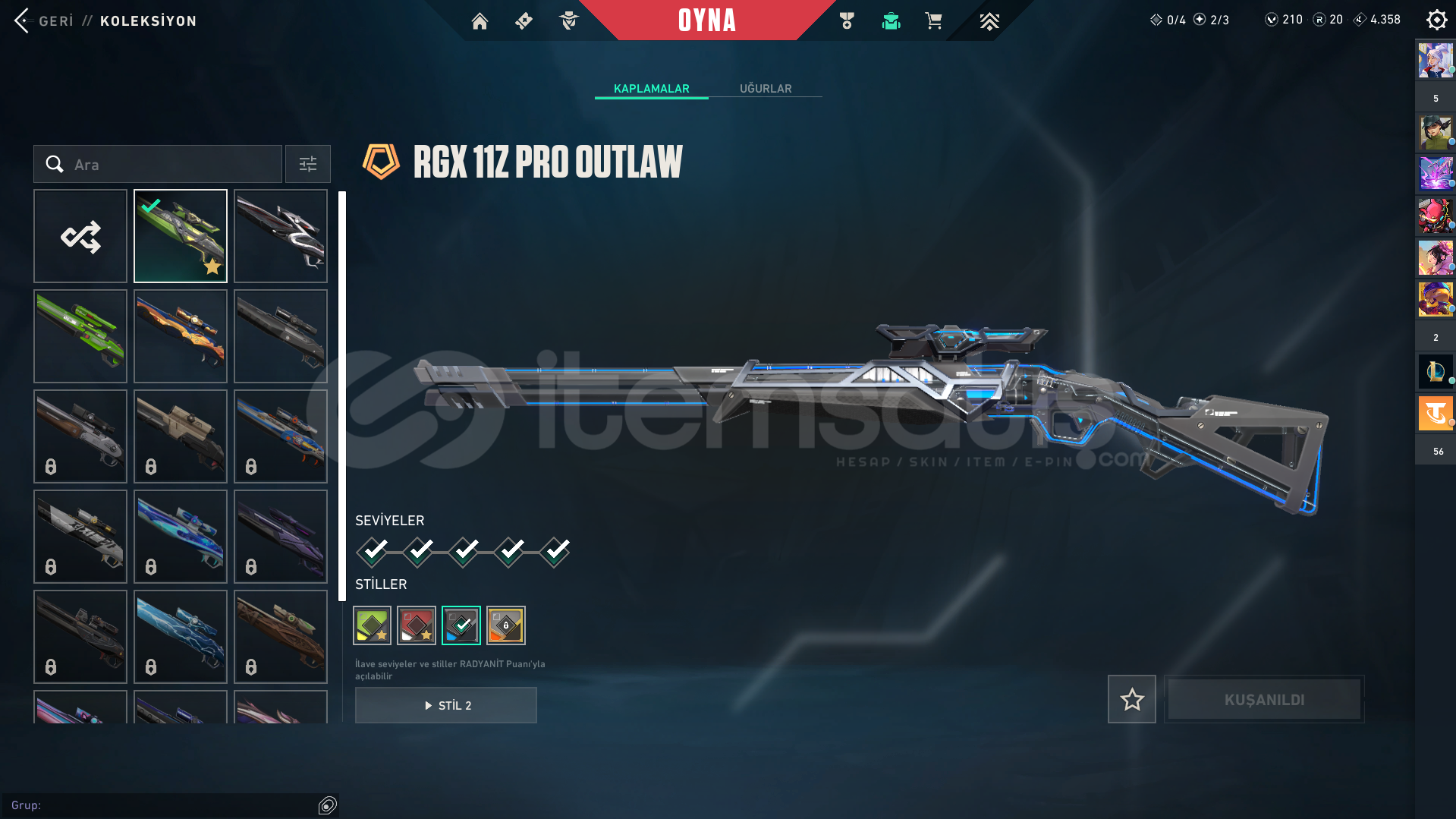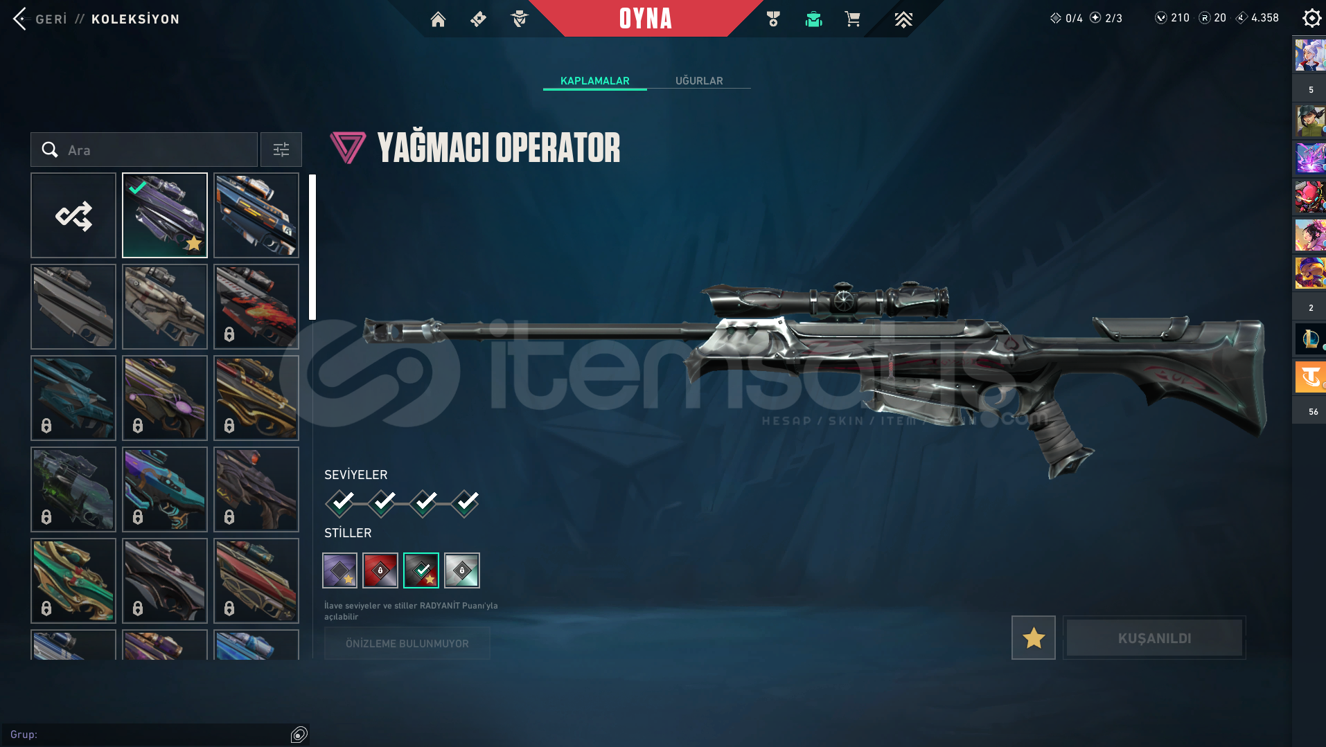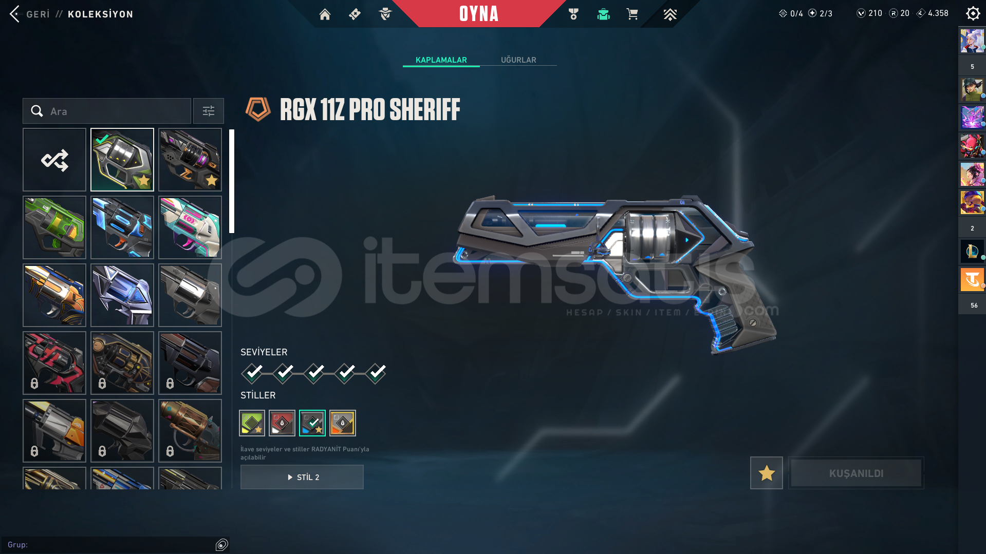 hesaptaki skinler