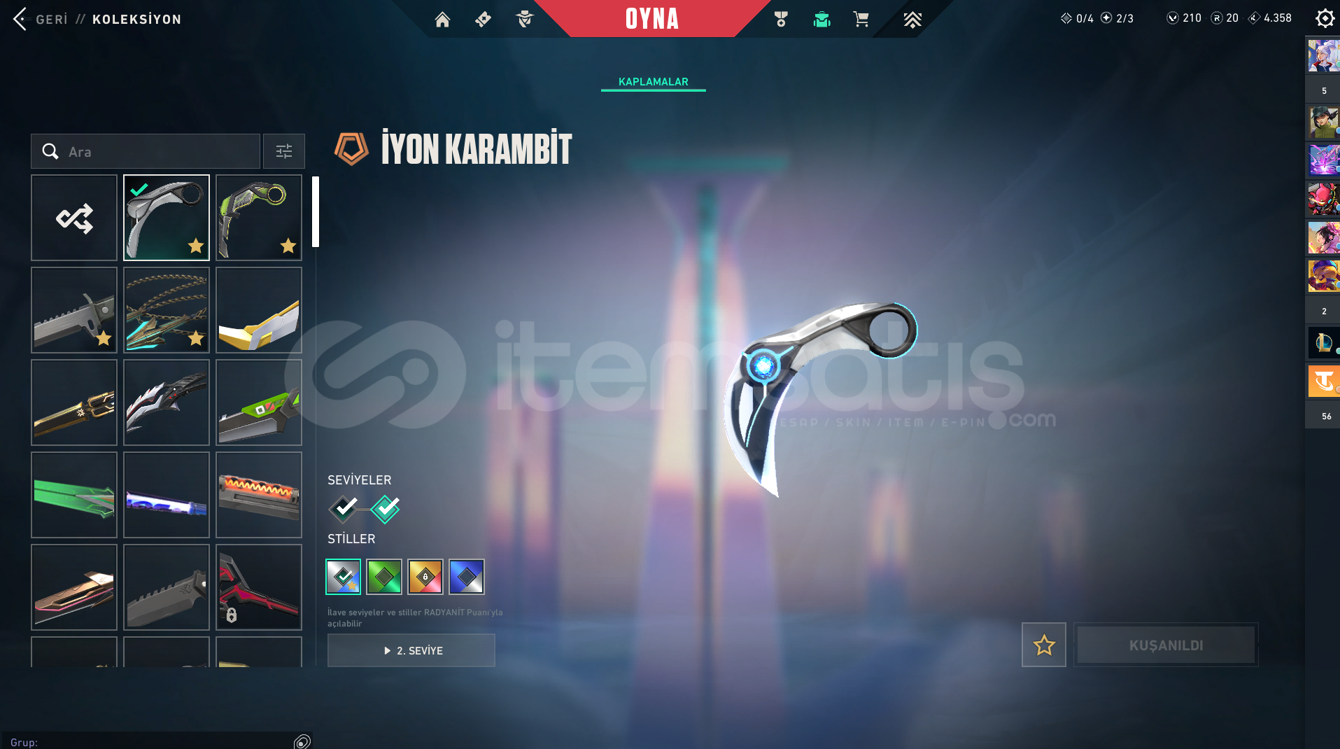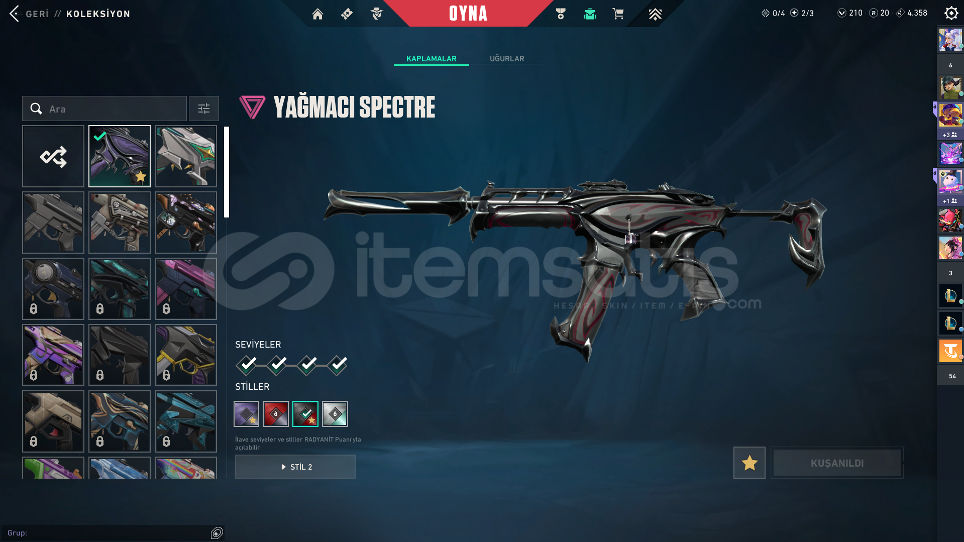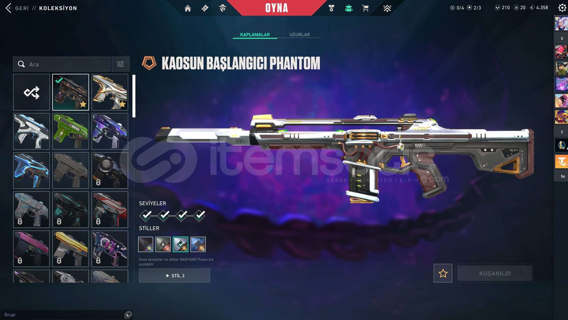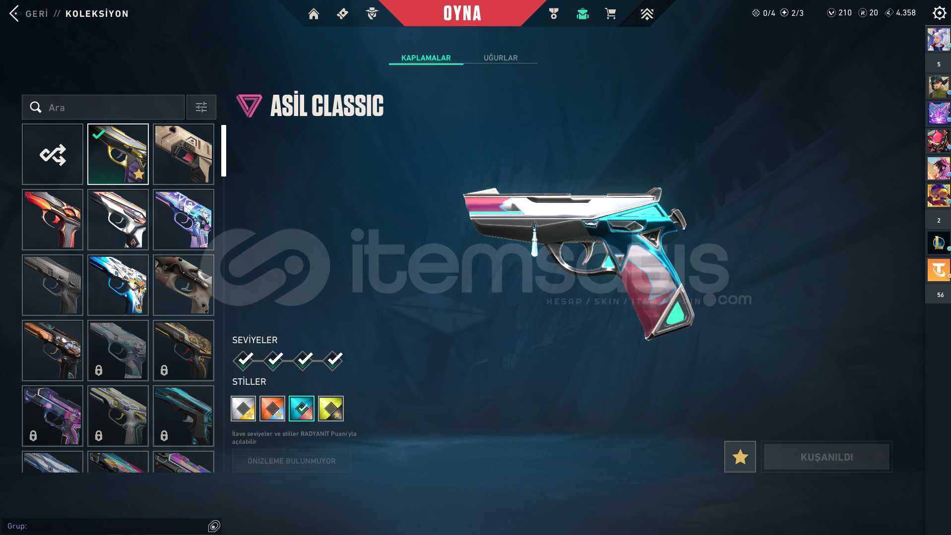 hesaptaki skinler