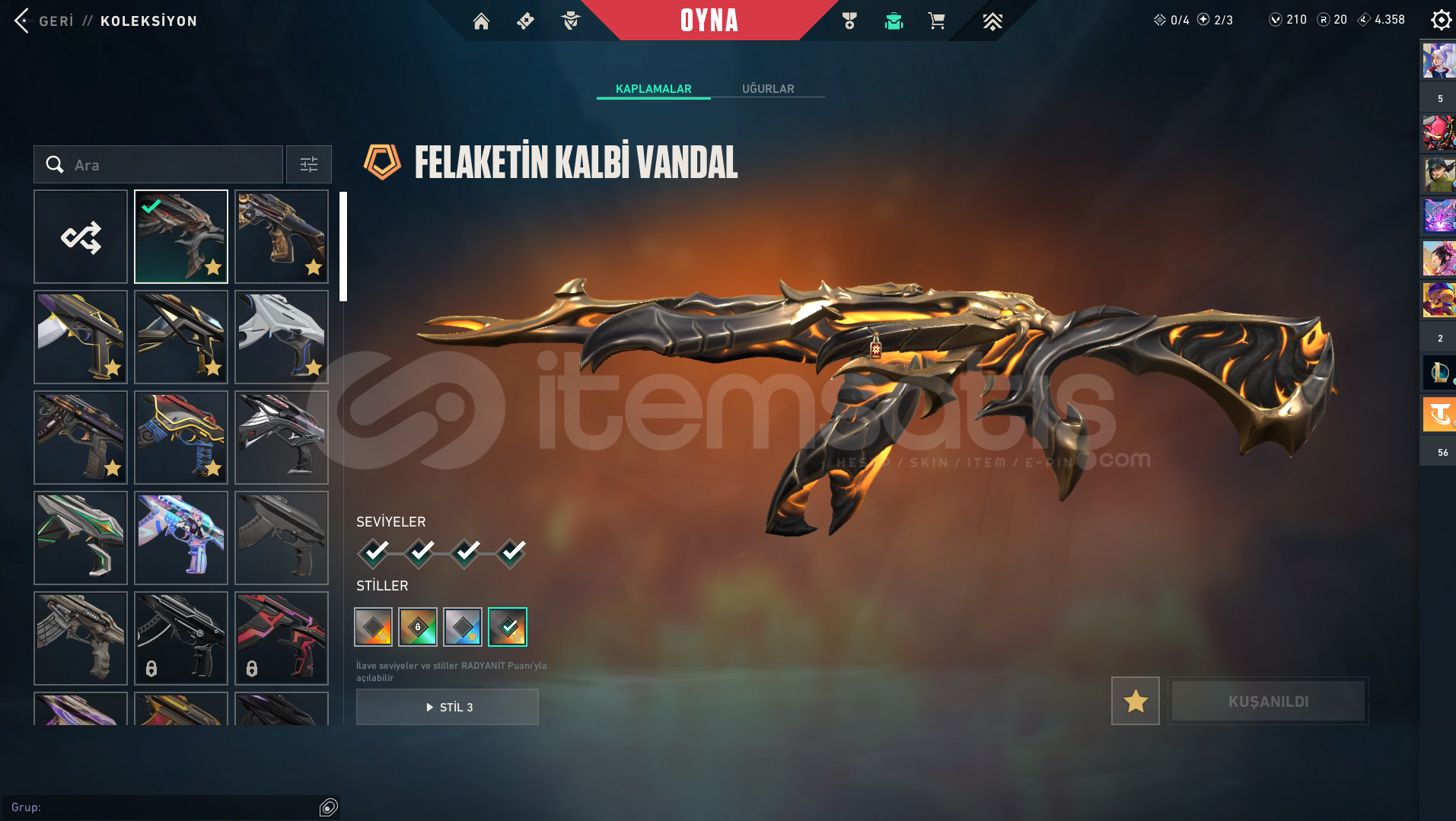 Oyunu bıraktığım için hesabımı satıyorumhesaptaki skinlerFELAKETİN KALBİ VANDALİYON VANDAL KAOS VANDALONİ VANDALAEMONDIR VANDAL ASİL VANDAL CHAMPİONS 2025 VANDALFATİH PHANTOMKAOS PHANTOMİYON KARAMBİTASİL KARAMBİT UZAYLI AVCISIRGX KARAMBİTYILDIZ PARÇALAYANCHAMPİONS 2025 KARAMBİTULUPENÇE BIÇAKGAİA GHOST FATİH GHOSTRGX ŞERİF KAOS ŞERİF AS...