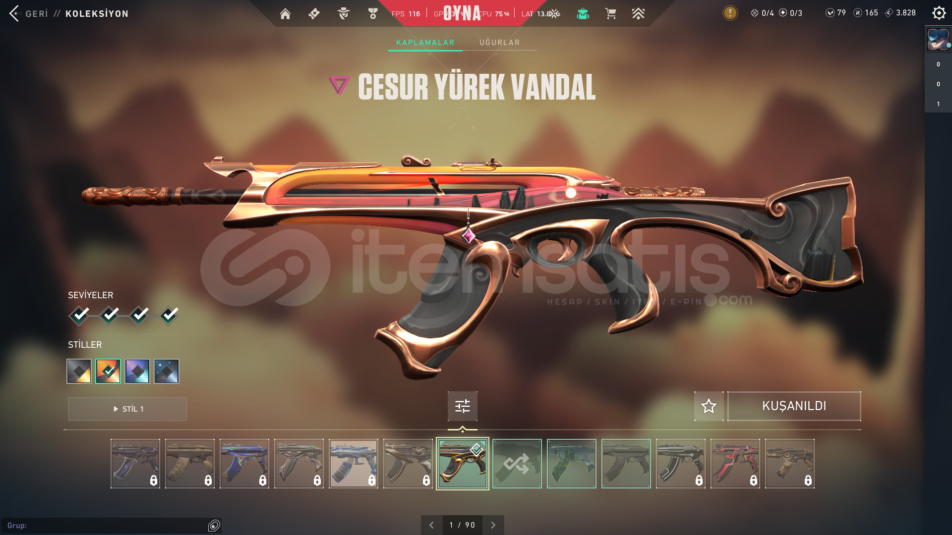 • hesaptaki skinler cesur yürek seti radiant krizi phantom çapraşık alemler vandal