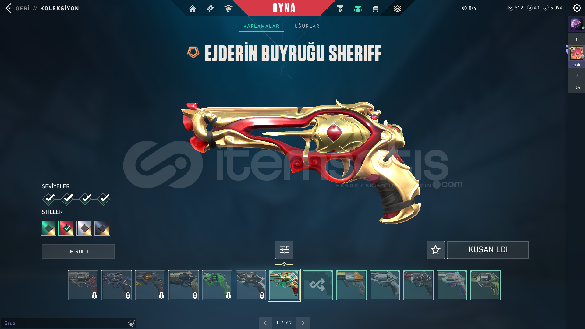 BIÇAKLAR (17): ALAZ YELPAZE , CHAMPİONS 2022 KELEBEK BIÇAK , CHAMPİONS 2023 KUNAİ , CHAMPİONS 2024 KILICI , CHAMPİONS 2025 KELEBEK BIÇAK , EJDERİN BUYRUĞU BIÇAKLARI , EXO KILICI , GAİANIN GAZABI , ONİ PENÇE , ONİ KATANA , RGX KARAMBİT , RUİ SOPASI , SOĞUK ÇEKİÇ , SPLASHX ELDİVENİ , SÜRAT CANAVARI KILICI , YILDIZPARÇALAYAN , BETA REMASTERED BIÇAK