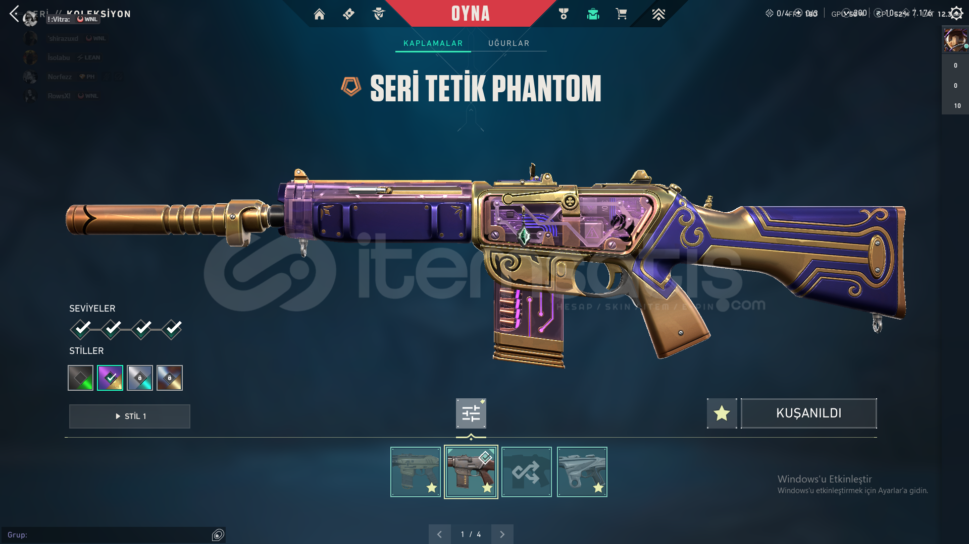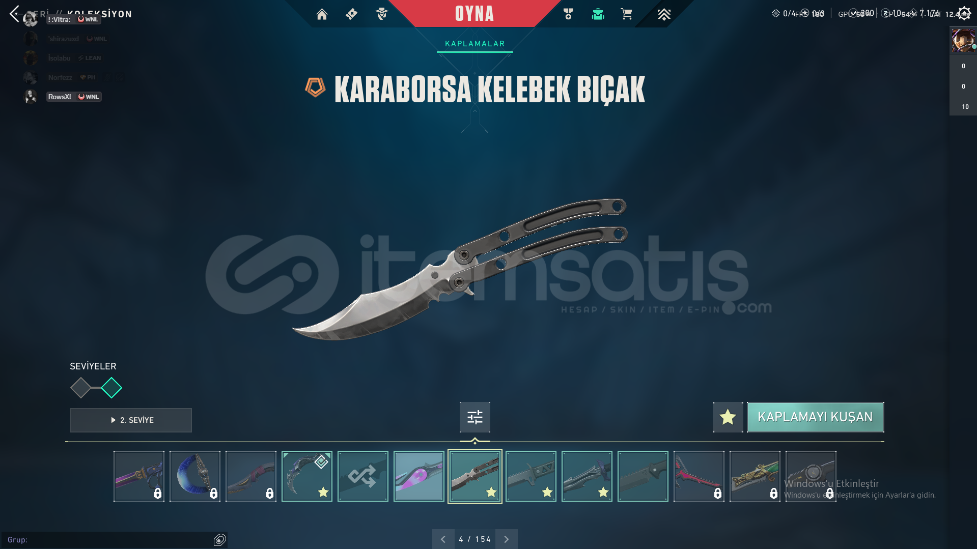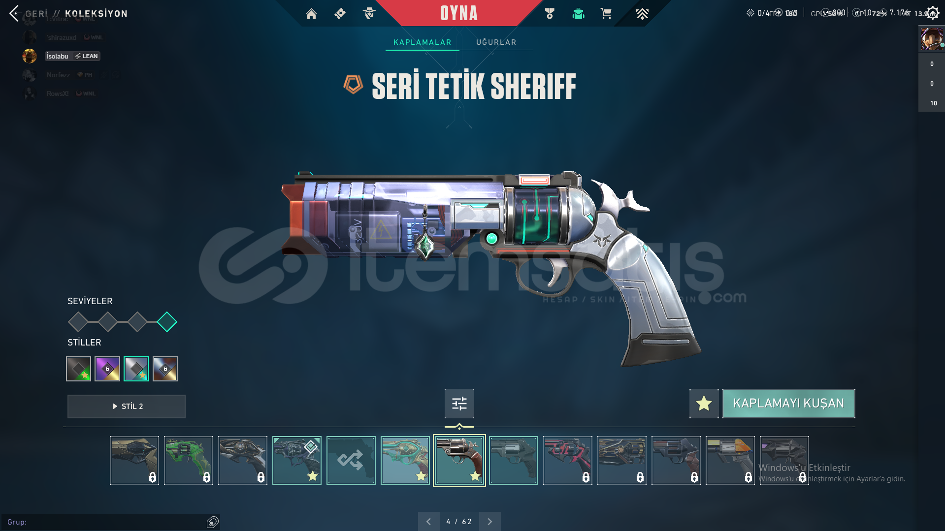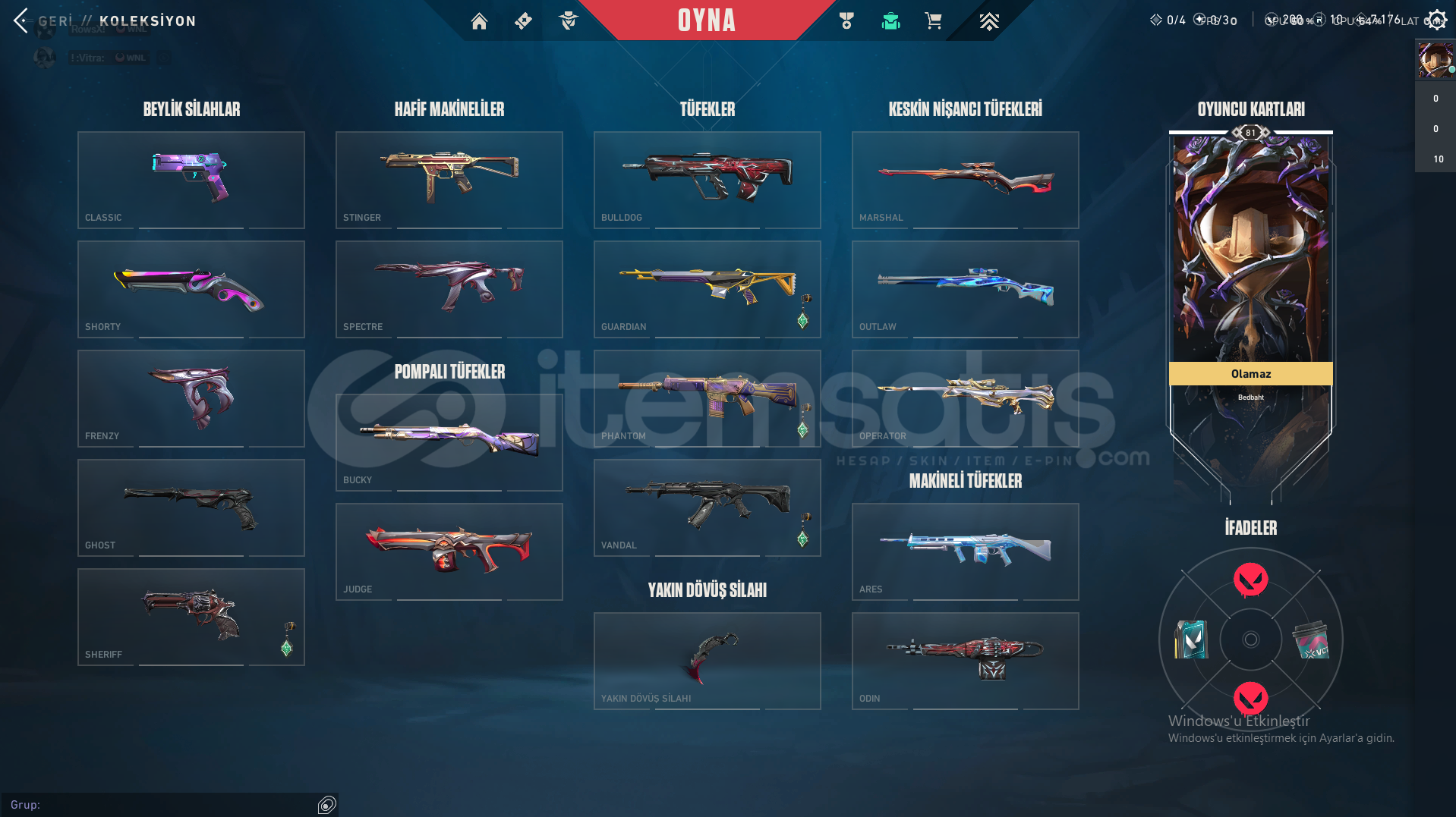 Specturum ClasicYağmacı GhostShirpank GhostSeri TetikYagmacı SheriffEjderin Buyruğu SheriffAsil GuardianSeri Tetik Phantomİyon PhantomÖzel Harekat PhantomYağmacı VandalEjderin Buyruğu VandalFelaketin Kalbi VandalShirpunk VandalRGX VandalIşık Muhafızı VandalOni VandalDelipop VandalYağmacı KarambitKara Borsa KelebekUzaylı Avcısı BıçakYağmacı BıçakEjderin Buyruğu Operat&o...