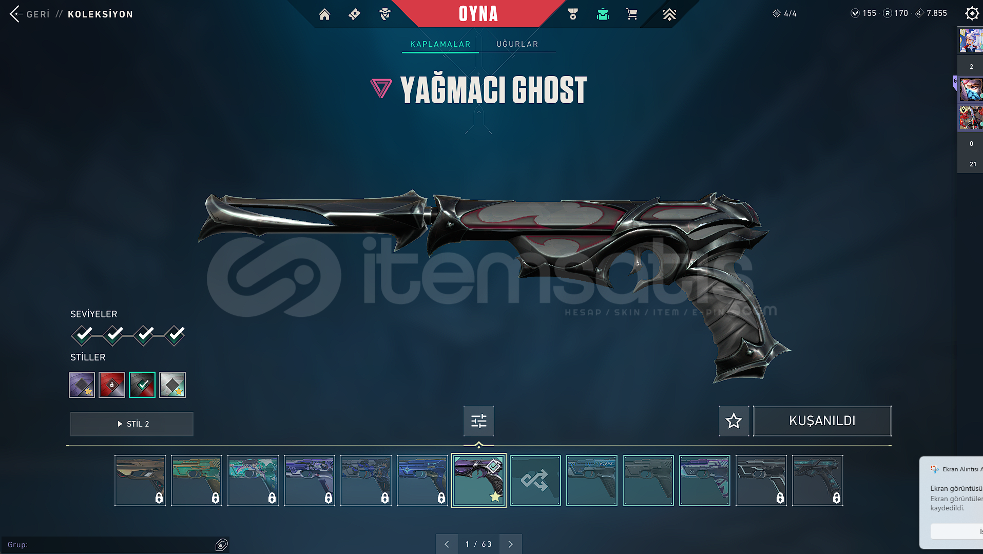 KAOS, GAİA, AEMONDİR, CHAMPİONS 2023, CHAMPİONS 2025, DOLMİRİN İNTİKAMI, EVORİ VE ONİ VANDALASİL VE SERİ TETİK PHANTOMASİL CLASİCYAĞMACI GHOSTSERİ TETİK SHERİFF VE IŞIK MUHAFIZI SHERİFFCESUR YÜREK OPERATÖRUZAYLI AVCISI, KARABORSA KELEBEK, YAĞMACI KARAMBİT VE CHAMPİONS 2025 BIÇAKVE BATTLEPASS SKİNLERİ..RANK SİLVER 2 MAİL DEVREDİLİR ...