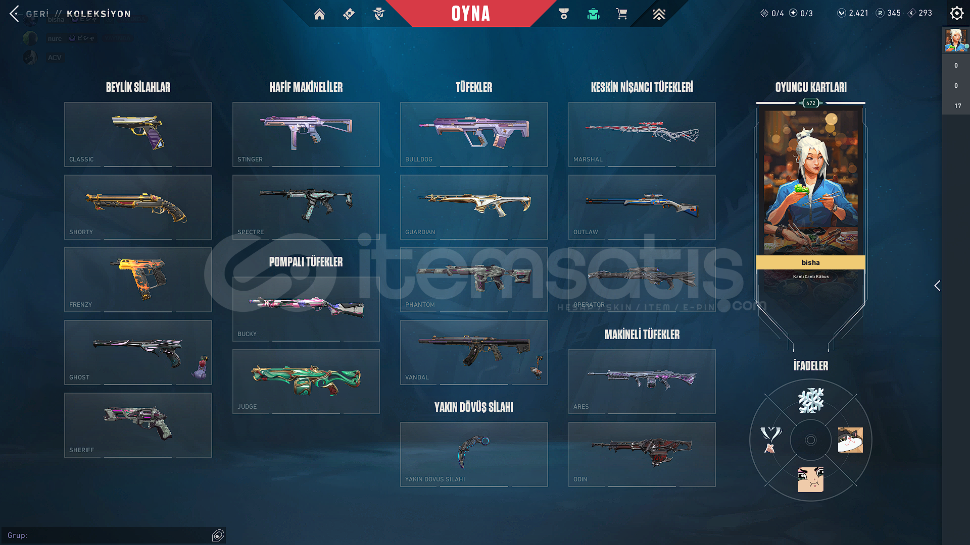 Valorant maç geçmişine tracker üzerinden bakabilirsiniz bisha#fuyu şu an unranked peaki immo kpss sınavına hazırlandığım için oyun oynamayı bıraktım hesabımı satmak istiyorum o yüzden ilk maili ile devredeceğim. Hesabımdaki skinleri aşağıda görebilirsiniz: