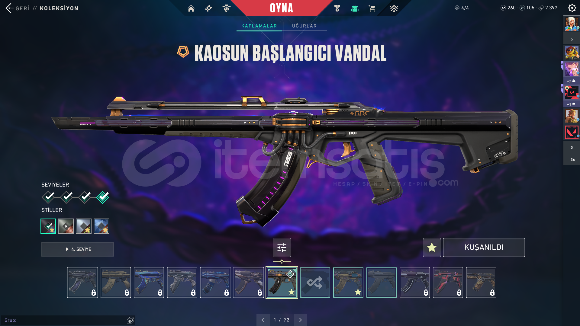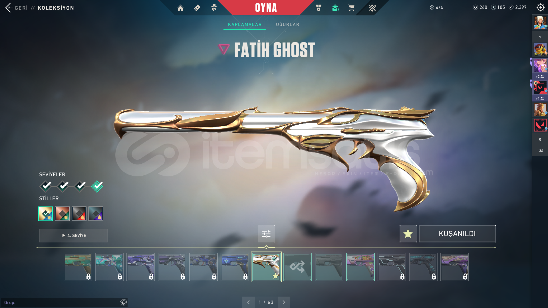 Merhabalar hesap TR sunucusundadır-Mail değişimi yapılcaktır bilmeyenlere yardımcı olurum-hesabın içindeki skinler bunlardır:-Kaos Vandal-Arcane Vandal-Fatih Ghost-Rgx Phantom-1 tane fullenmiş battlepassAlana şimiden hayırlı olsun iyi günler