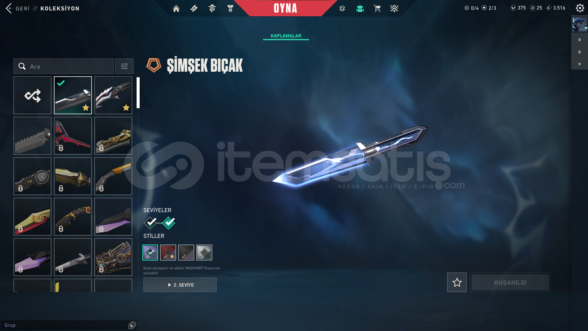 VE ŞİMŞEK SETİNİN 4300 VP DEĞERİNDEKİ BIÇAĞI BULUNMAKTADIR