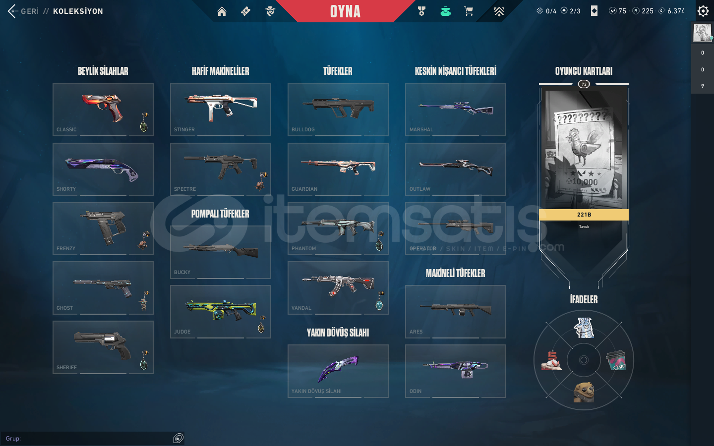 hsap içinde 1 adet sihirpunk vandal 1adet yağmacı phantom 2 adet battlepass vardır hesap geçmiş sezonlarda max plat 1 görmüştür aktif rank gold 1