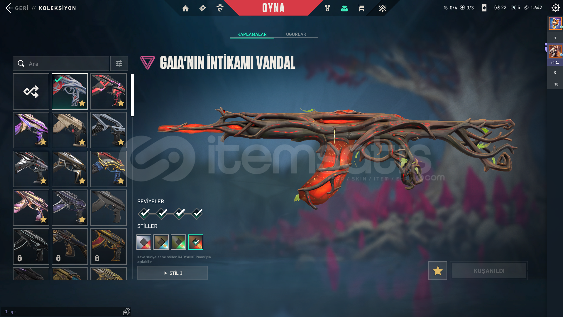 VANDAL;-GAİA VANDAL-ISIK MUHAFIZI VANDAL-SIRCICEGI VANDAL-YAGMACI VANDAL-CYRAX VANDAL-ONI VANDALBATTLE PASS VB.PHANTOM;-IYON PHANTOM-KAOS PHANTOM-RGZ 11Z PHANTOMBATTLE PASS VB.OPERATOR;-KOKEN OPERATORBATTLE PASS VB.GHOST;-CESUR YUREK GHOSTBATTLE PASS VB.SHERIFF;-KAOS SHERIFFBATTLE PASS VB.BICAKLAR;-SİMSEK BICAK-VALORANT GO BICAK 3 CILTBATTLE PASS VB.GUMUS 2 118 SVBUTUN AJANLAR ACIK