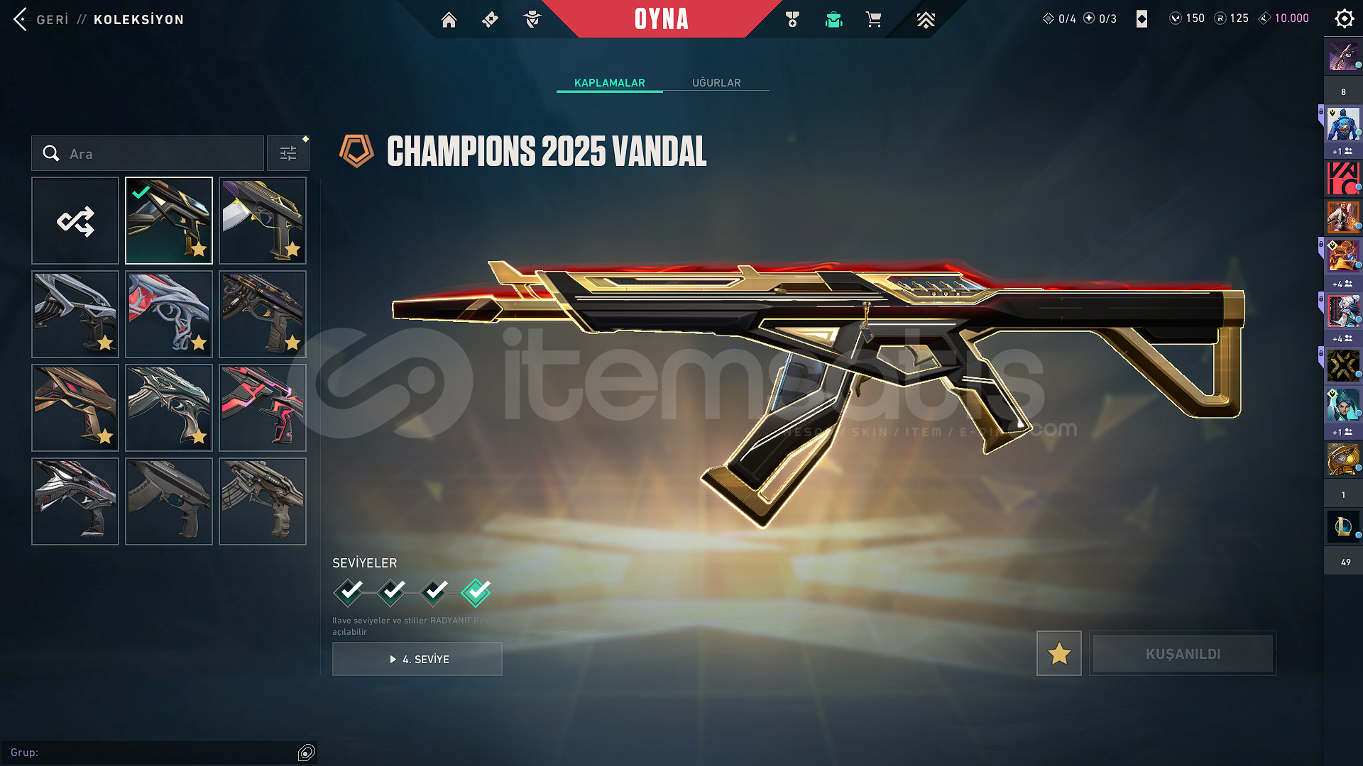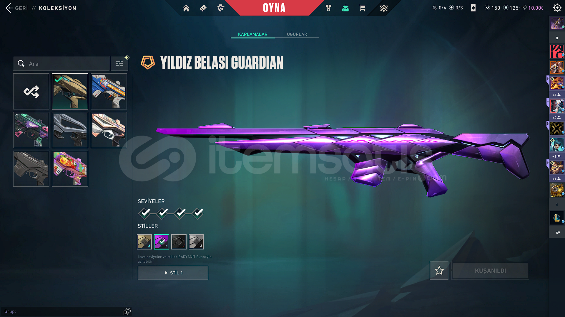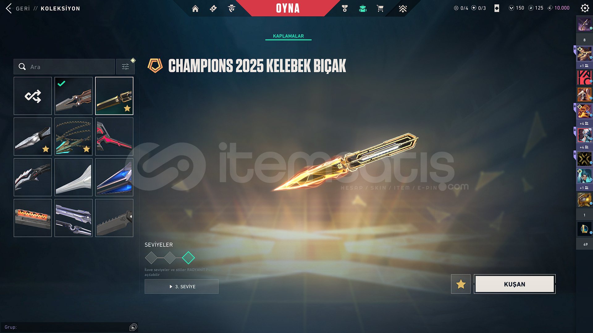 ⭐OYUNU BIRAKTIĞIM İÇİN HESABI SATIYORUM⭐vandal 11 skin⭐phantom 8 skin⭐operator 4 skin⭐outlaw 3 skin⭐ sherıff 7 skin⭐ghost 6 skin⭐ bıçak 10 skinskinler çok güzel set olanı da var