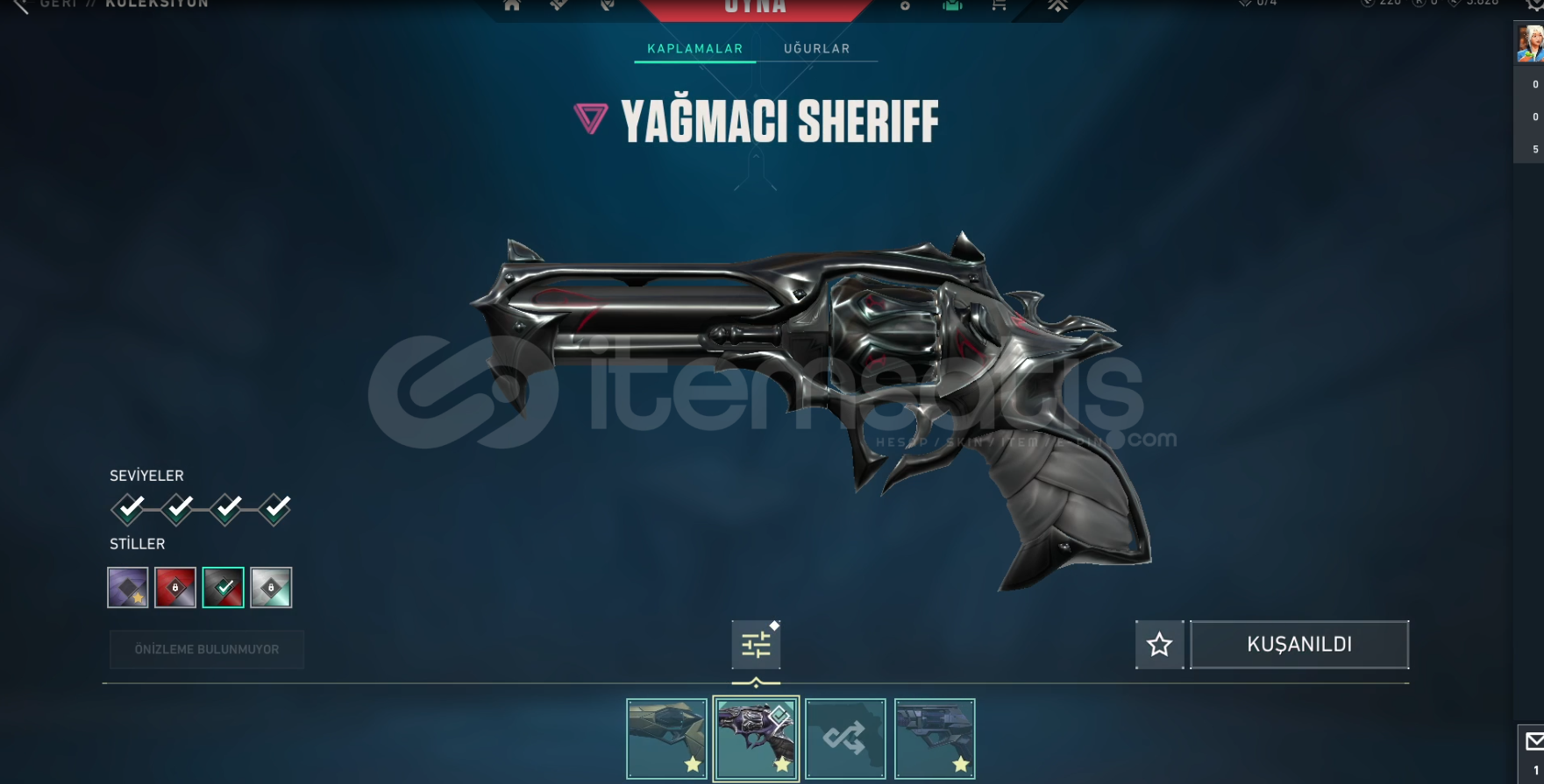 hesabın herşeyi bana ait kendi hesabım isterseniz discord üzerinden canlı olarak gösterim yapabilirim.Hesaptakiler (Sadece yükseltilebilir olanlar)----------------------------------------------------------------------------------------------------------------------------------------------------Vandal: asil - yitik - soğuk çelik - delipop - exo - felaketin kalbi - yıldız belasıPhantom: fatih - yıldız belası - yağmac...