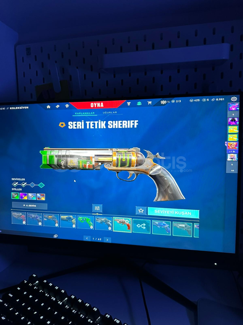 4 tane clasic skin 1 evrim diğerleri savaş bileti 3 short deseni saval bileti1 tane frenzy deseni savaş bileti 2 ghost faz koruyucu ve afet ghost 2 tane şerif seri tetik ve savaş bileti1 tane stınger savaş bileti2 spectra savaş bileti 1 buck savş bileti4 tane judge evrim 3 tane savaş bileti3 tane buldog faz koruyucu ve 2 savaş bileti3 tane guardiom savaş bileti3 phantom savaş bileti 13 tane vandal gai,anamo...