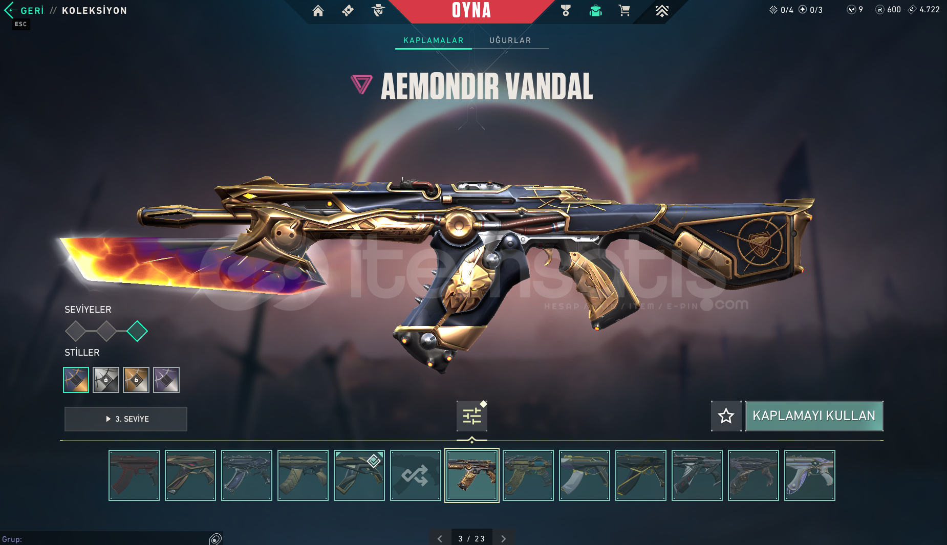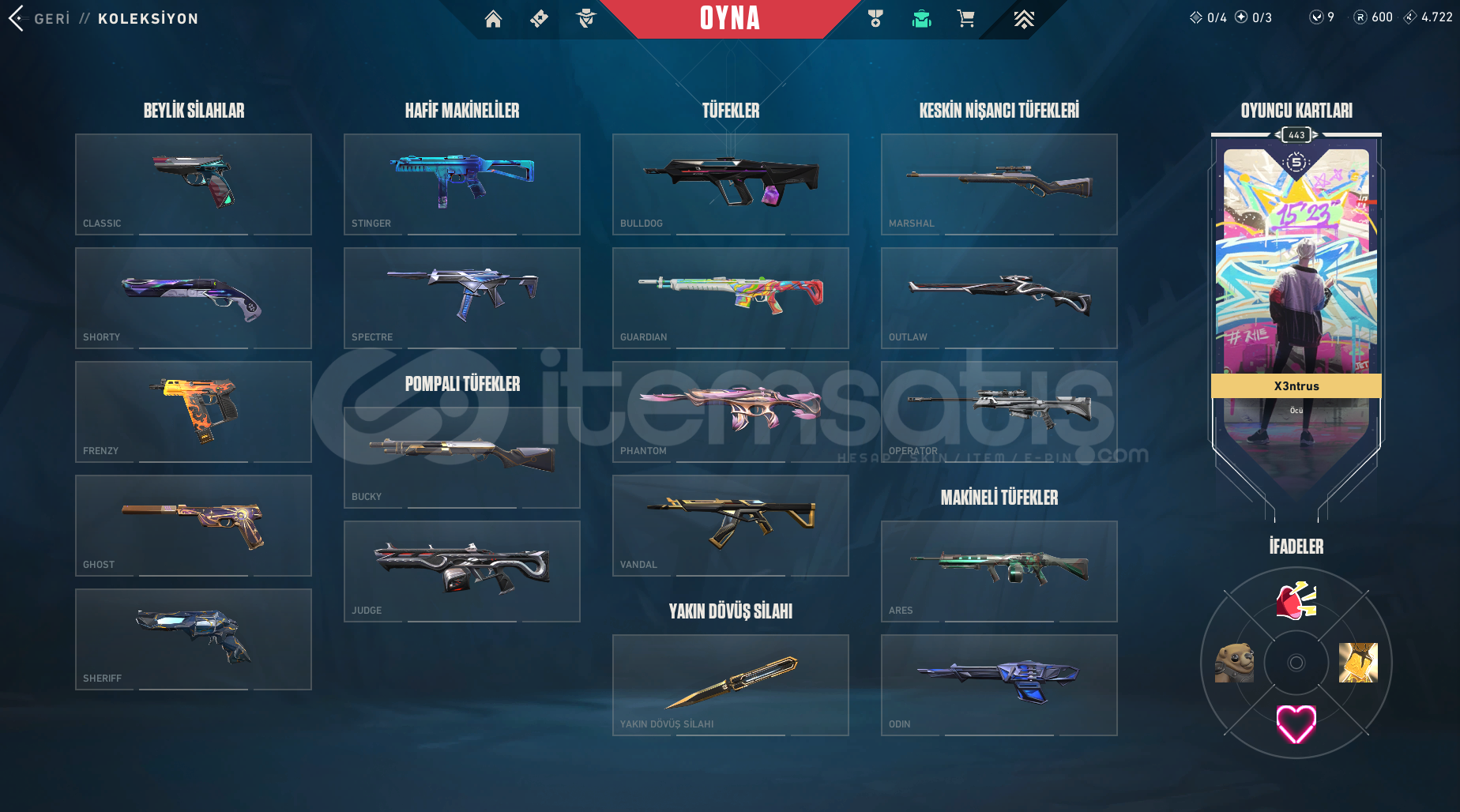 Diğer silahlar: Asil Classic Anomali Sheriff Yağmacı Operatör ve kalan tüm silahlarda battlepass skinleri karakter skinleri mecvut