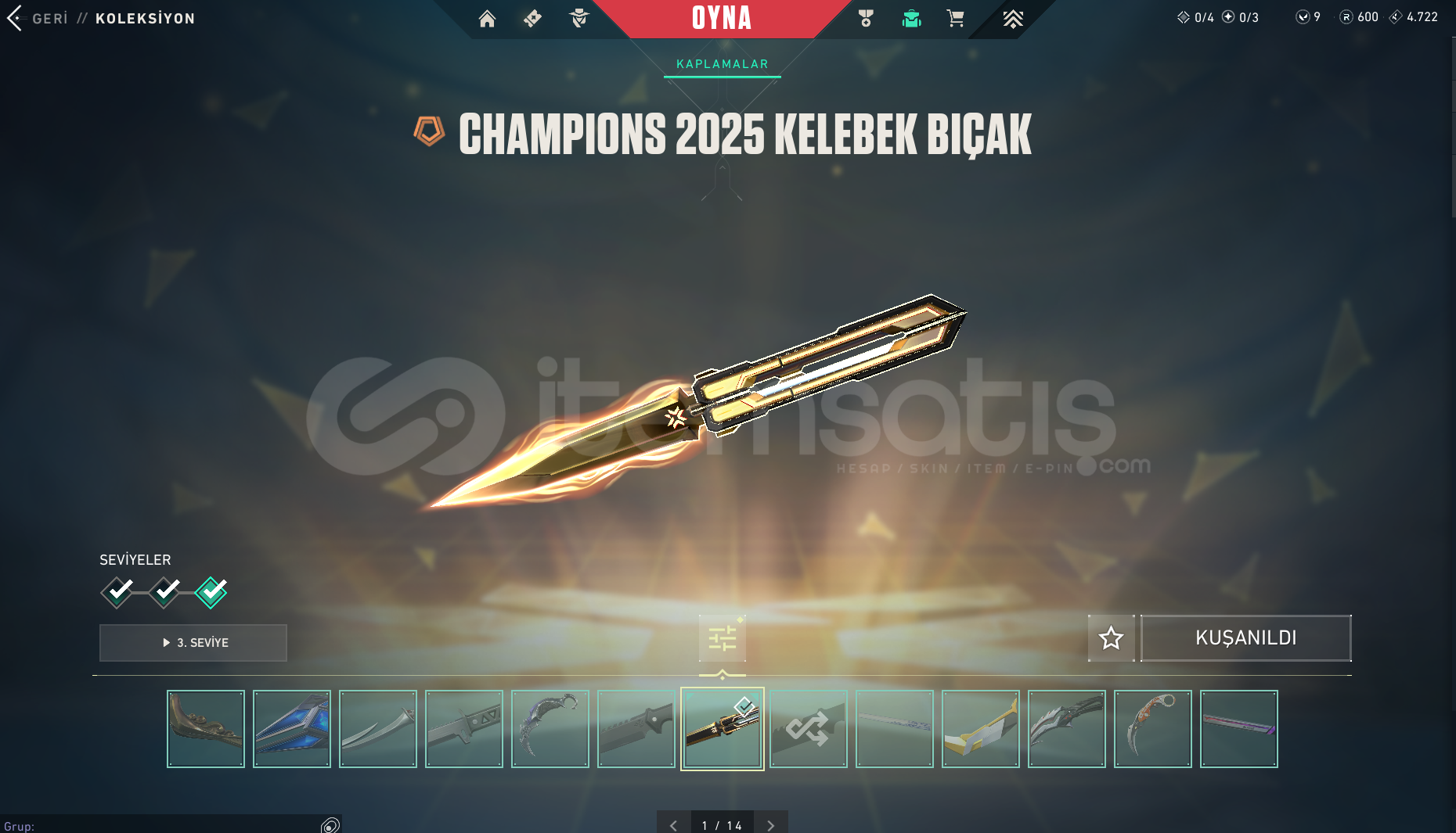 Bıçaklar: Champions 25 Kelebek Asil Karambit Yağmacı Karambit Rgx Karambit Semavi Yelpaze Uzaylı Avcısı artı olarak birkaç battlepass skinleri