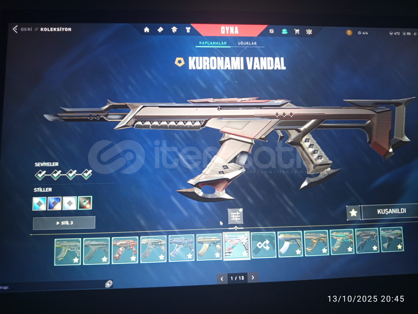 Gaia VandalAsil VandalTGC VandalSürat canavarı VandalYağmacı VandalYıldız belası VandalCesur yürek vandalFelaketin kalbi VandalEjderin buyruğu VandalKuronami VandalHelezon phantomAsıl phantomFatih phantom Gaia ghostYağmacı ghostZamanın otesi seriffYitik opVct karambit Radyant krizi sopa