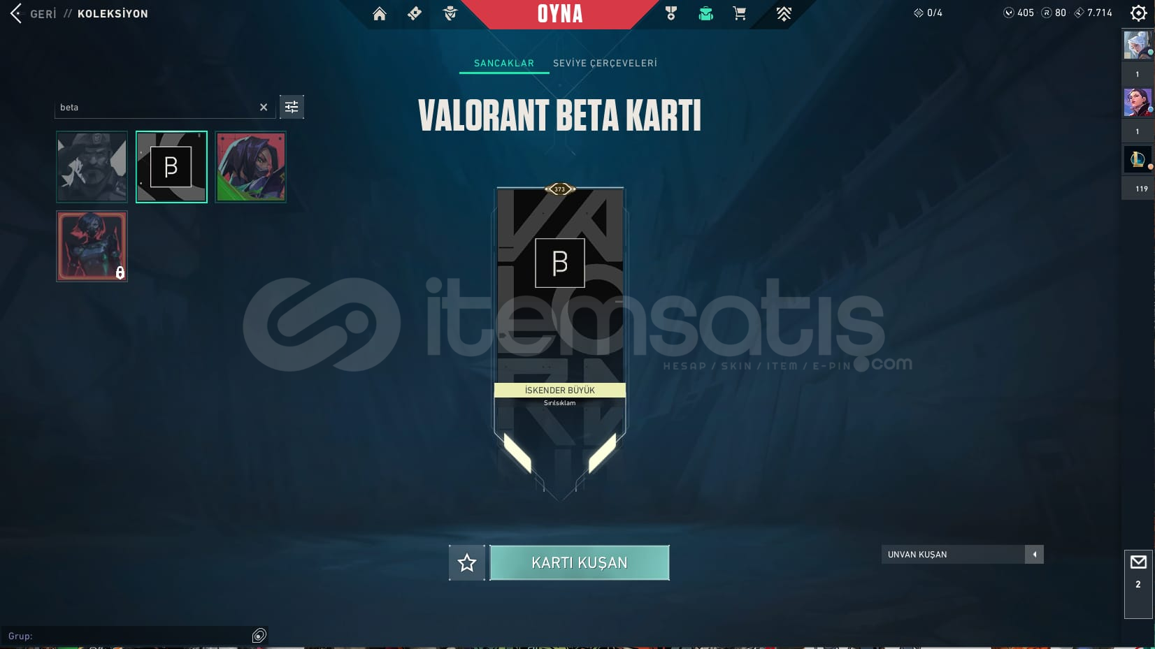 Beta zamanı twitchten düşürdüğümde oynadığım ilk hesaptır. Daha önce satılmadı, mail değişmedi ilk maili.Hesapta 5-6 tane de savaş bileti var içlerinde altın afet hançer de var. Champions 2024 SetiChampions 2025 SetiFaz Koruyucu SetiYağmacı Vandal      Evori VandalAsil 2.0 PhantomFatih PhantomSır Çiçeği PhantomZifiri PhantomM...