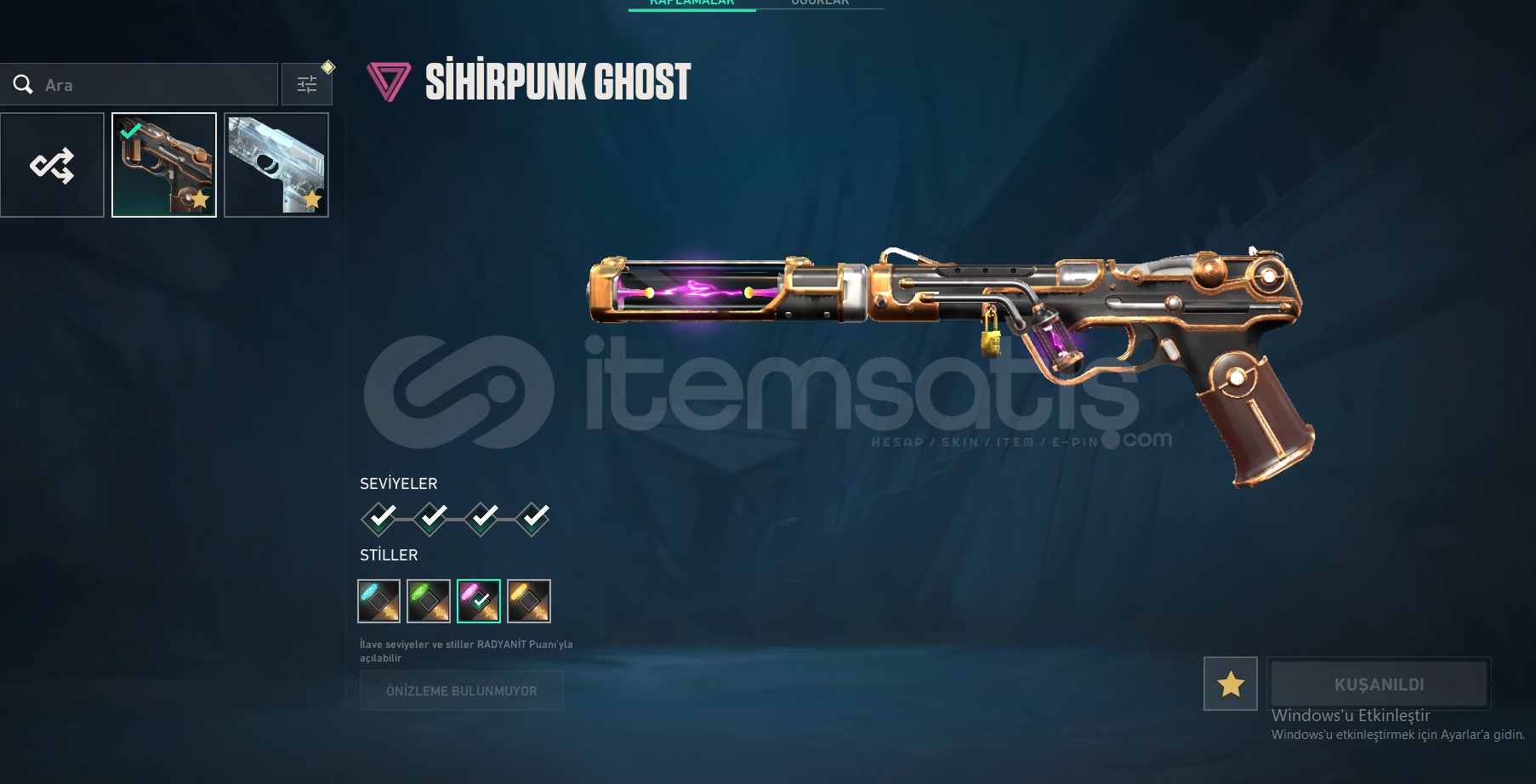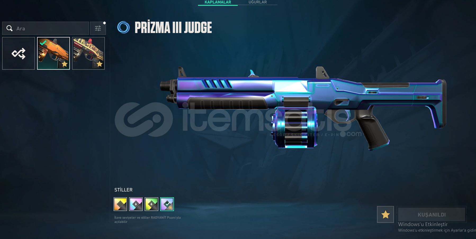 hesapta yitik Vandal ,köken Vandal, blastx spectre ,sihirpunk ghost ve kış harikası ghost, prizma 3 judge ve 1 adet battlepass vardır ayrıca bıçak olarak RGX 11Z PRO bıçak mevcuttur