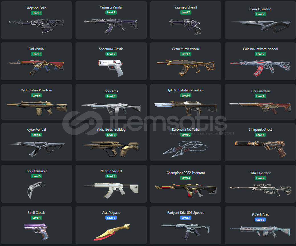 SEVİLEN SKİNLER DOLUDUR.TÜM PARALI DESENLER GÖRSELLERDE GÖSTERİLMİŞTİR,ONUN DIŞINDA TOPLAMDA 99 SİLAH DESENİ BULUNMAKTADIR.TÜM SİLAHLARDA EN AZ 1 ADET ANİMASYON MEVCUTTUR.+235 UĞUR BULUNMAKTADIR EKSTRA OLARAK +170 SPREY MEVCUTTUR.TAKTİK AYI MEVCUTTUR EKSTRA OLARAK.+9000 TL YATIRIM GEÇMİŞİ MEVCUTTUR.HESAP İÇERİSİNDE 2 ADET OYUNA BİR DAHA GELMEYECEK OLAN CHAMPİ...