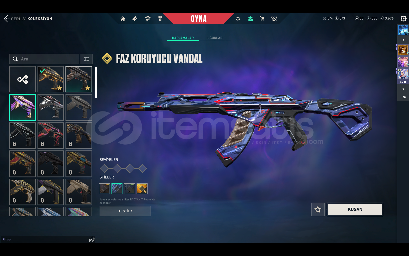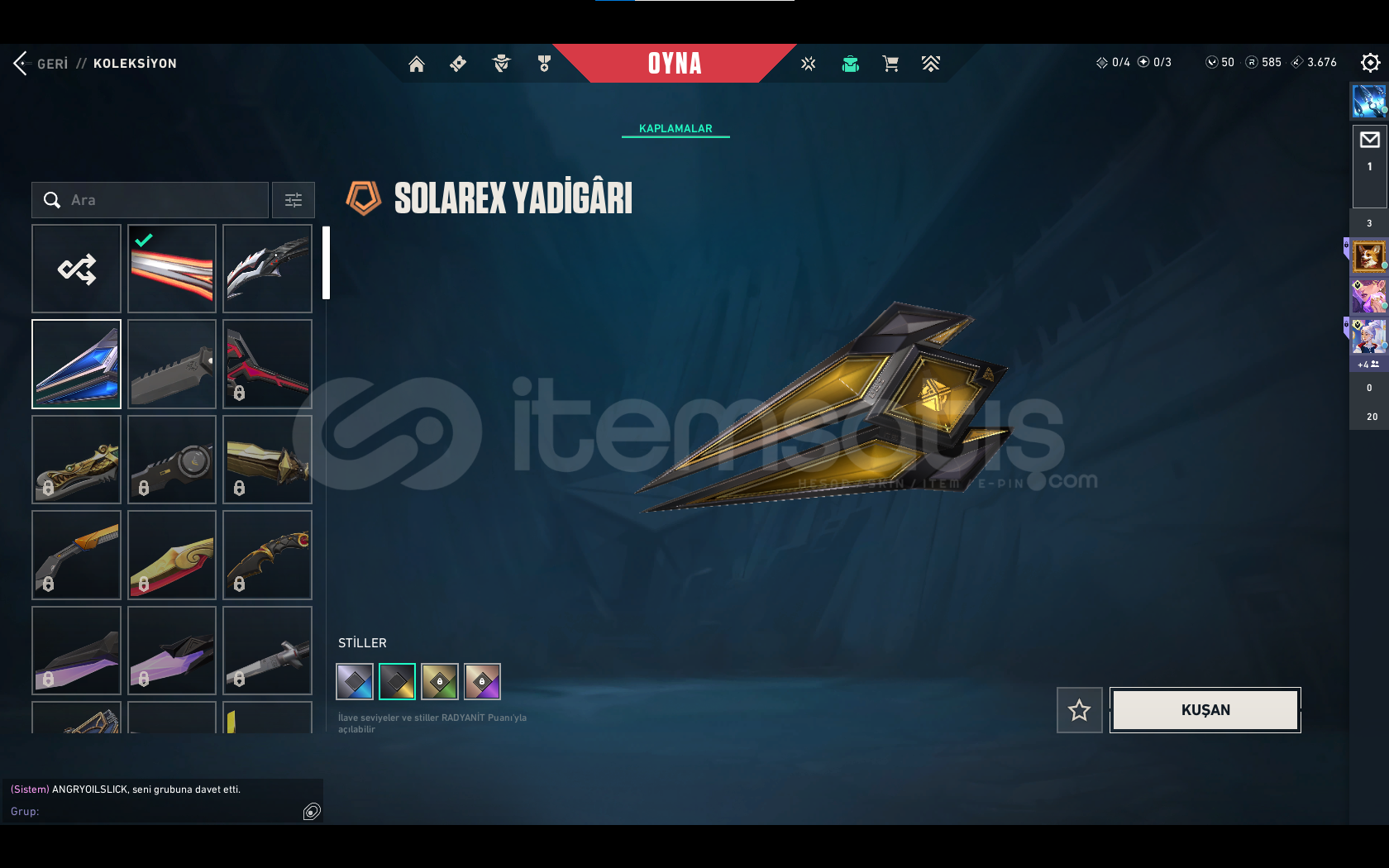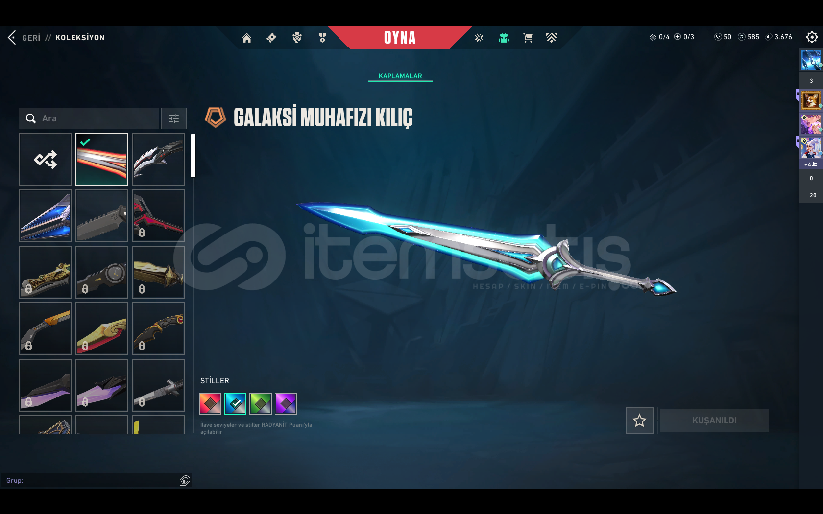 Fiyatda pazarlık yapabiliriz.Hesaptaki Skinler;-Cesur Yürek Vandal-Faz Koruyucu Vandal-Protokol 781-A Phantom-Yıkım Elçisi OdinBıçaklar;-Galaksi Muhafızı Kılıç -Ecelin Isırığı Bıçak-Solarex YadigarıAçıklama;-Ayrıca hesapta 3 tane savaş bileti açılmıştır onlardan gelen birçok skinde mevcutdur. Hesapta birçok oyuncu kartı, ü...