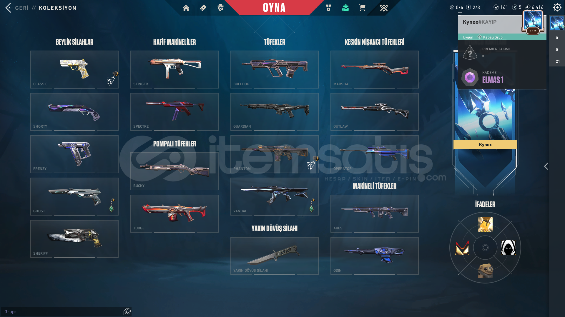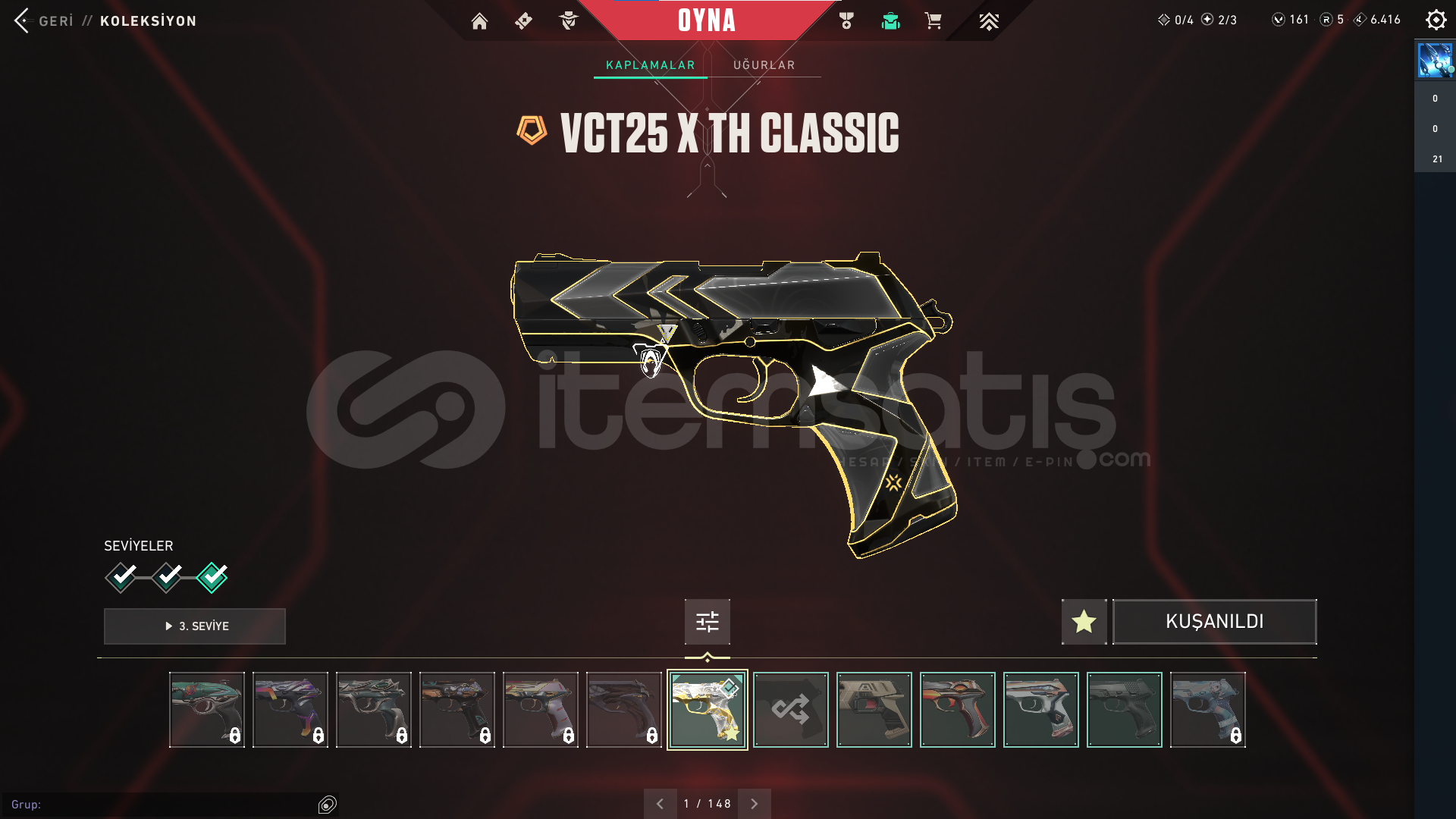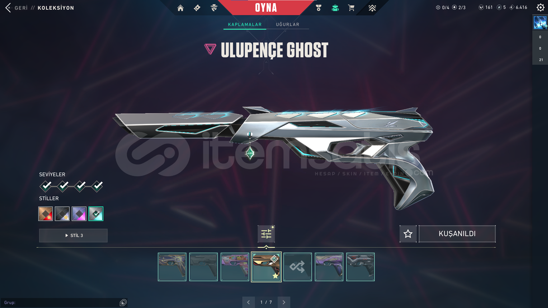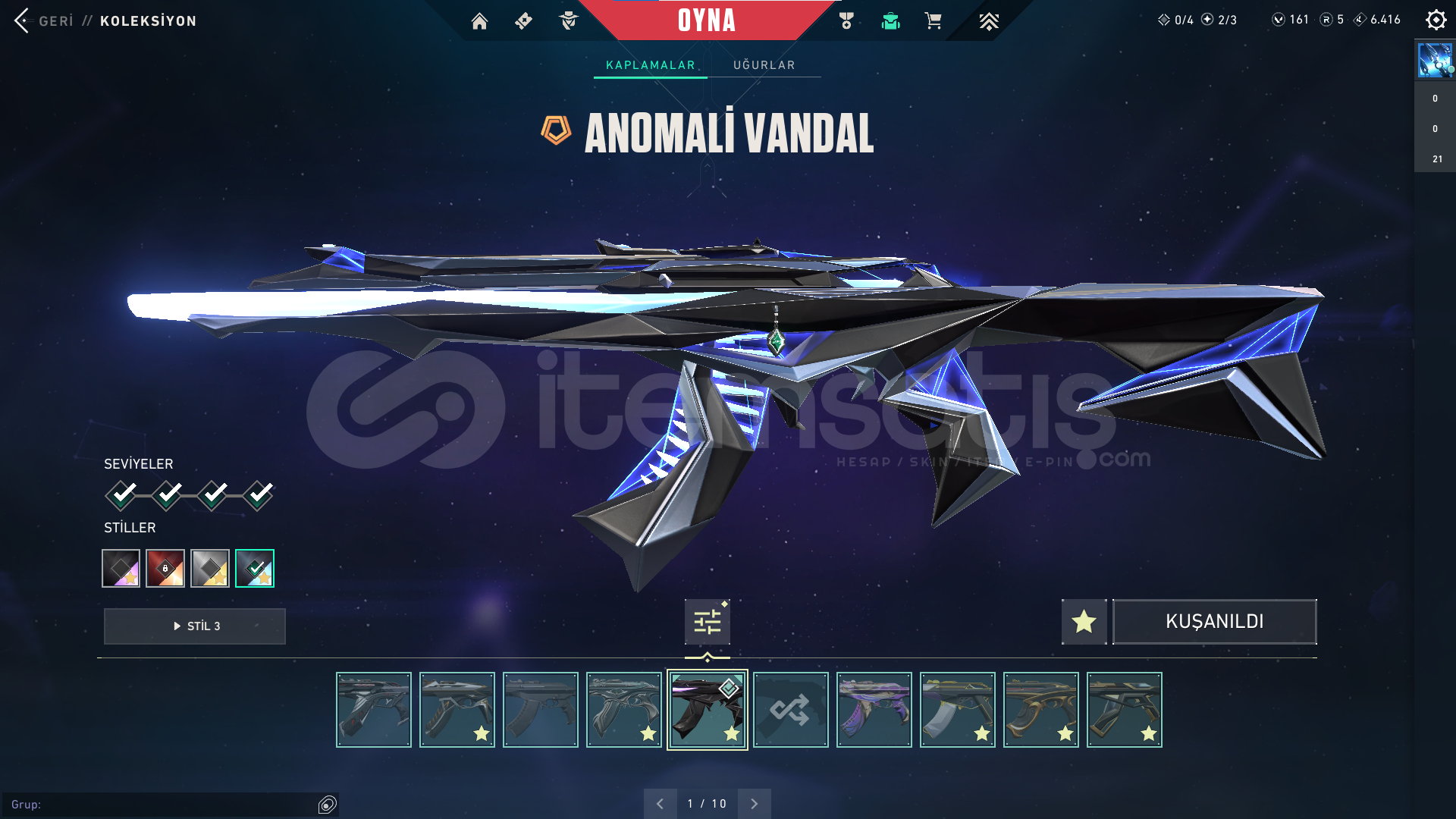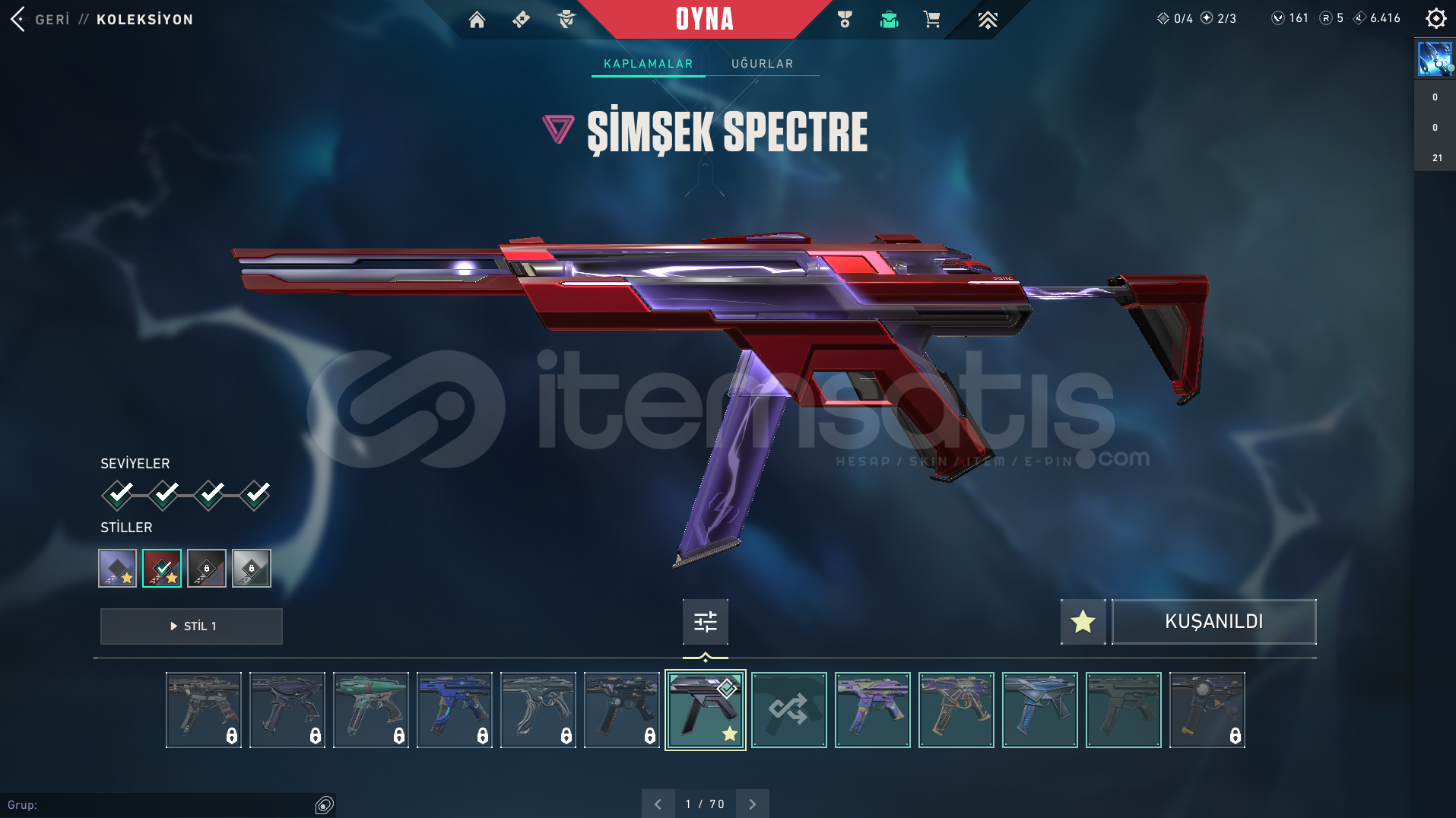 • Uyguna Kaliteli Hesap / Anomali . Asil . Cesur Yürek . Champions 2025 . Işık Muhafızları . Yitik Vandal / Zifiri . Kaos. Şimşek . Phantom / Uzaylı Avcısı Bıçak . Champ 2025 Kelebek . Şimşek Bıçak / Yağmacı Guardian / Şimşek Spectre / VCT25 Classic / Ulupençe Ghost / Aemandır Sheriff ve birçok battlepass skin mevcuttur.