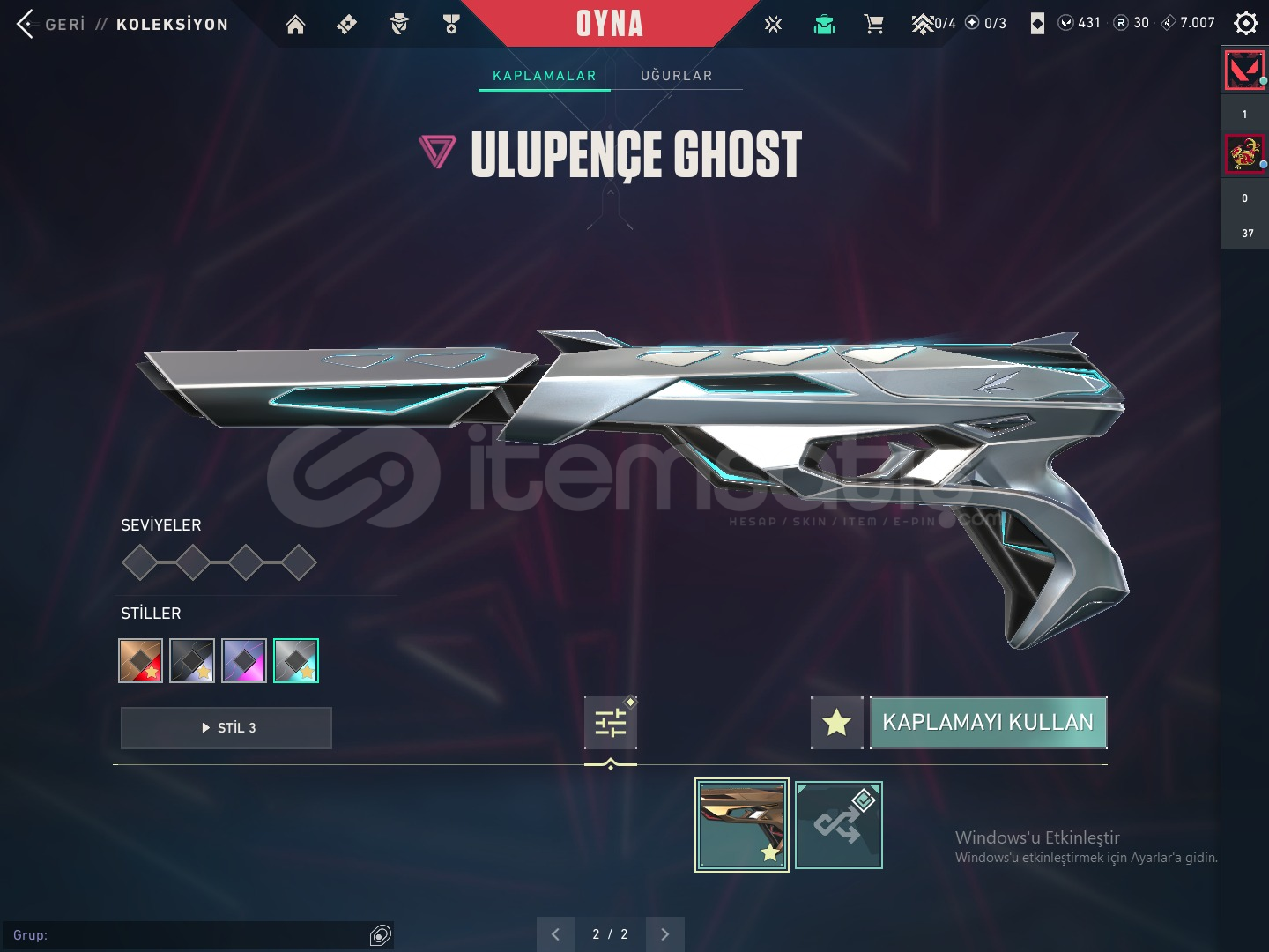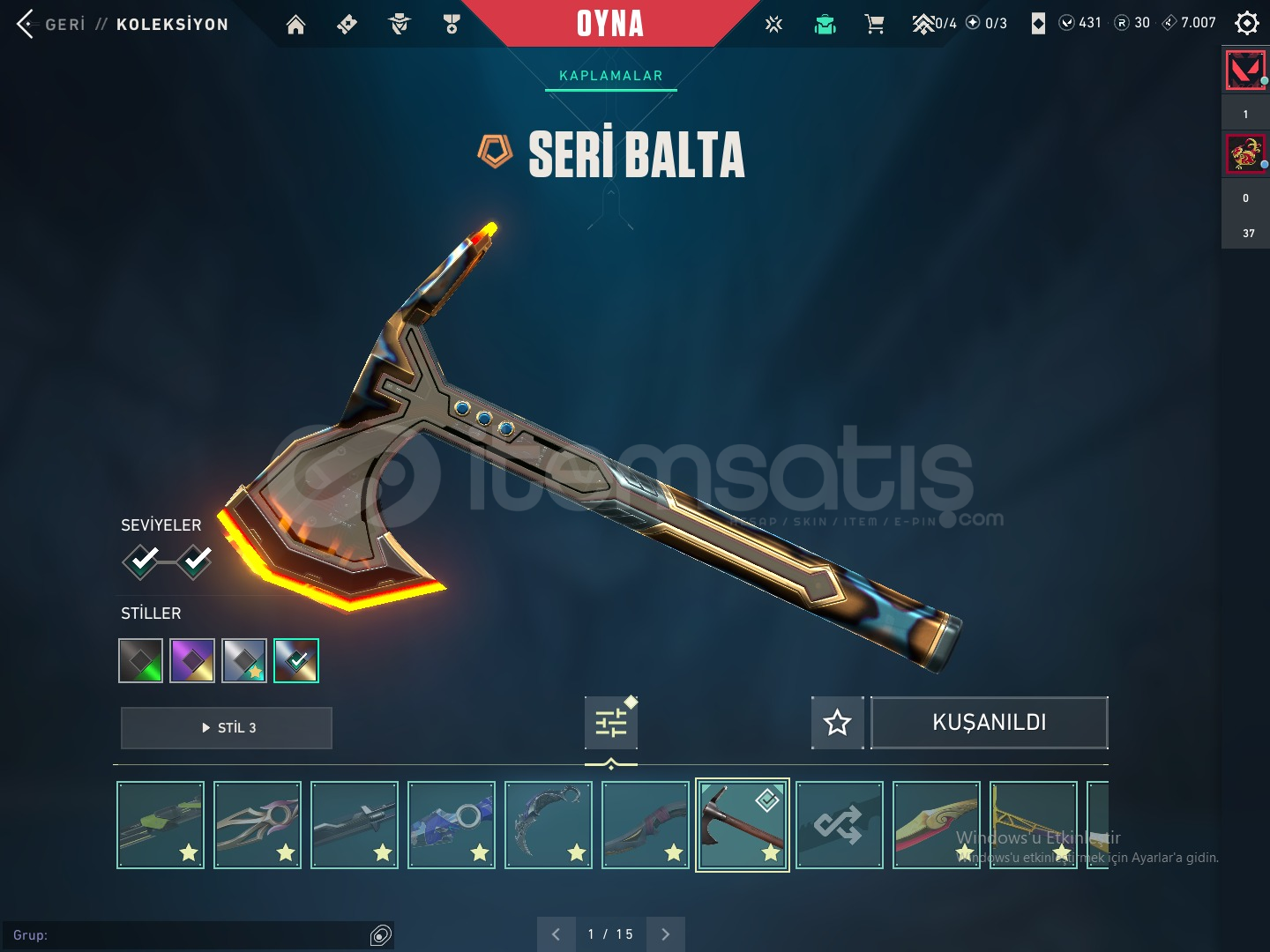 Hesap içindeki skinlerrgx classic zifiri classic ulupençe ghostanomali sheriff seri tetik sheriff zifiri bulldogasil guardian oni phantom radyant krizi phantom zifiri phantomasil vandal champ 25 ve 23 vandal ejder vandal felaketin kalbi vandal gaia vandal kaos vandal soğuk çelik vandal zamanın ötesi vandal yitik vandal aemondır vandal yağmacı vandalBıçaklar : seri balta alaz yelpaze asil balta asil karambit yağmacı karambit...