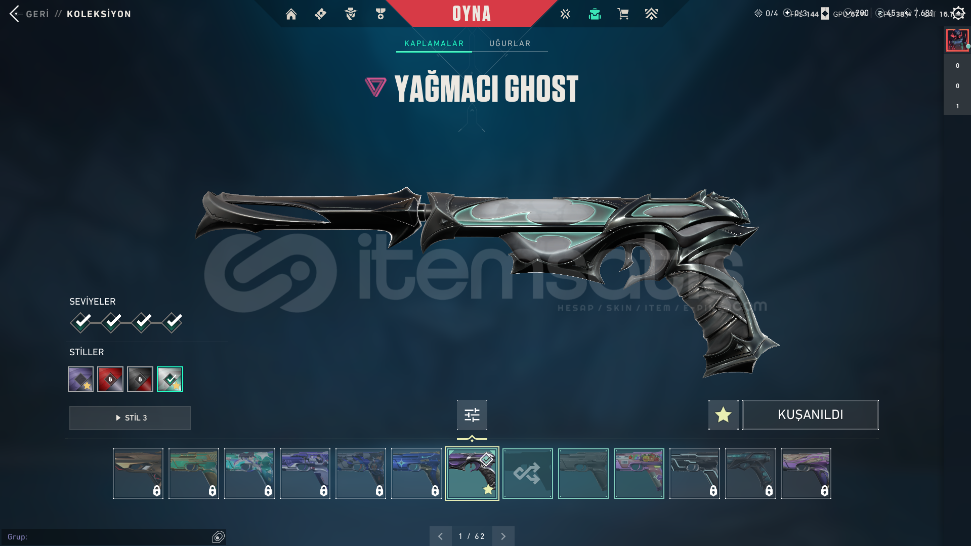 Hesabın İçindeBeta BıçakKaosun Başlangıcı VandalÖzel Hareket PhantomYağmacı SherifYağmacı GhostHesab gold3Boş muhabbet edicek yazmasın