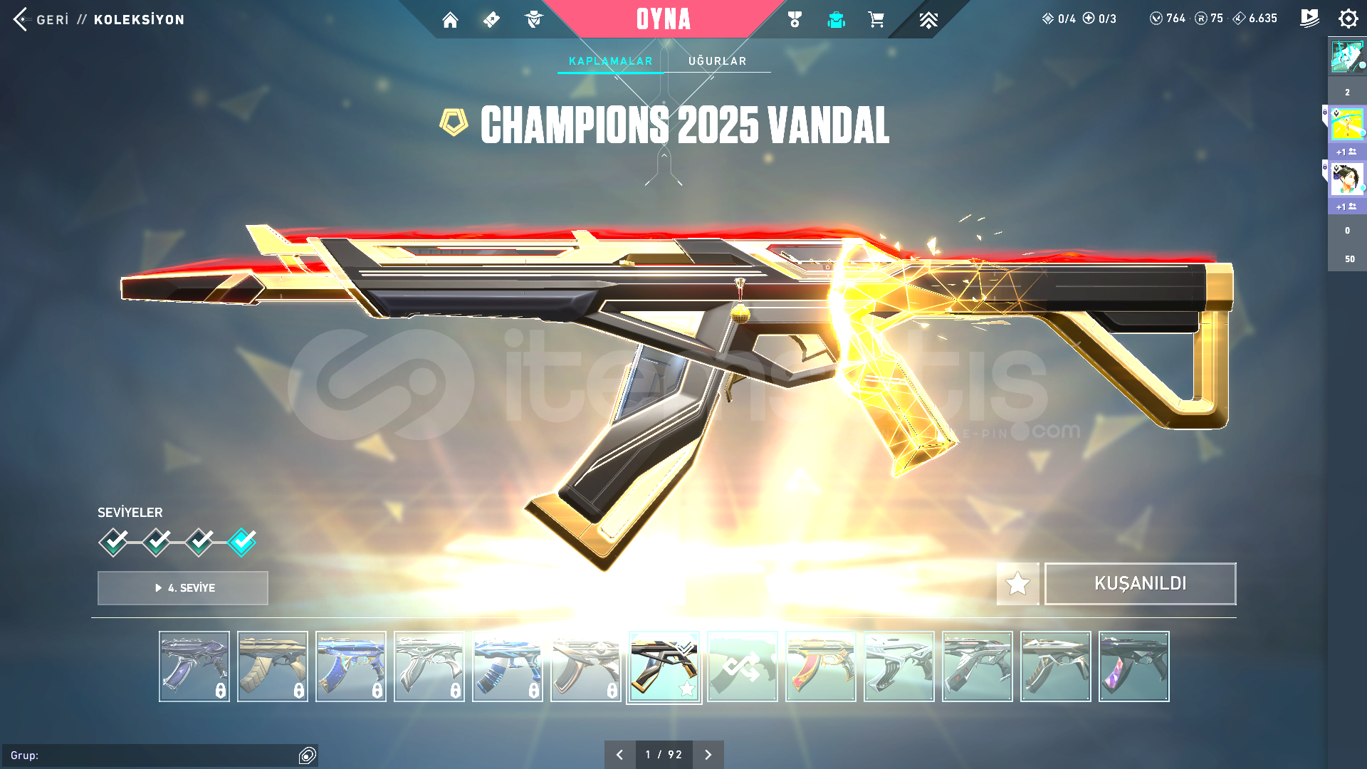 9 Tane Bıçak - Altın Afet Hançer- Cyrax Yelpaze- Seri Tetik Balta- Şimşek Bıçak- Mahvolmuş Kralın Kılıcı- K/Tak Bıçağı- Ecelin Isırığı Bıçak- Karakol Yakın Dövüş Silahı- Prizma III Balta5 Tane Vandal- Champions 2025 Vandal- Işık Muhafızları- Sihirpunk- Cyrax- KökenIşık Muhafızları OP4 FULL SERİ...