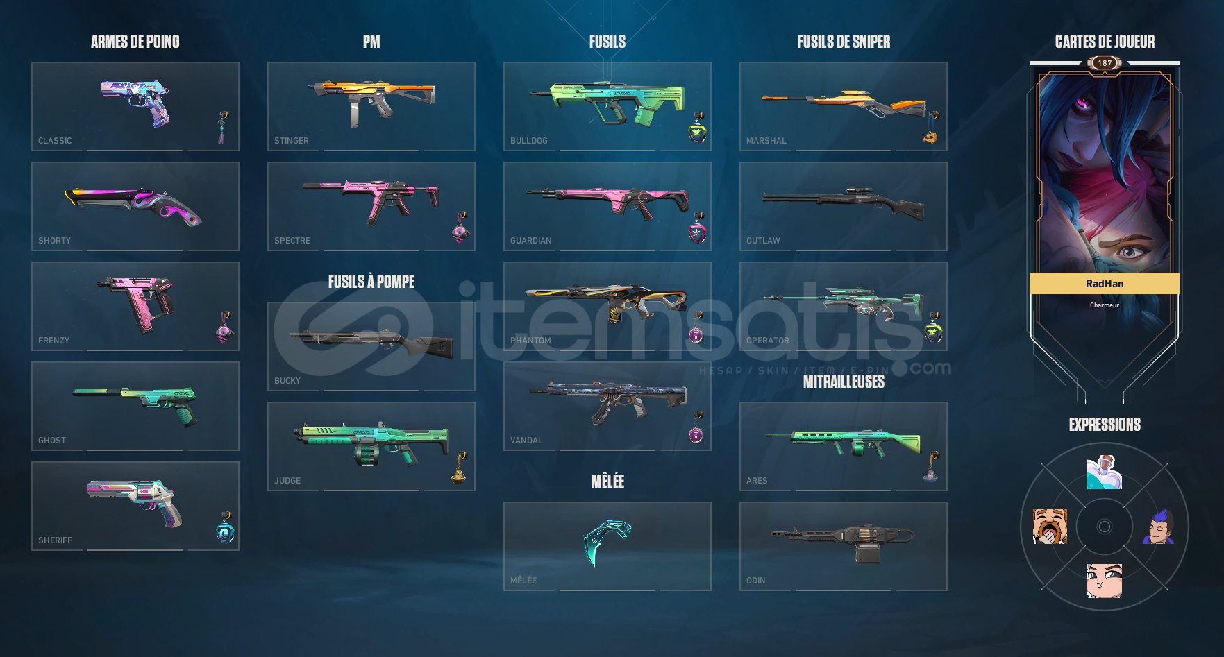 hesapta vct karambit ve champions 2024 phantom var markete tekrar gelimeyecekleri için skinleri sevenler bu hesabıda sevicektir bunların yanındada kaos vandal sihirpunk vandal ve yerçekimsel uranyum nöro ateşleyicisi operatör var en çok kullanılan silahlarda oldukça iyi skinler olan bir hesap ayrıca hesabın pick rankı dia ve dia uğurluğuda var