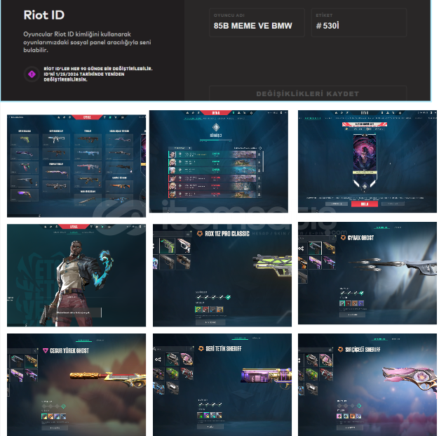 dolu ve temiz hesap215 vp vardır hesap içindehesabı aktif olarak kullanıyorum elo değişebilirresimlerde sadece önemli skinler var diğer silahlarda da bp skinleri vardır dolu hesaptırtüm ajanlar açıkgümüş 3 58 kp137 seviyeisim değiştirme 25 ocakta geliyor
