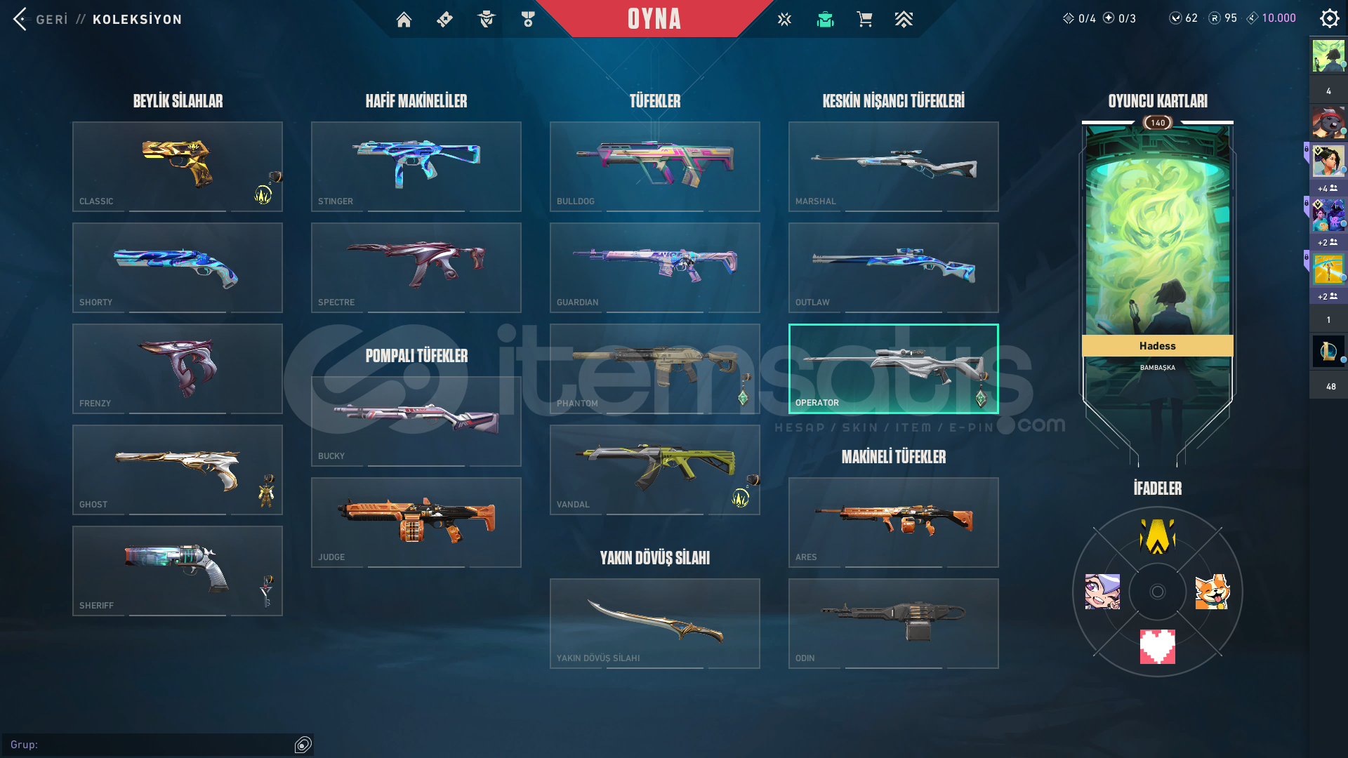 Ömürlük hesaptır uygun fiyata veriyorumhesabın içinde battlepass skinleri dahil:asil vandal-yağmacı vandal-delipop vandalözel harekat phantomebedi fatih bıçak + 2 tane battlepass bıçağıBBL classic fatih ghostseri tetik sherrif iyon operatör mevcut isim değiştirme hakkı 8 Kasım 2025 tarihinde dolacaktır Hadess#ALOOOHesabın peak rankı yücelik 3 tür uğurluk bulunur...